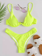 Women - Neon Yellow Textured Underwire Bikini Swimsuit