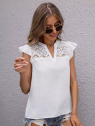 Notch Neck Lace Yoke Ruffle Armhole Top