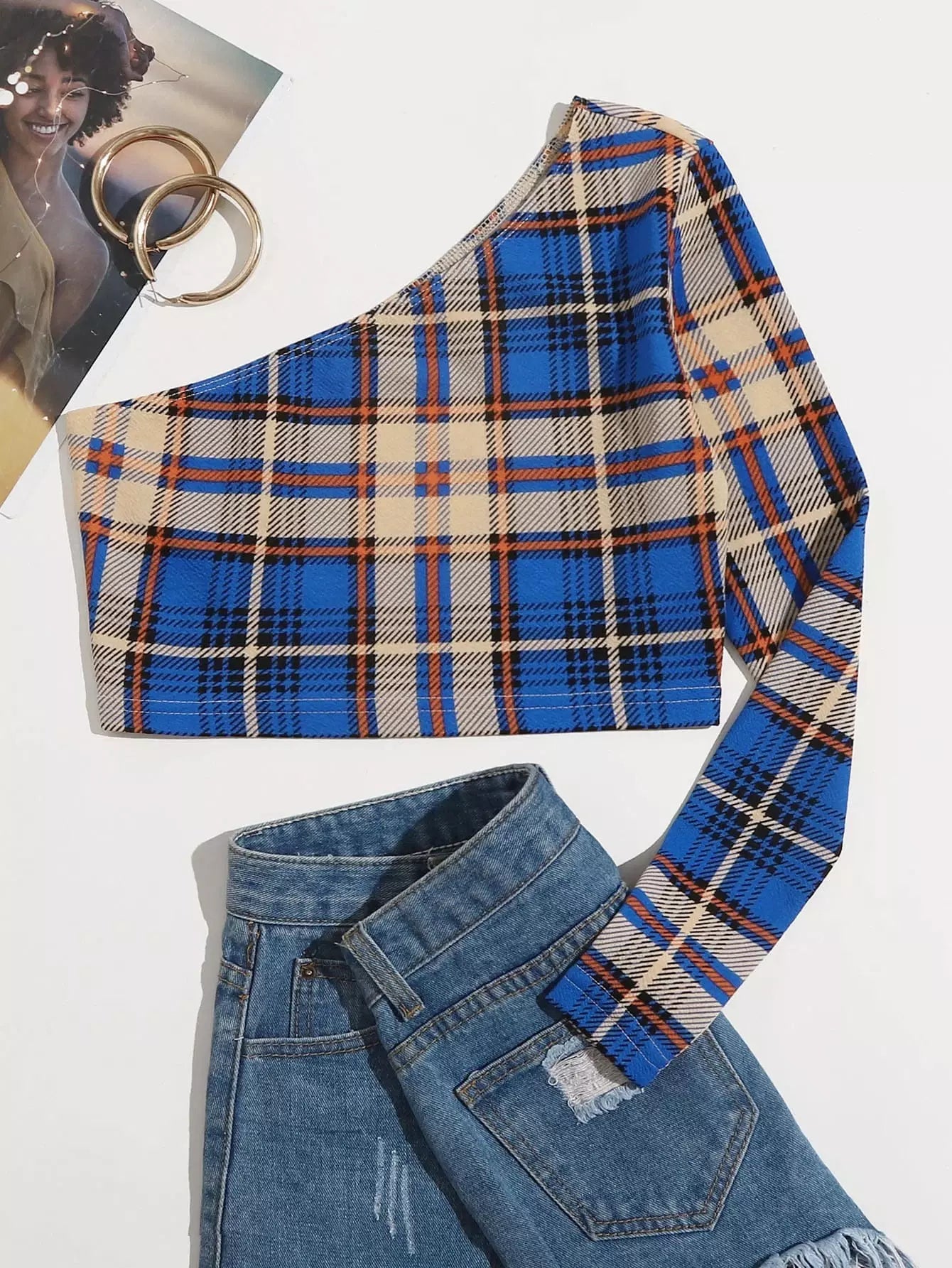 One Shoulder Tartan Tee