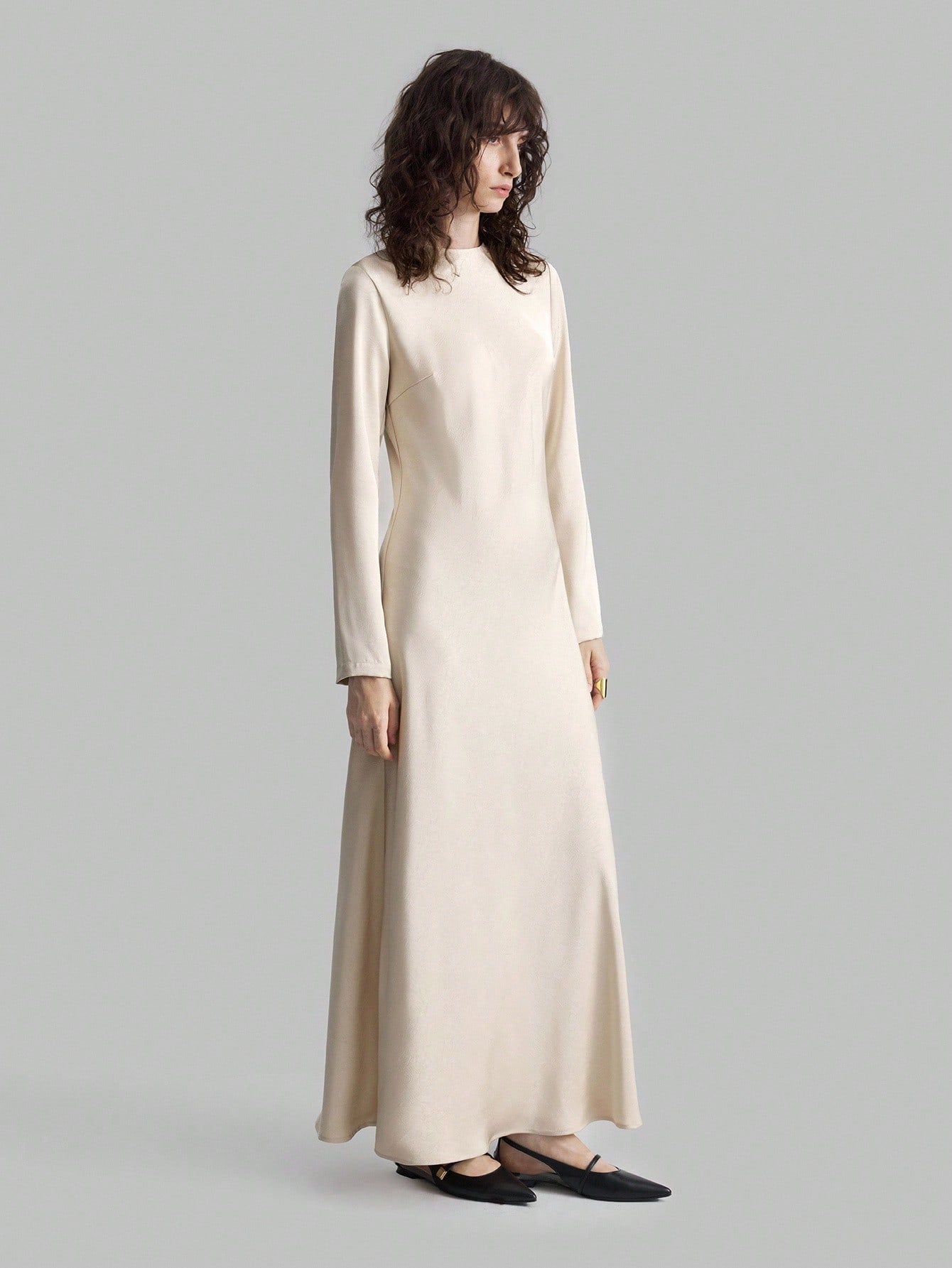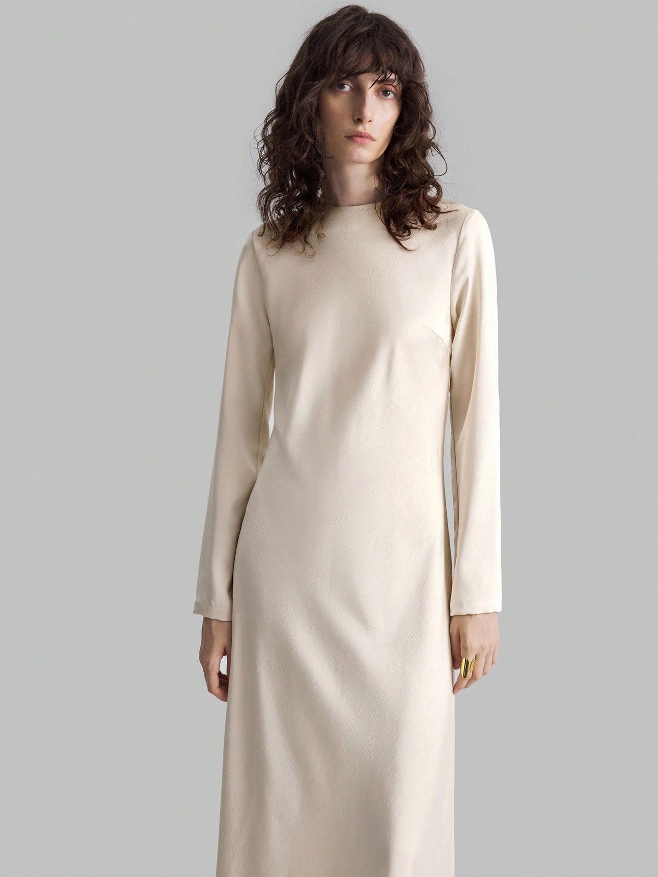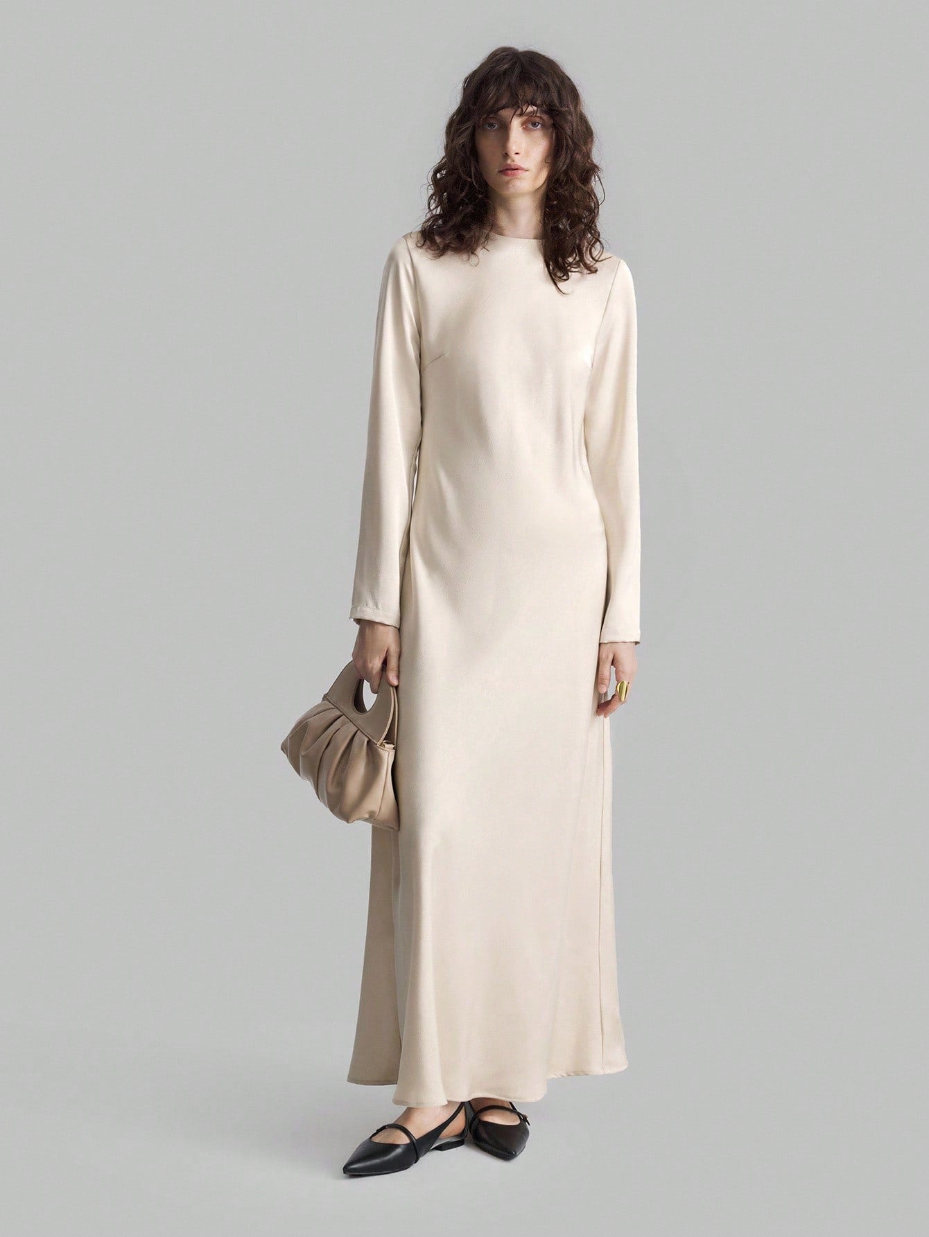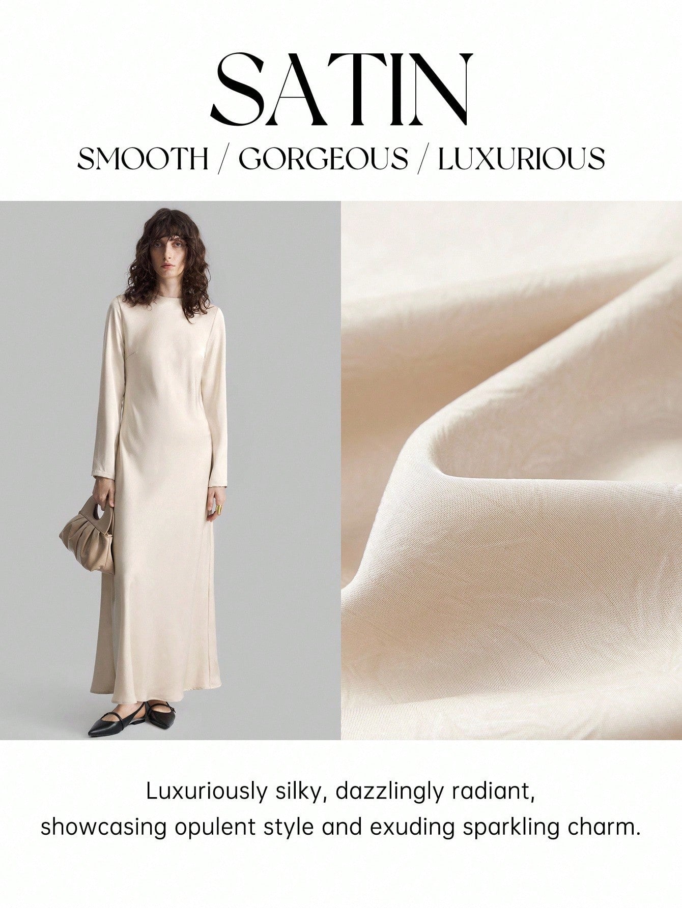 Ontre Women's 2025 New Versatile Practical Dress, Satin Fabric Round Neck Long Sleeve Elegant Solid Color