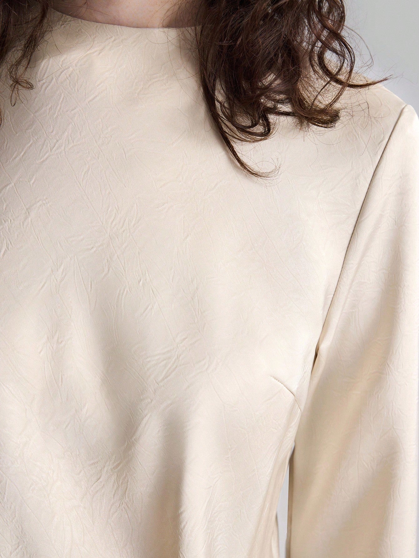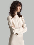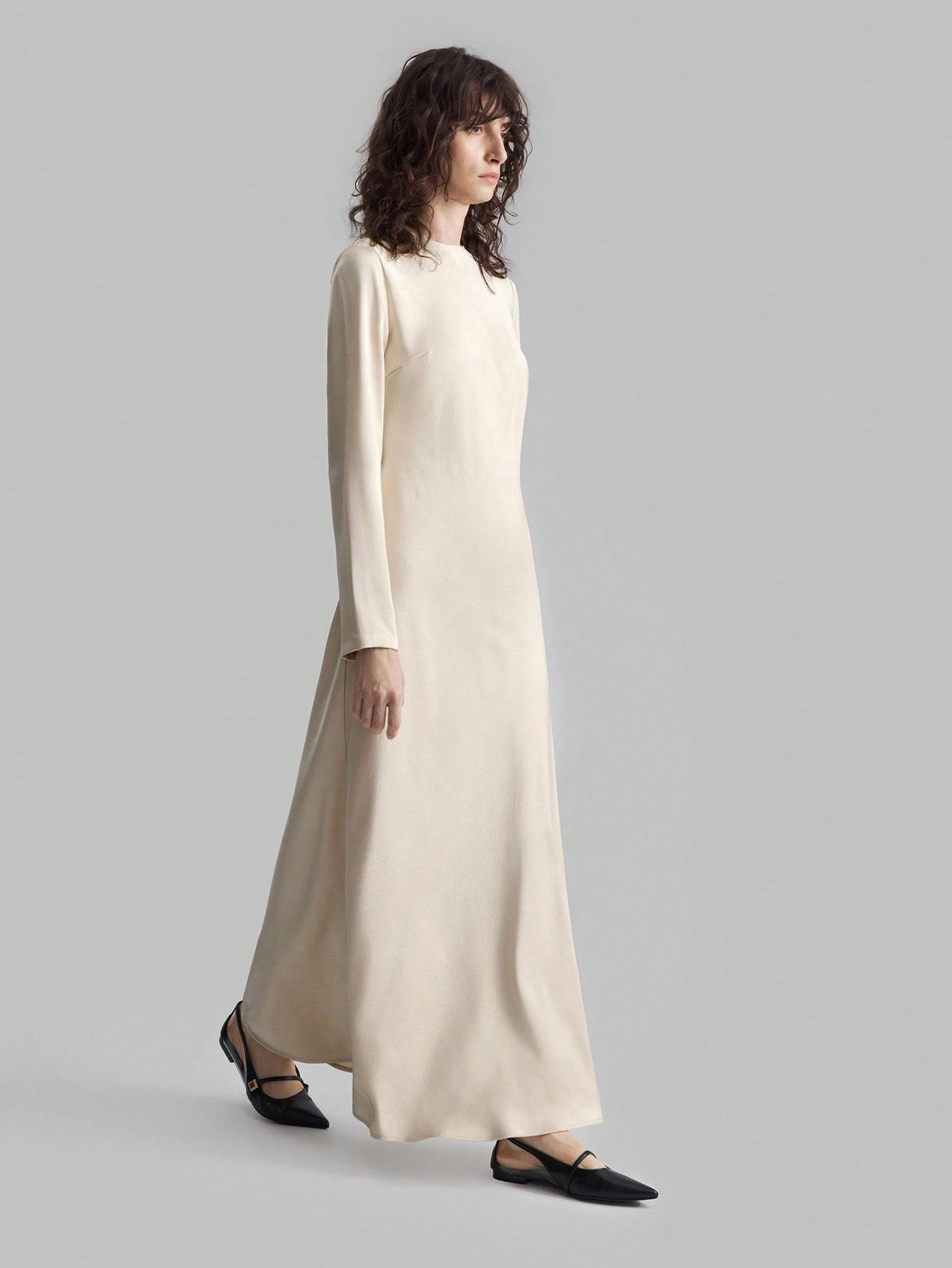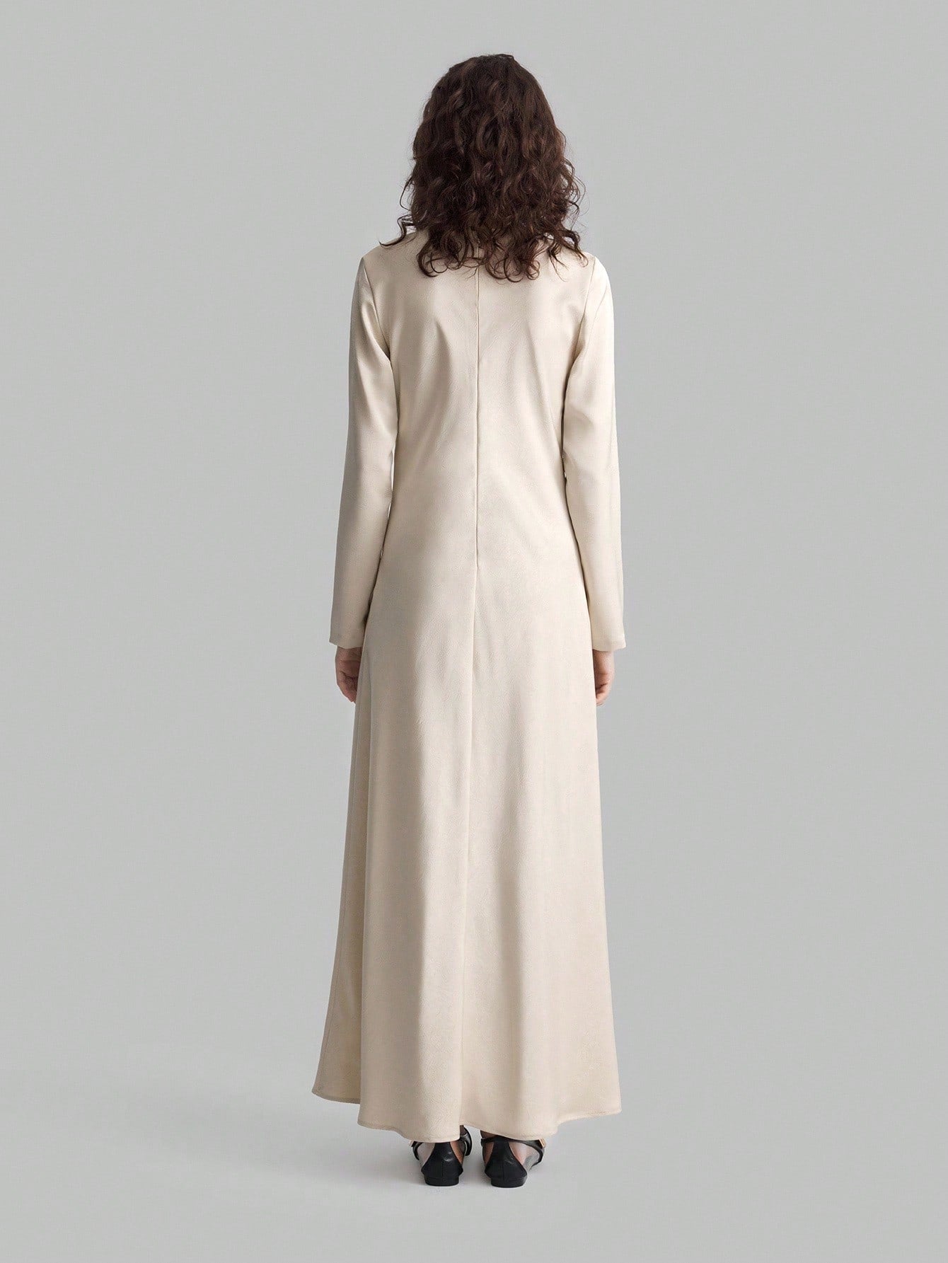 Ontre Women's 2025 New Versatile Practical Dress, Satin Fabric Round Neck Long Sleeve Elegant Solid Color