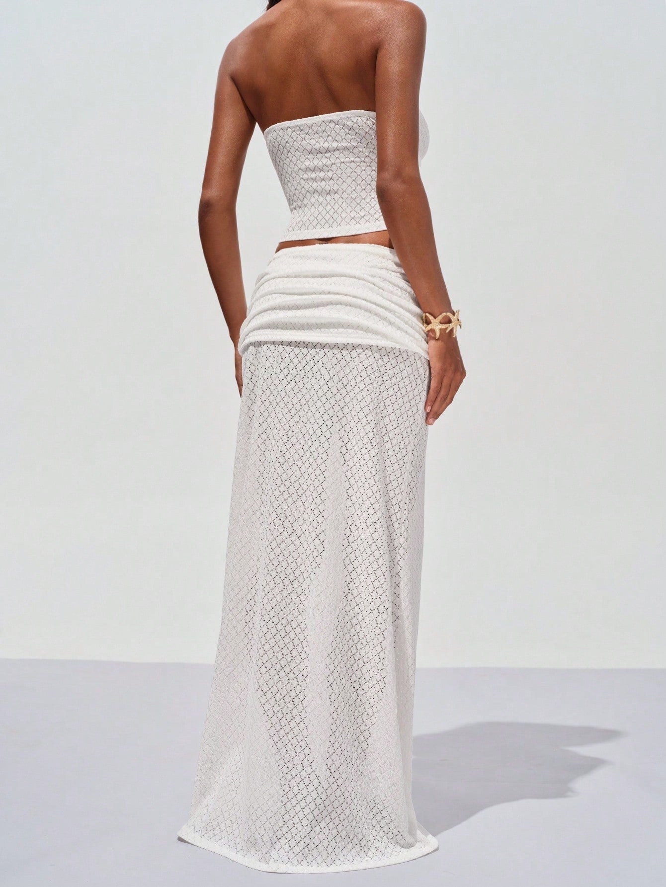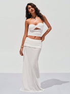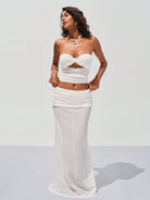 Opulessa White Solid Color Knitted Mermaid Skirt, Casual Beach Wear For Women