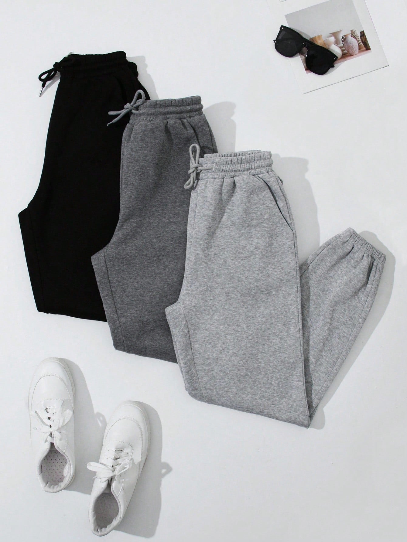 PETITE 3 Pairs Women's Casual Side Pockets Drawstring Relaxed Fit Pants