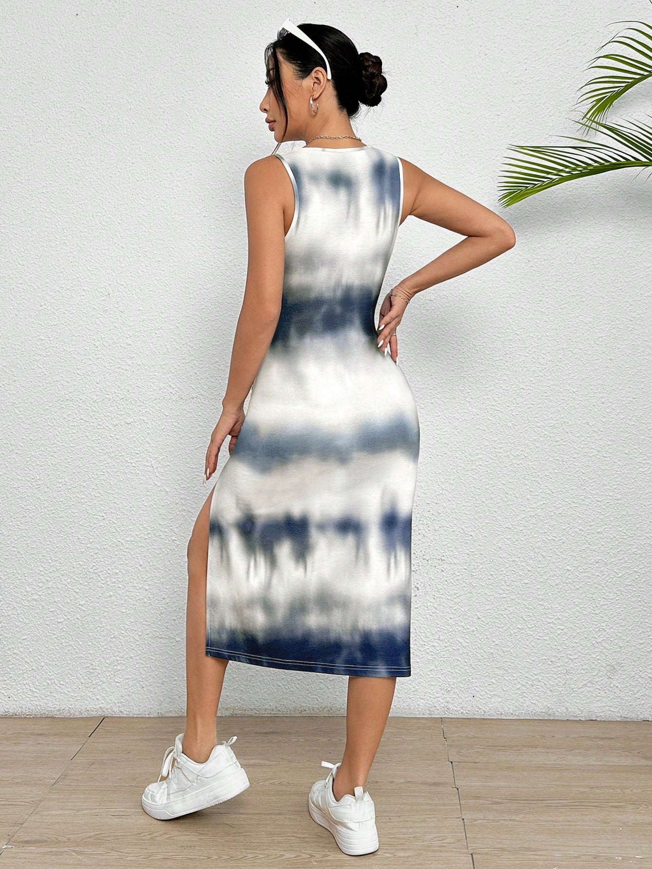 PETITE Women's Summer Tie-Dye Slit Hem Sleeveless Bodycon Dress,Summer Dresses Spring Clothes