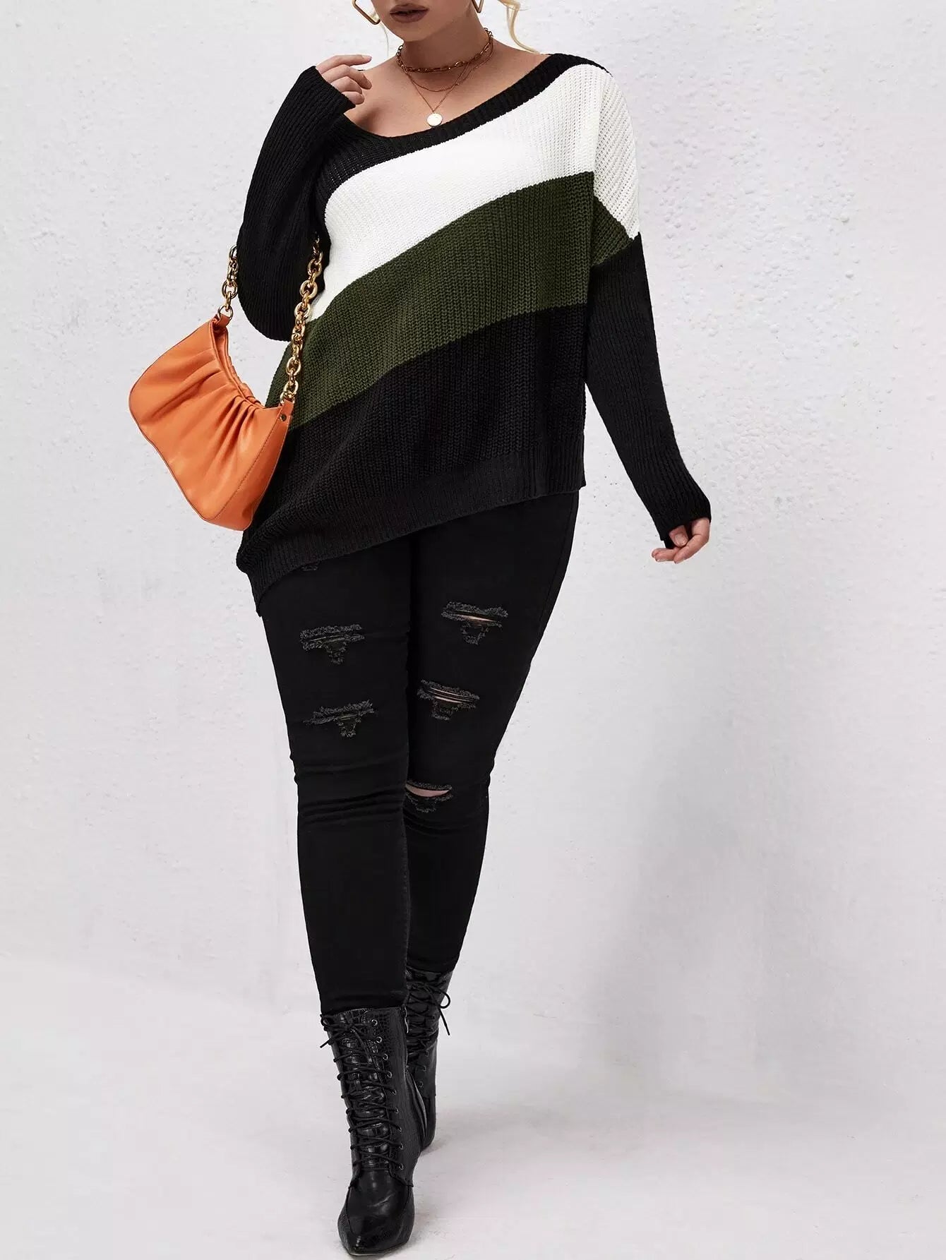 Plus Color Block Asymmetrical Hem Drop Shoulder Sweater
