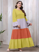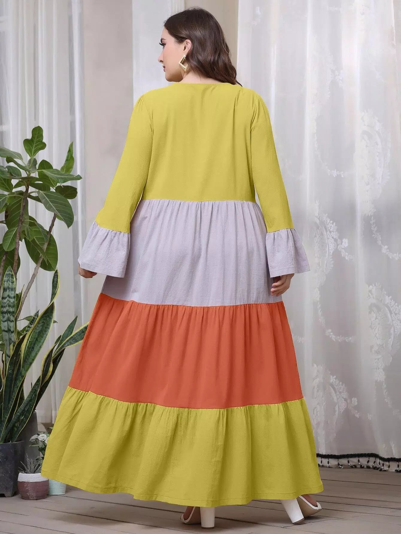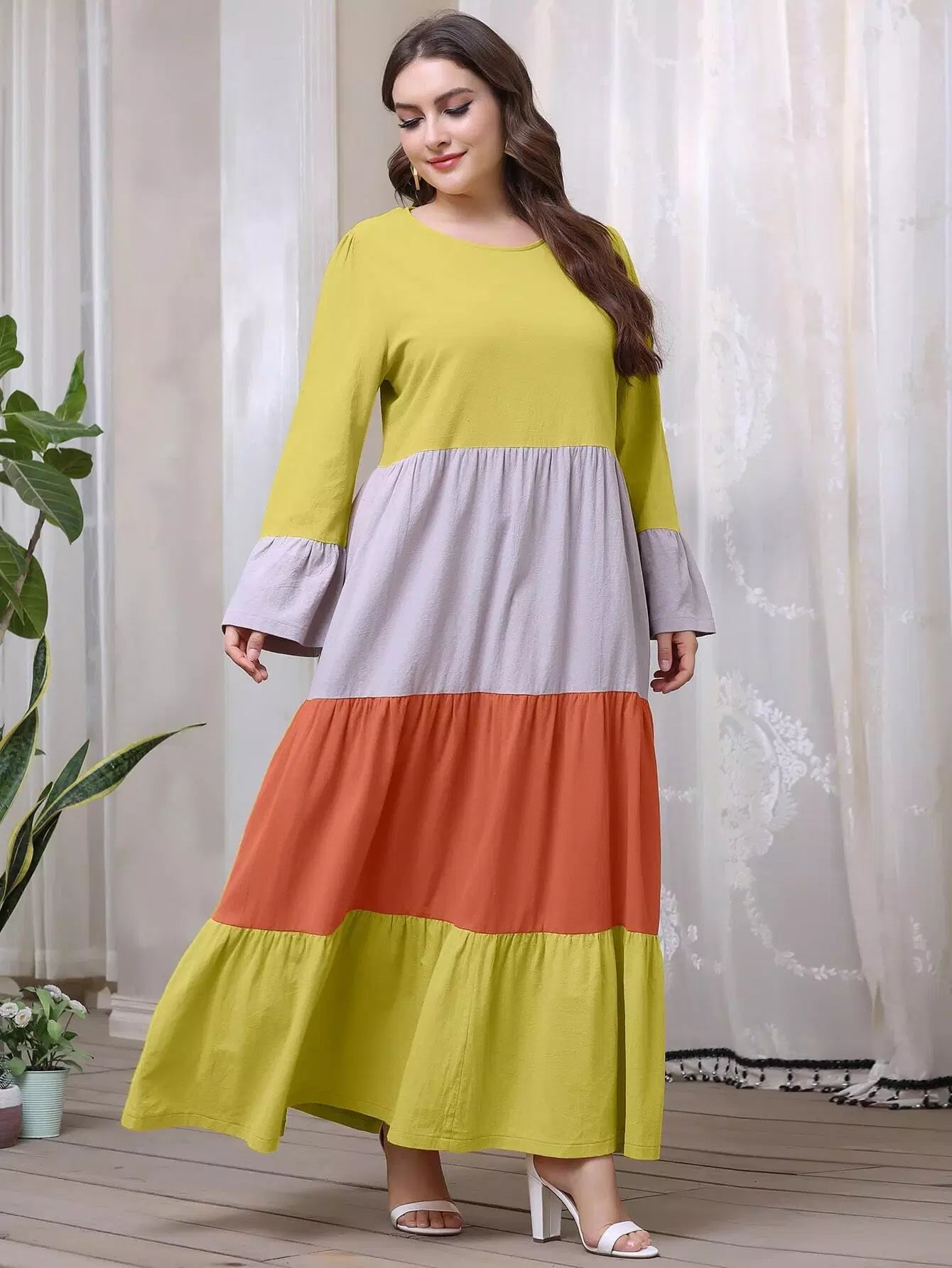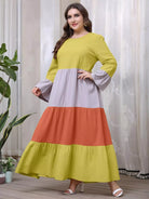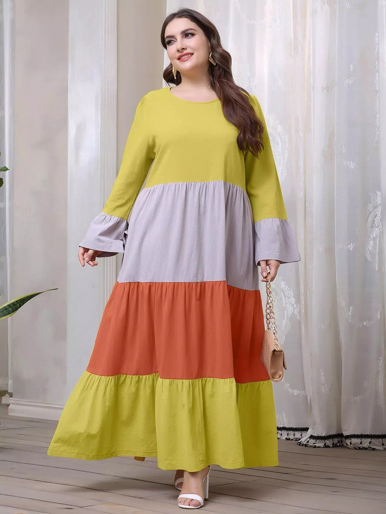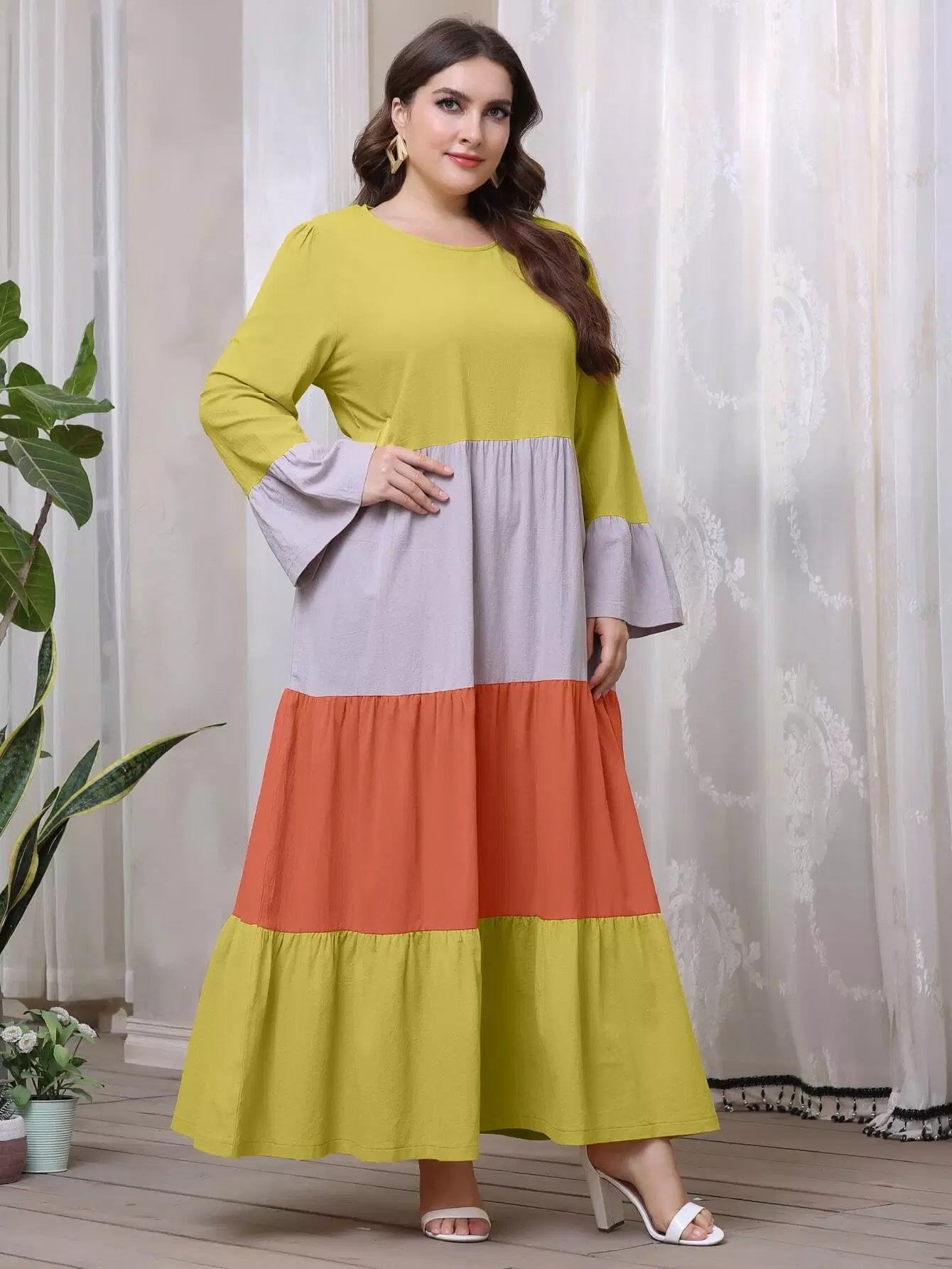 Plus Colorblock Flounce Sleeve Maxi Smock Dress