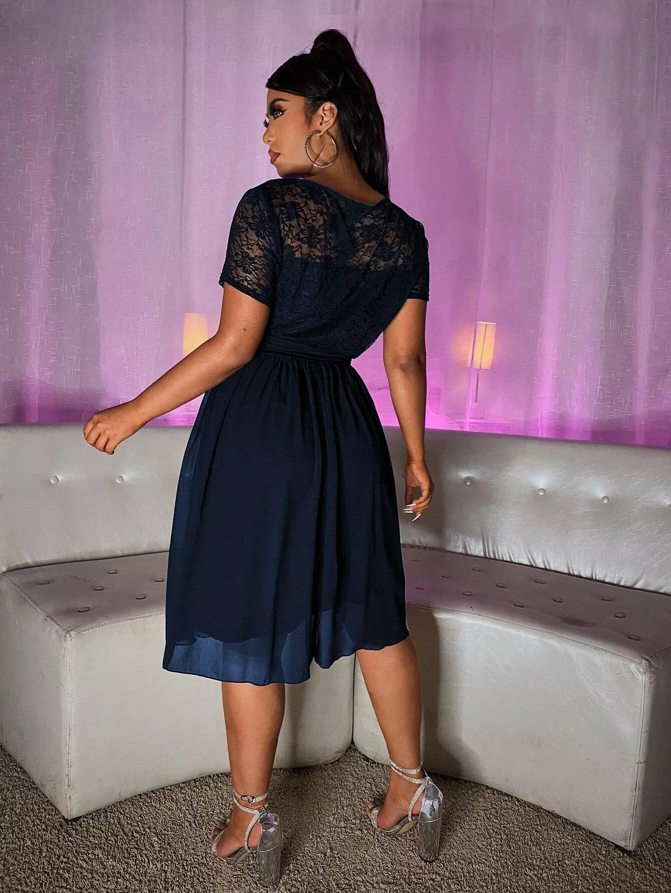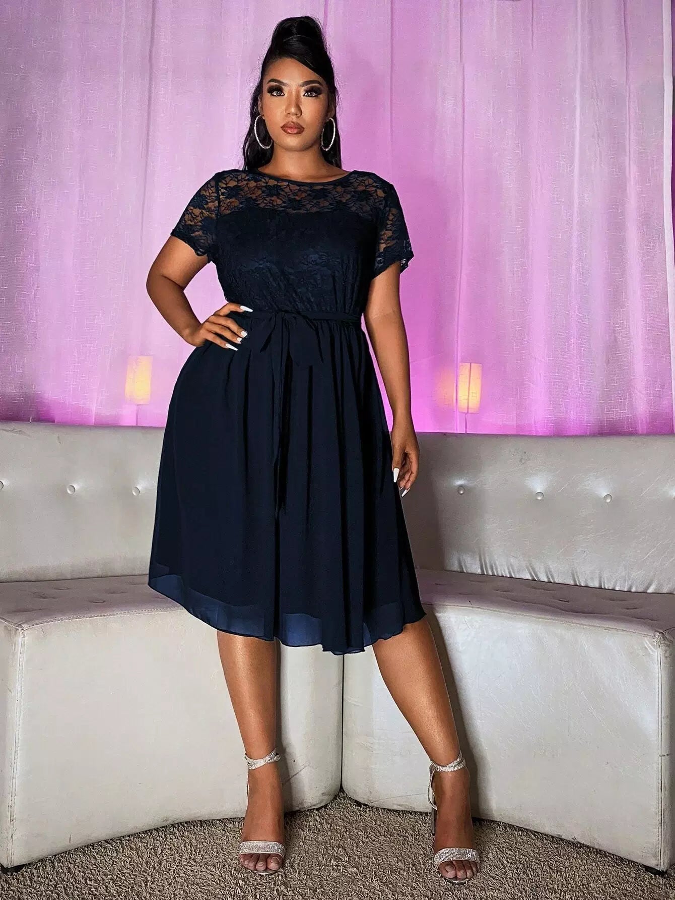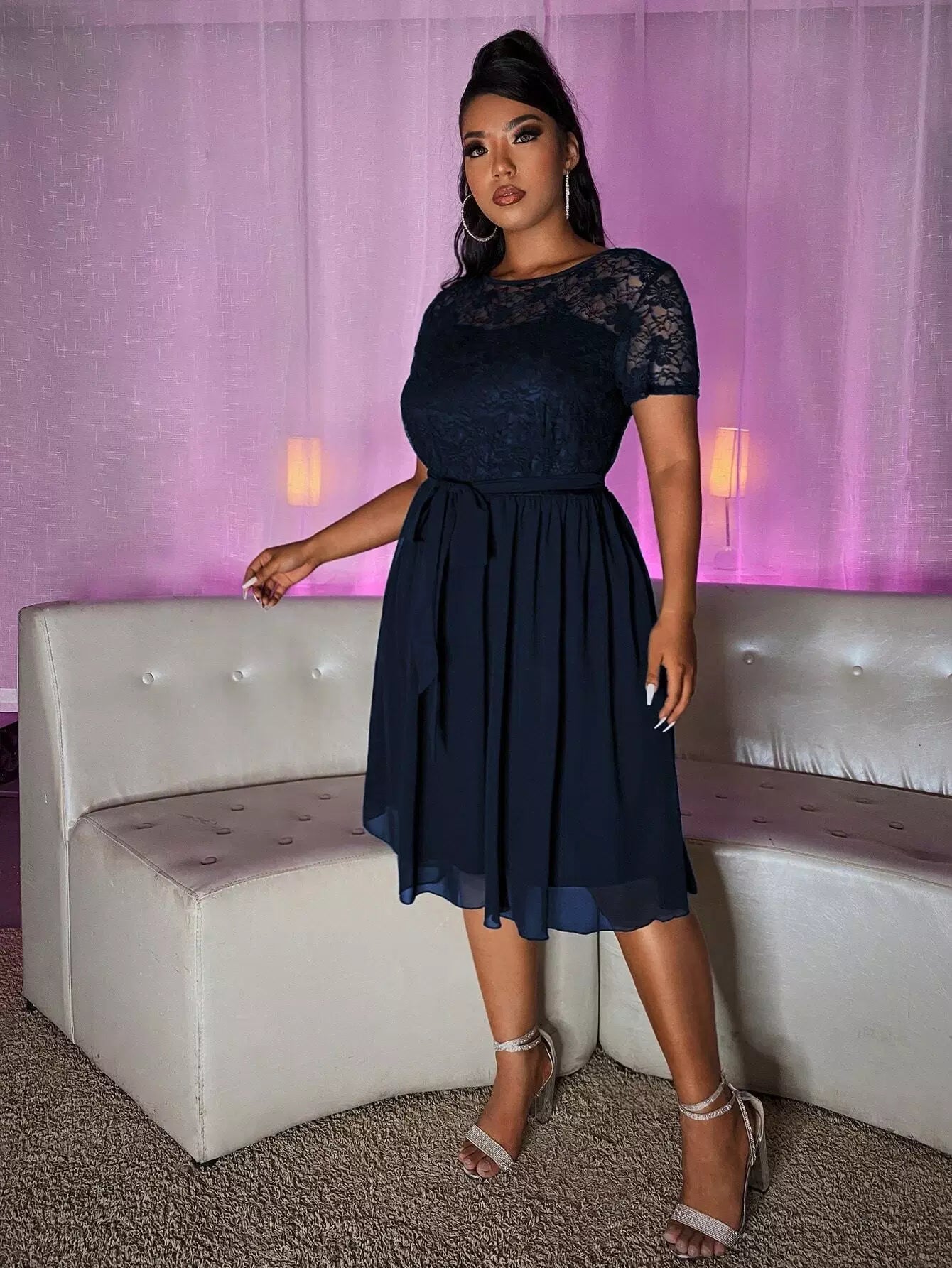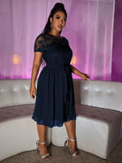 Plus Contrast Lace Dress Without Belt