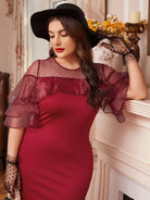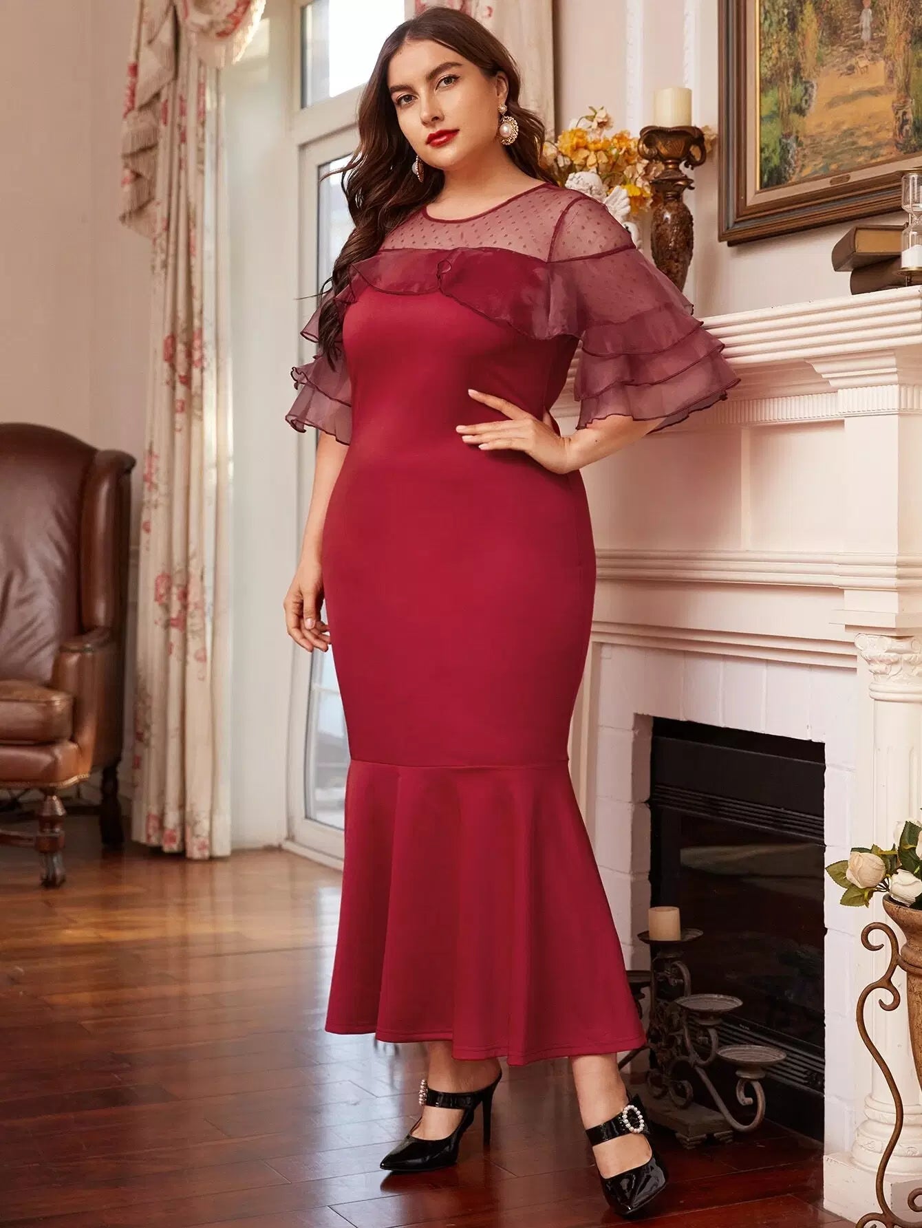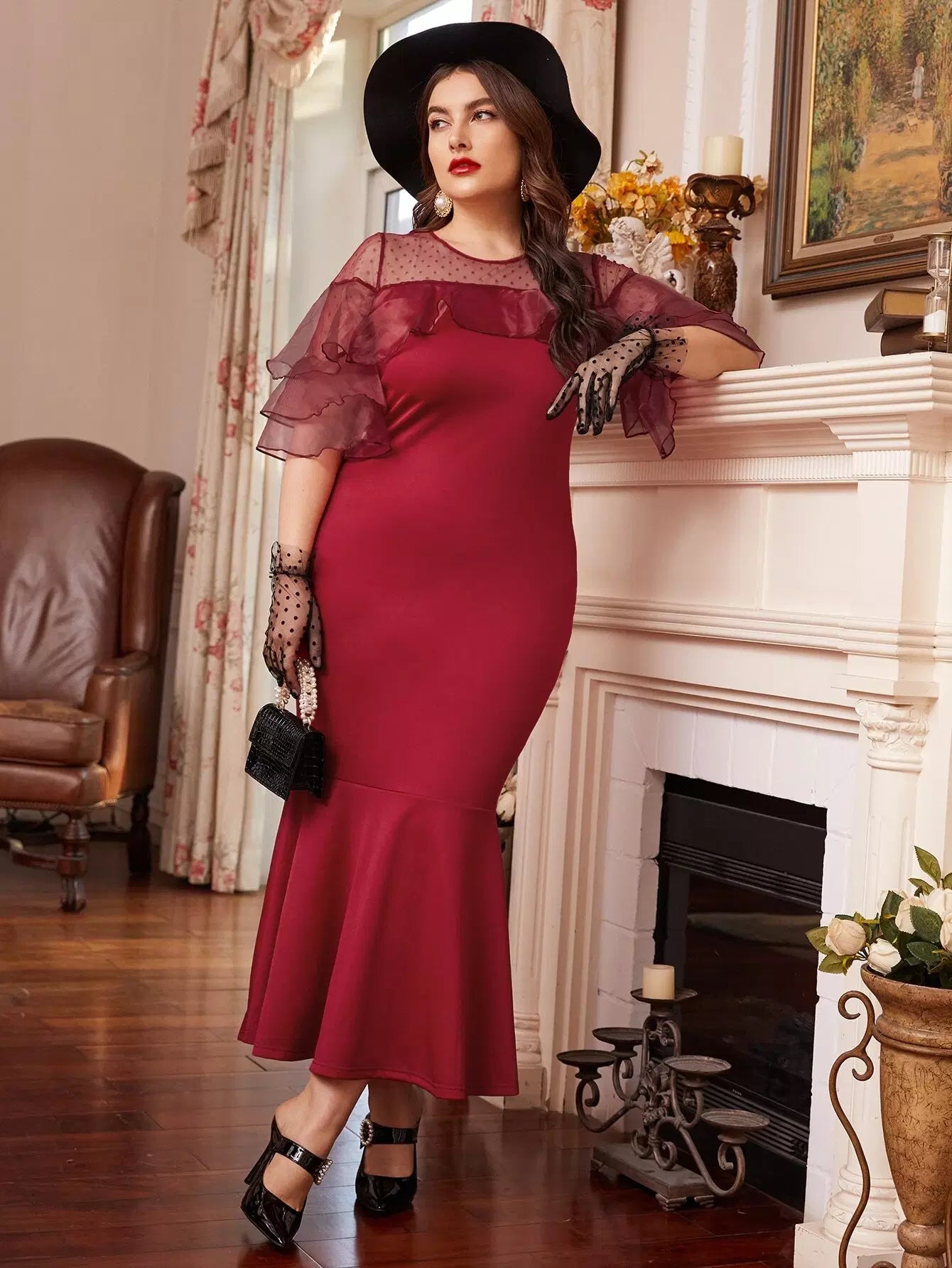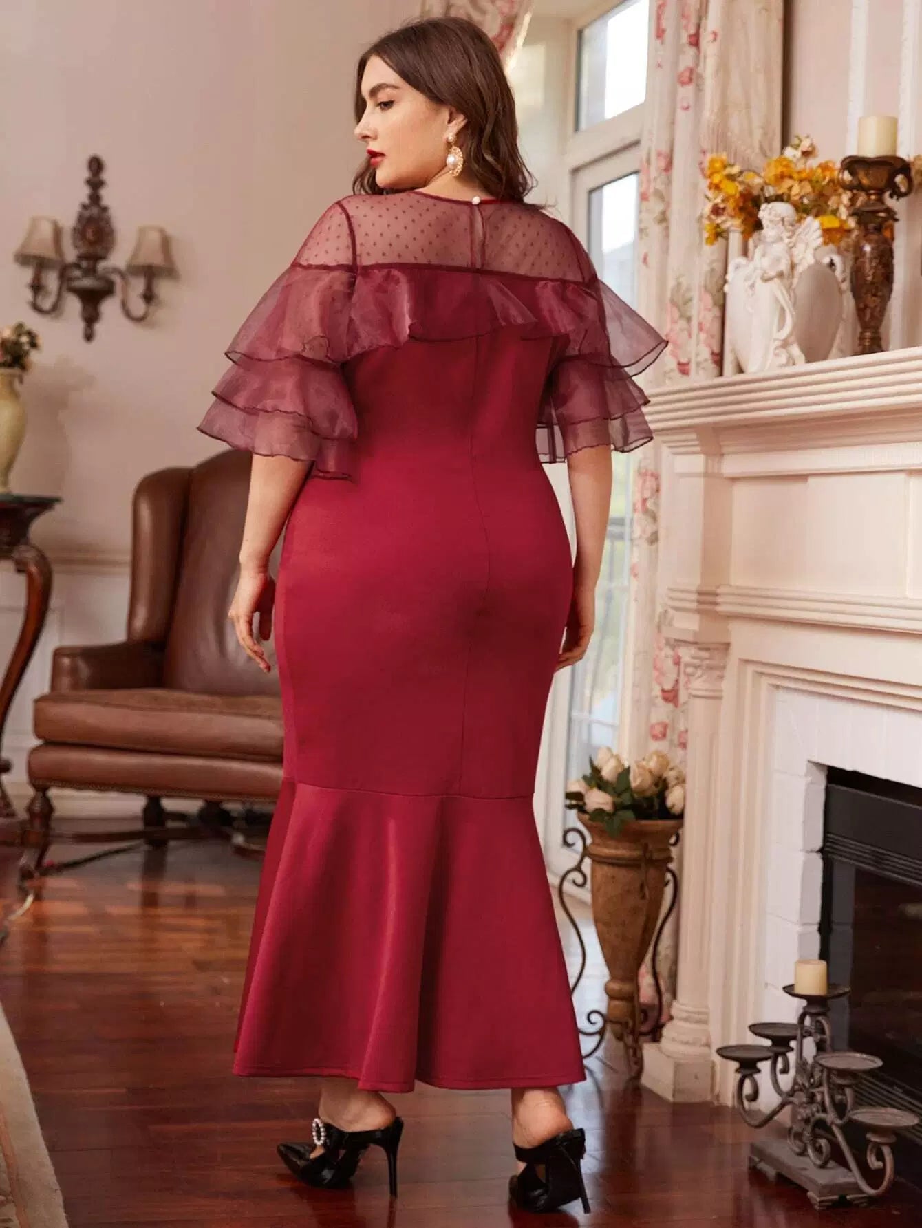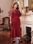 Plus Contrast Mesh Layered Sleeve Mermaid Dress
