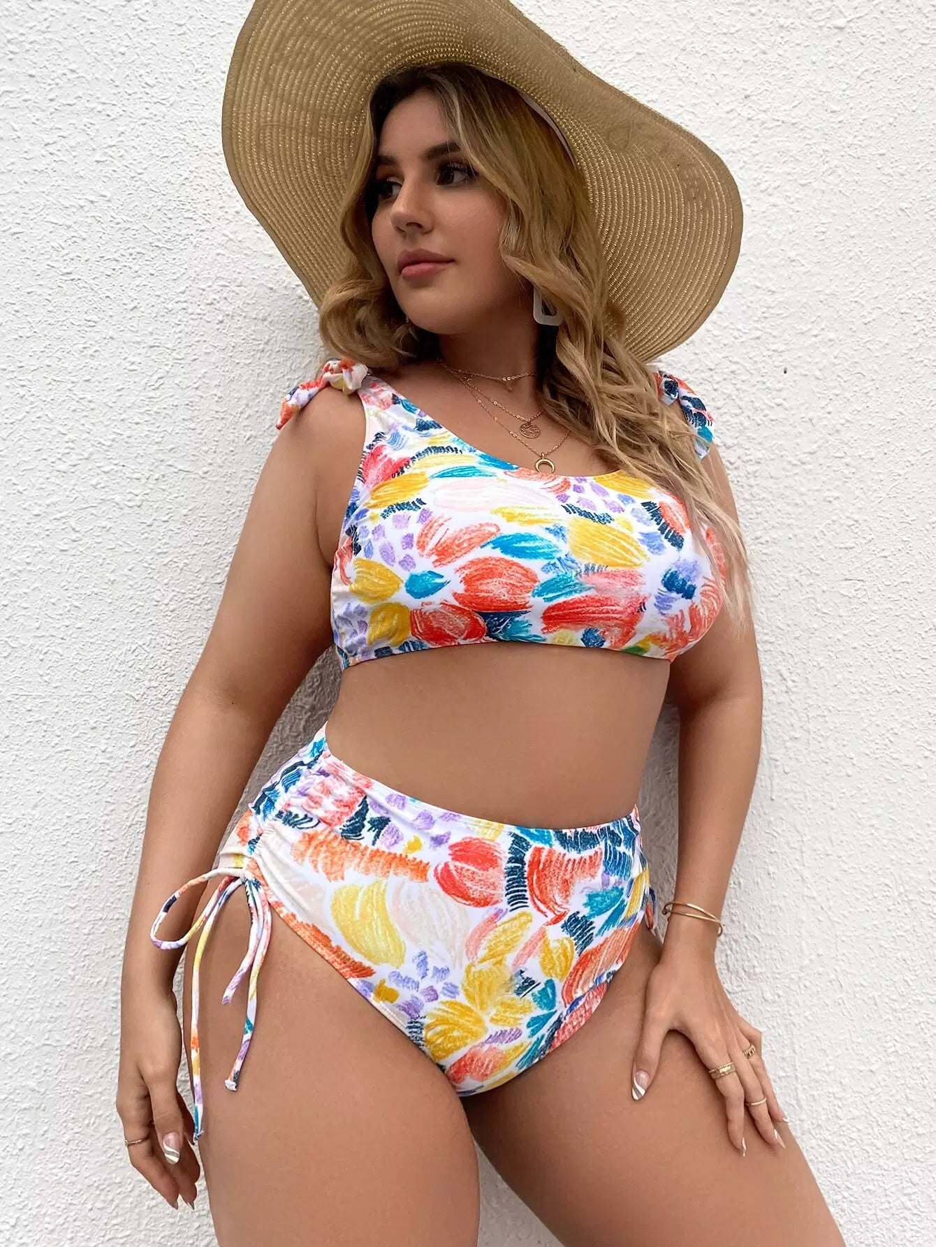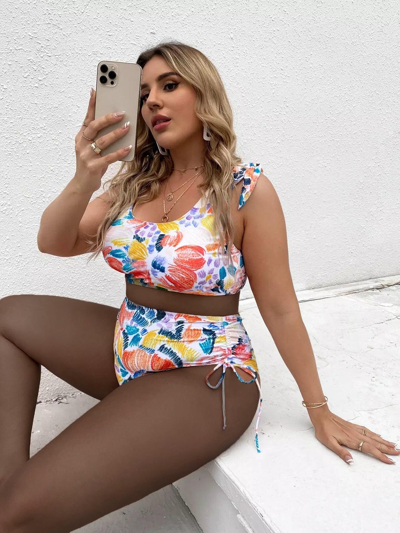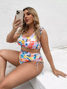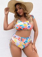 Plus Floral Print Tie Shoulder Bikini Swimsuit