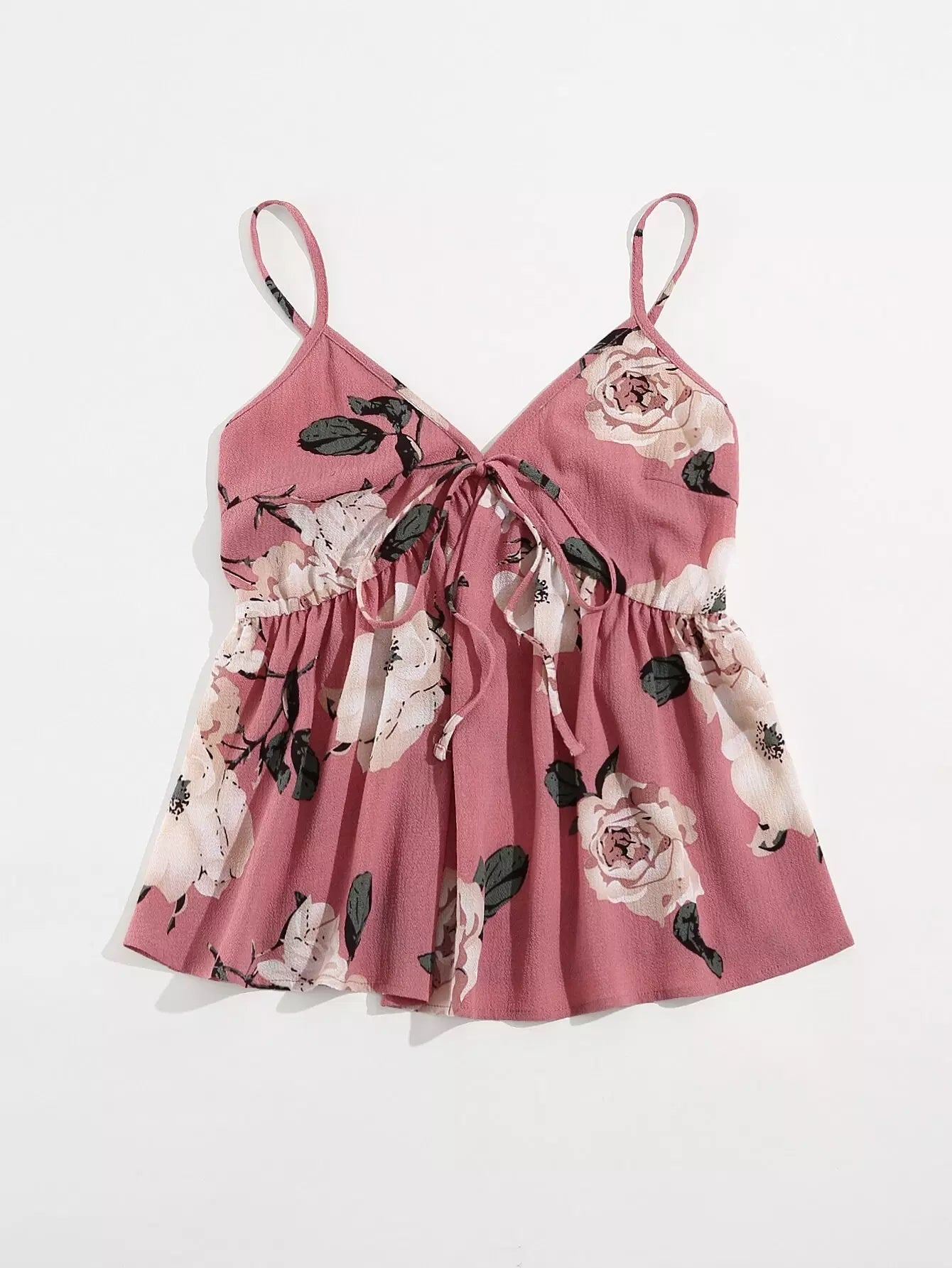 Plus Floral Tie Front Shirred Back Chiffon Cami Top