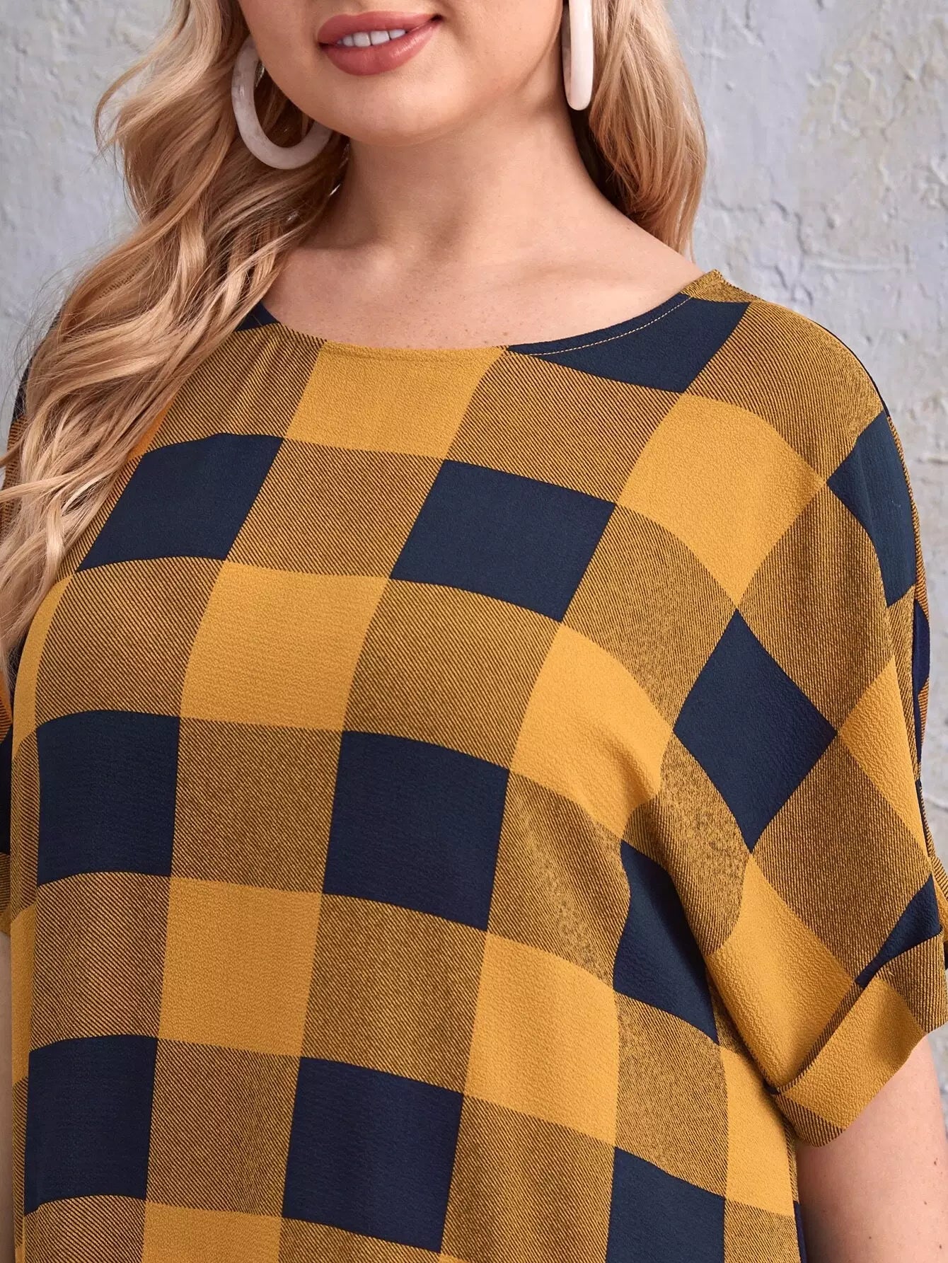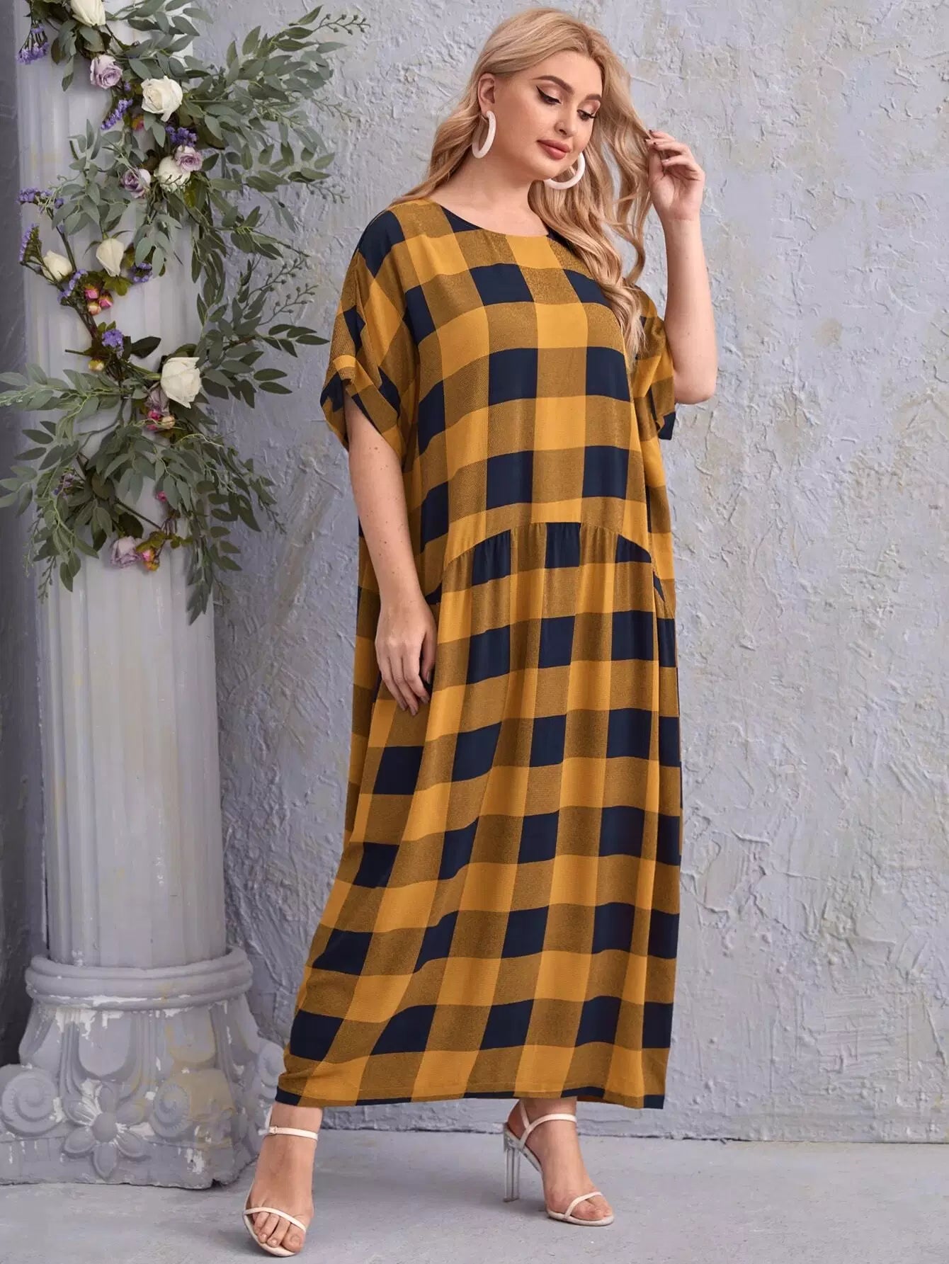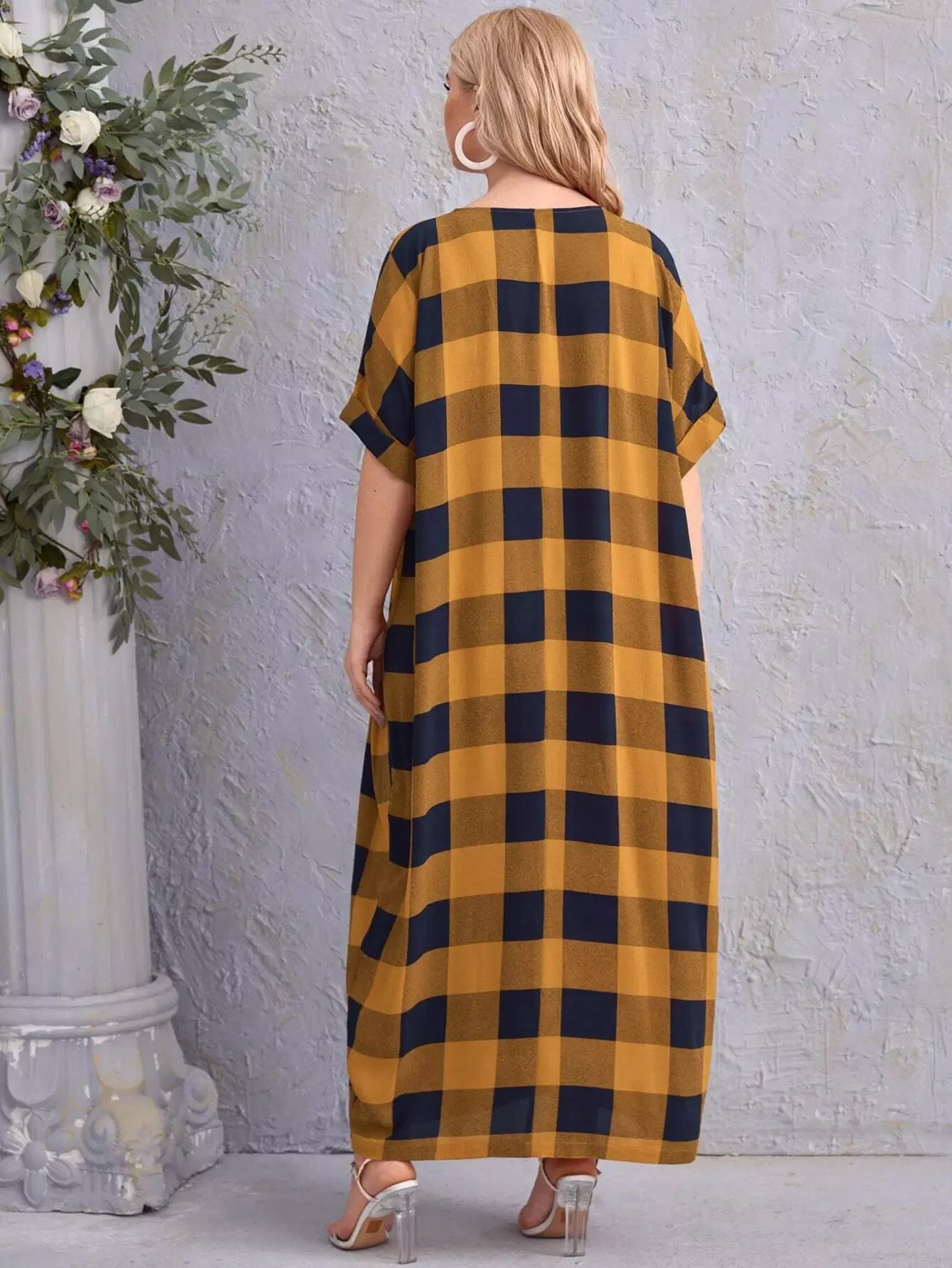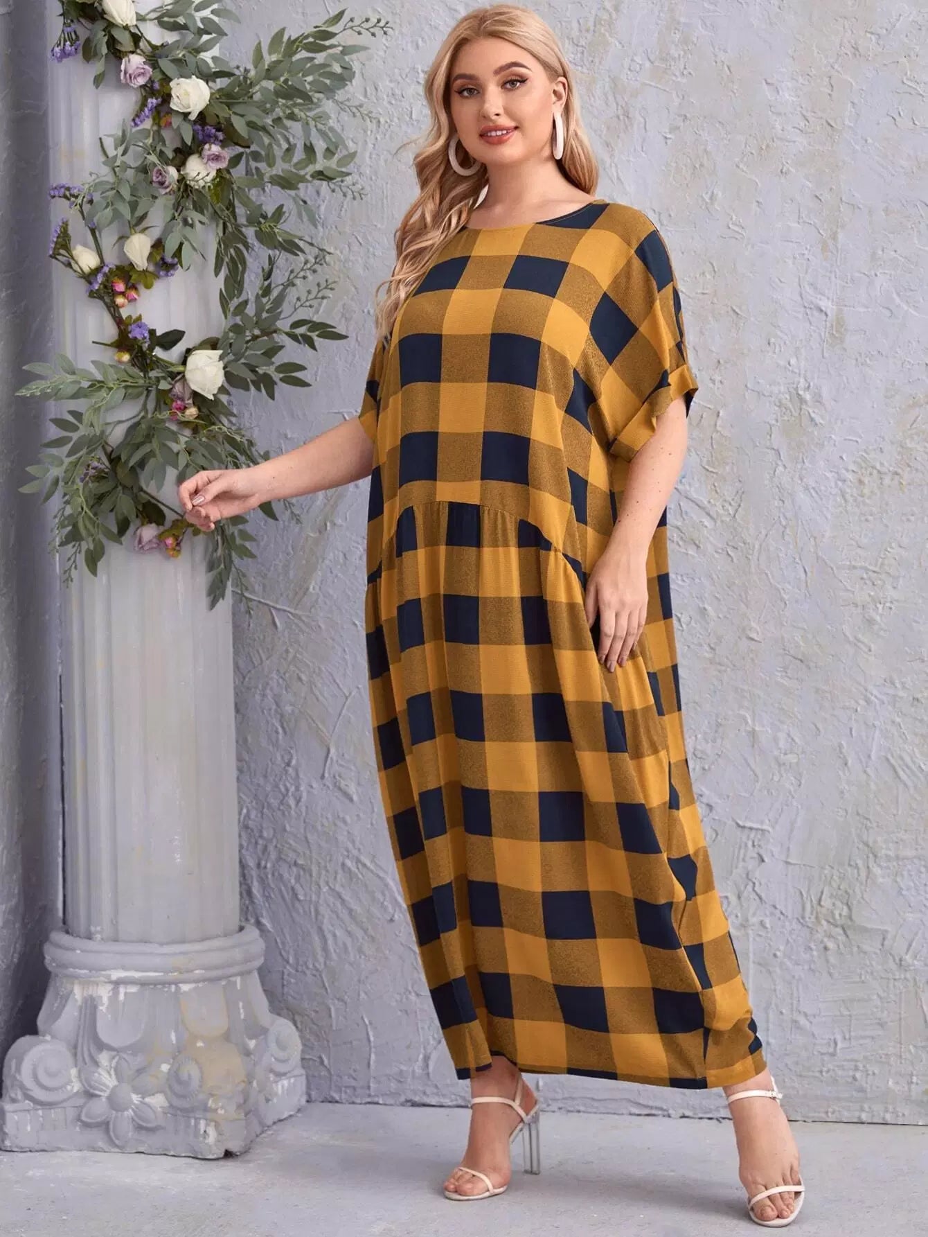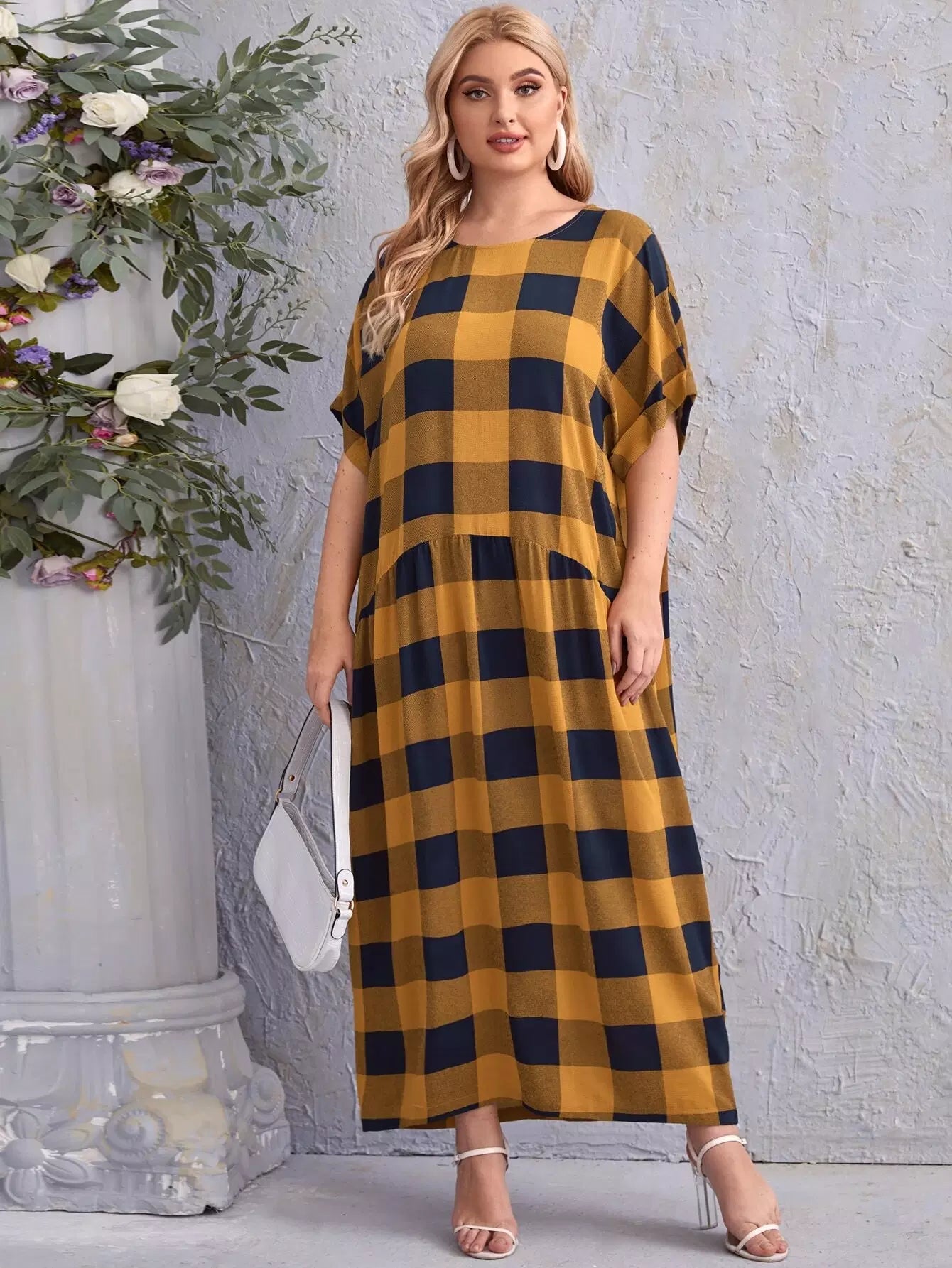 Plus Gingham Roll Up Sleeve Dress
