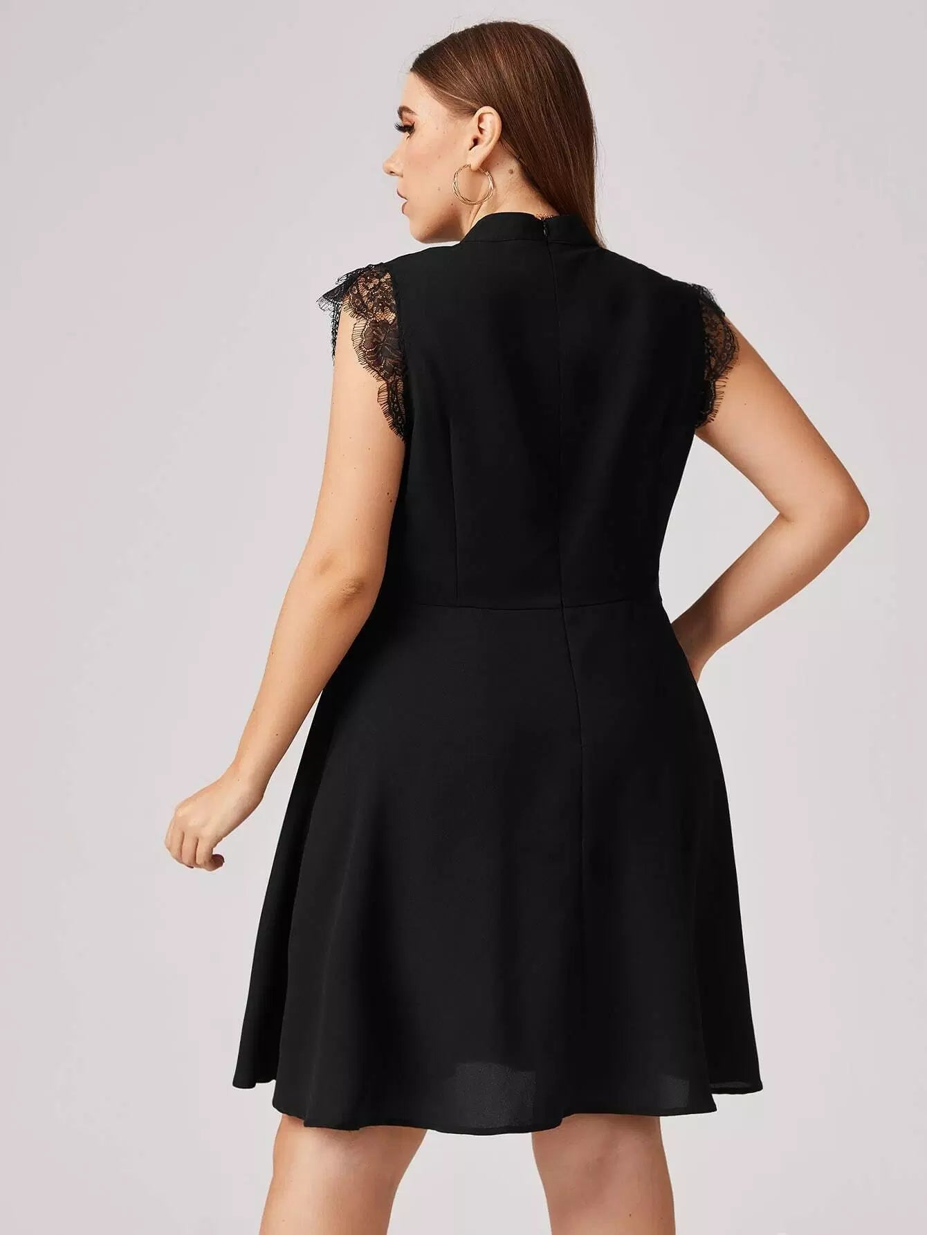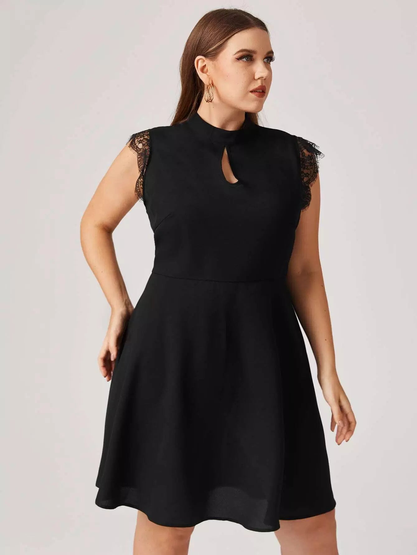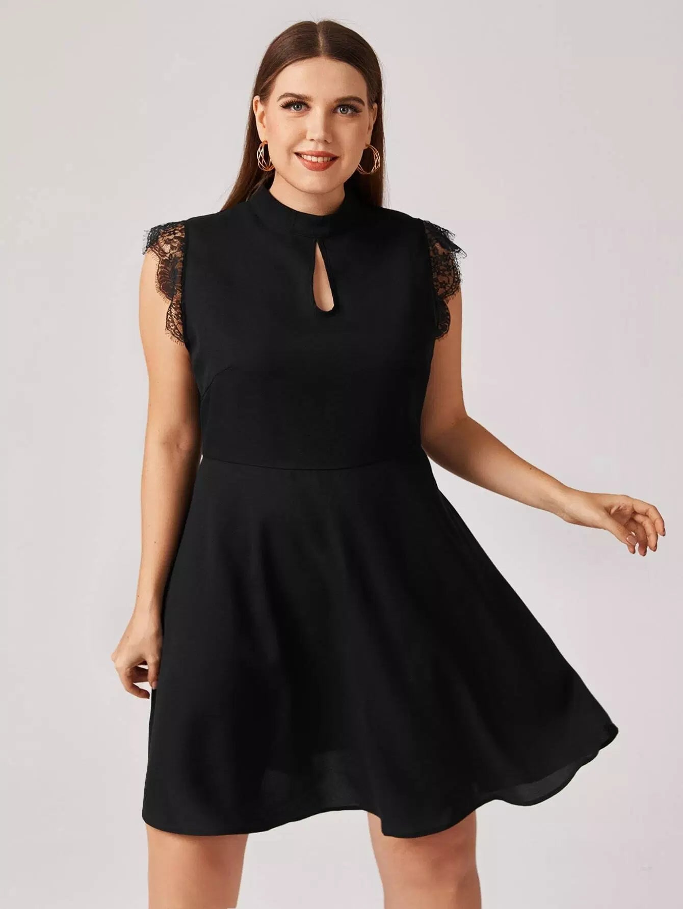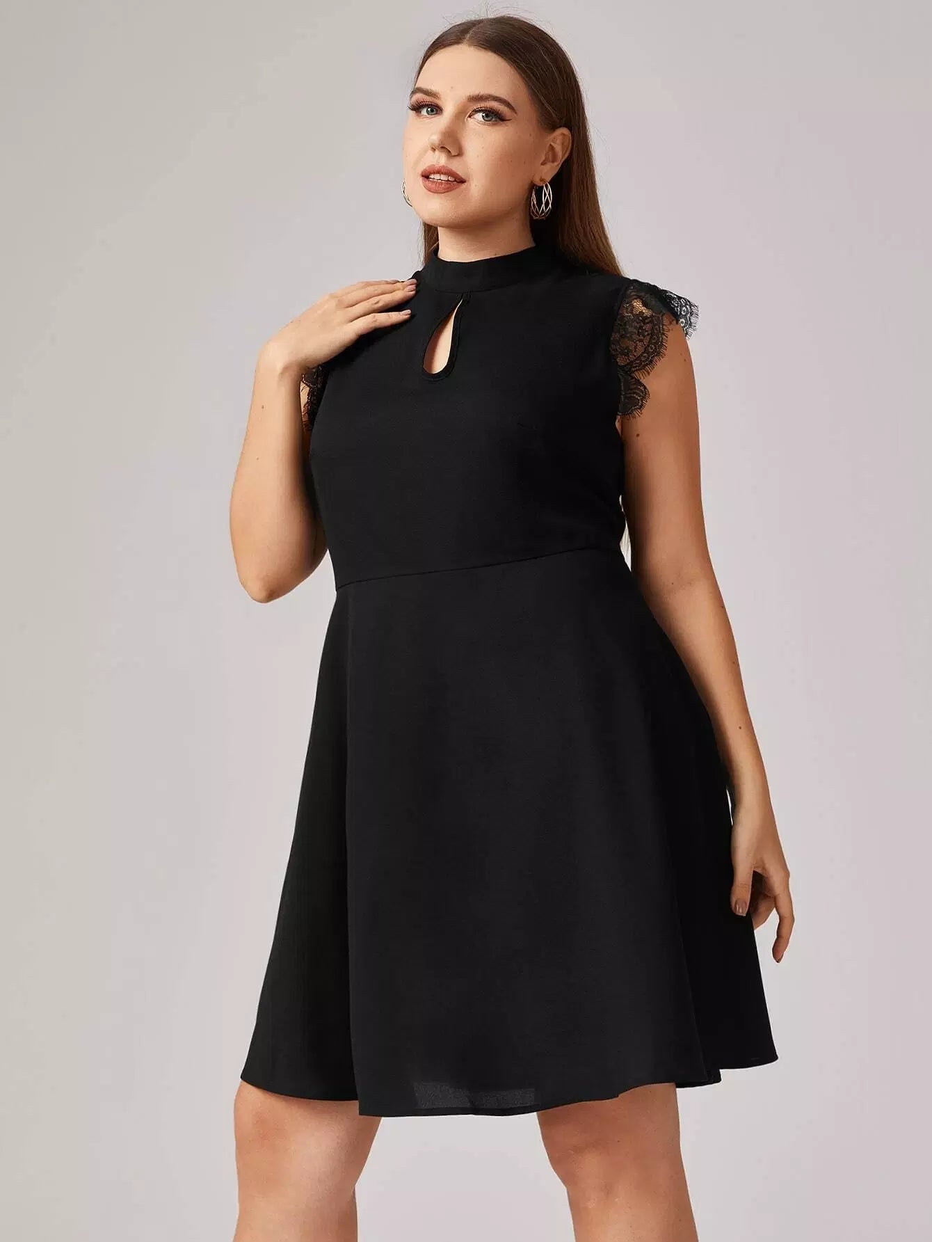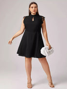 Women - Plus Keyhole Front Eyelash Lace Trim Dress