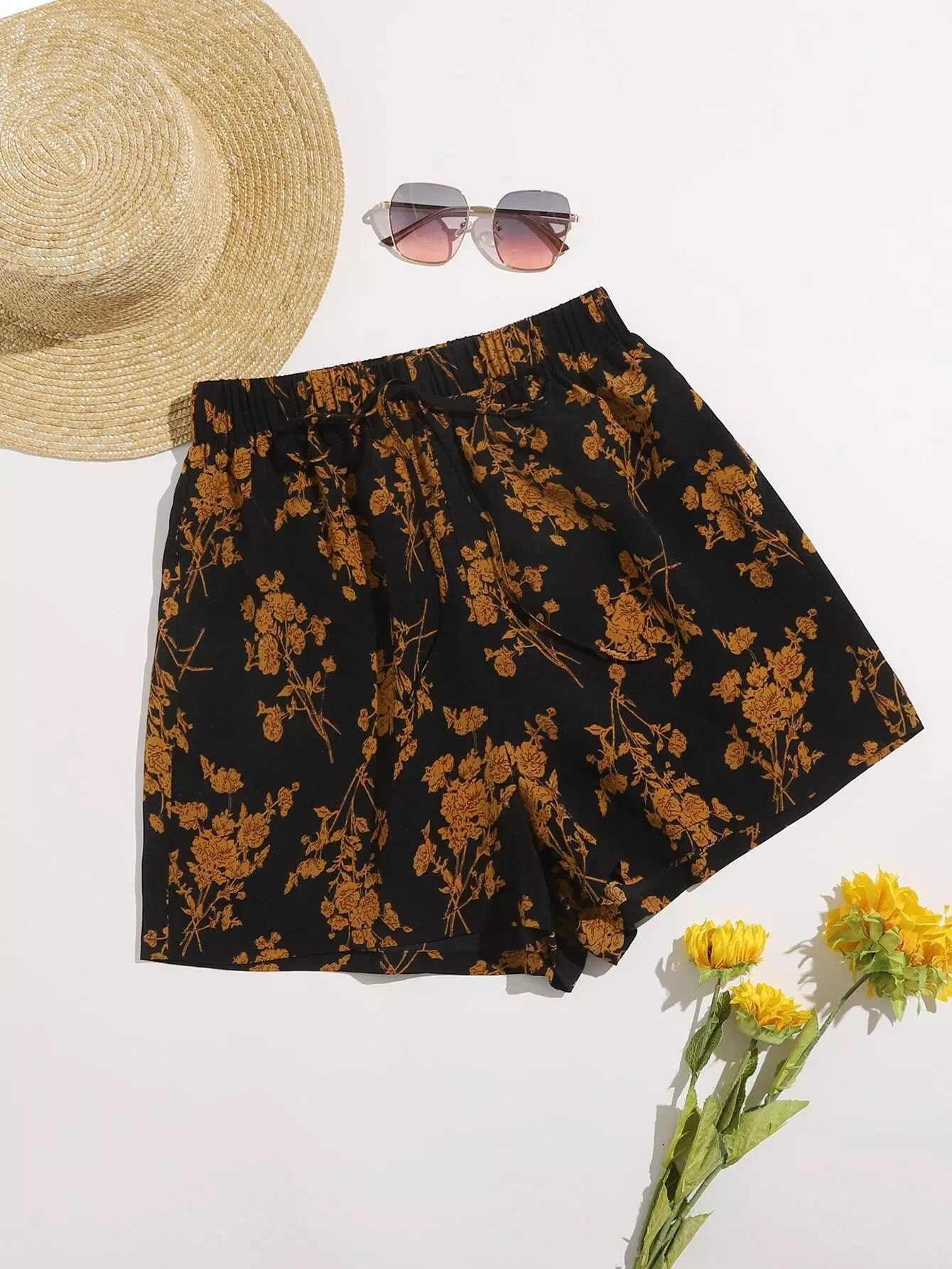 Plus Knot Waist Floral Shorts