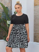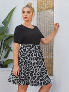 Plus Leopard Rib-Knit Dress Without Belt
