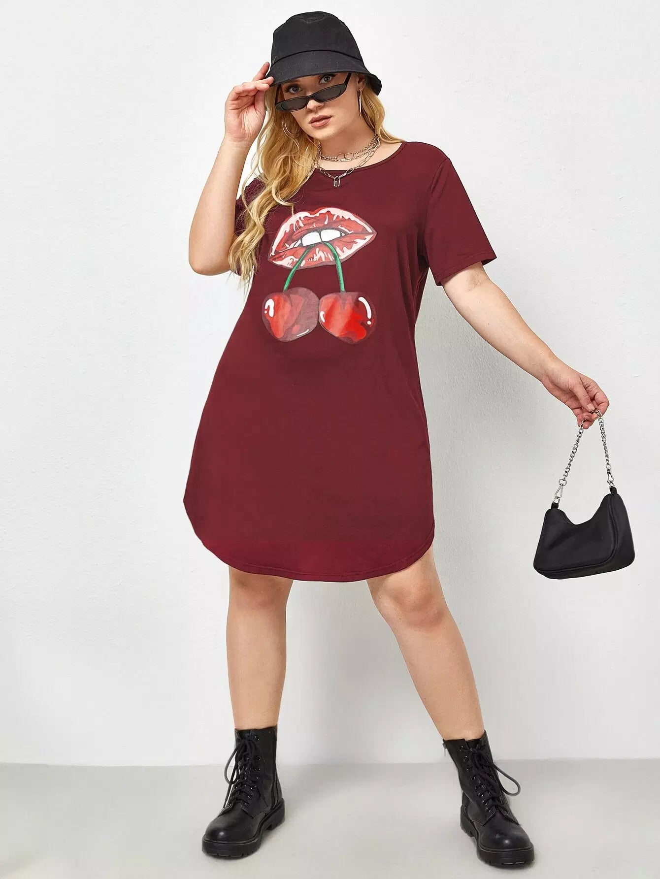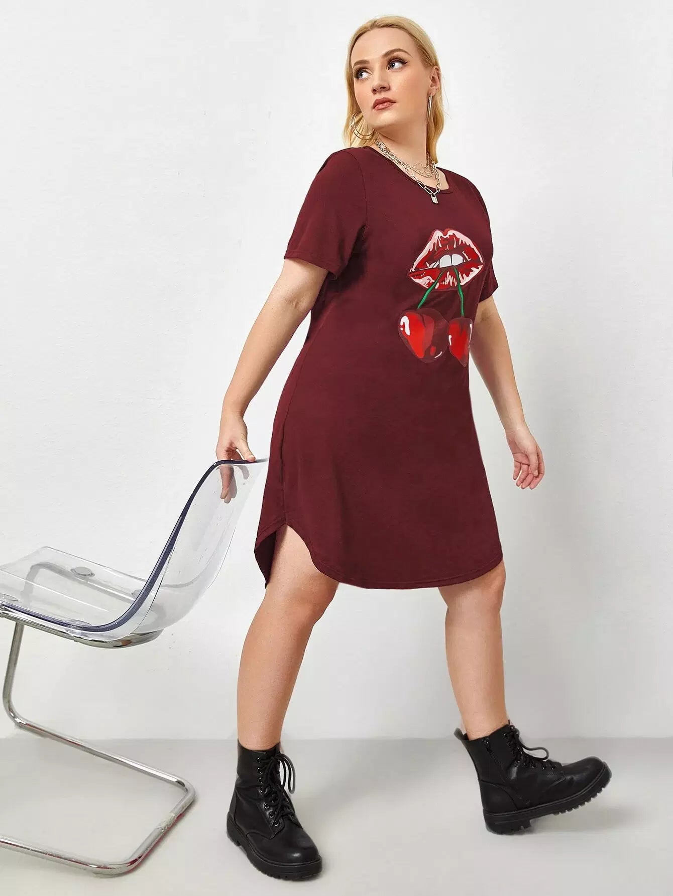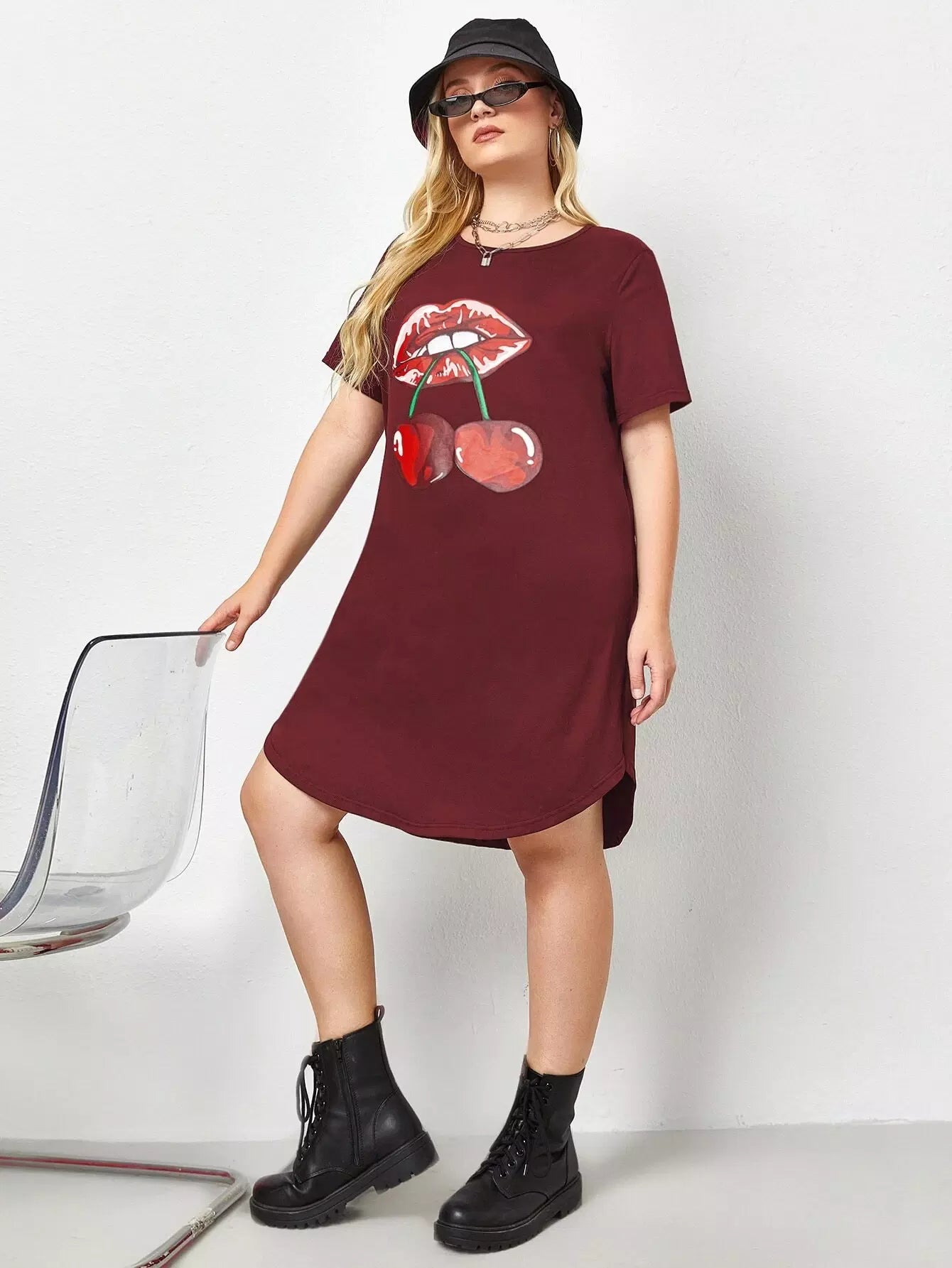Plus Mouth And Cherry Print Tee Dress