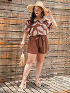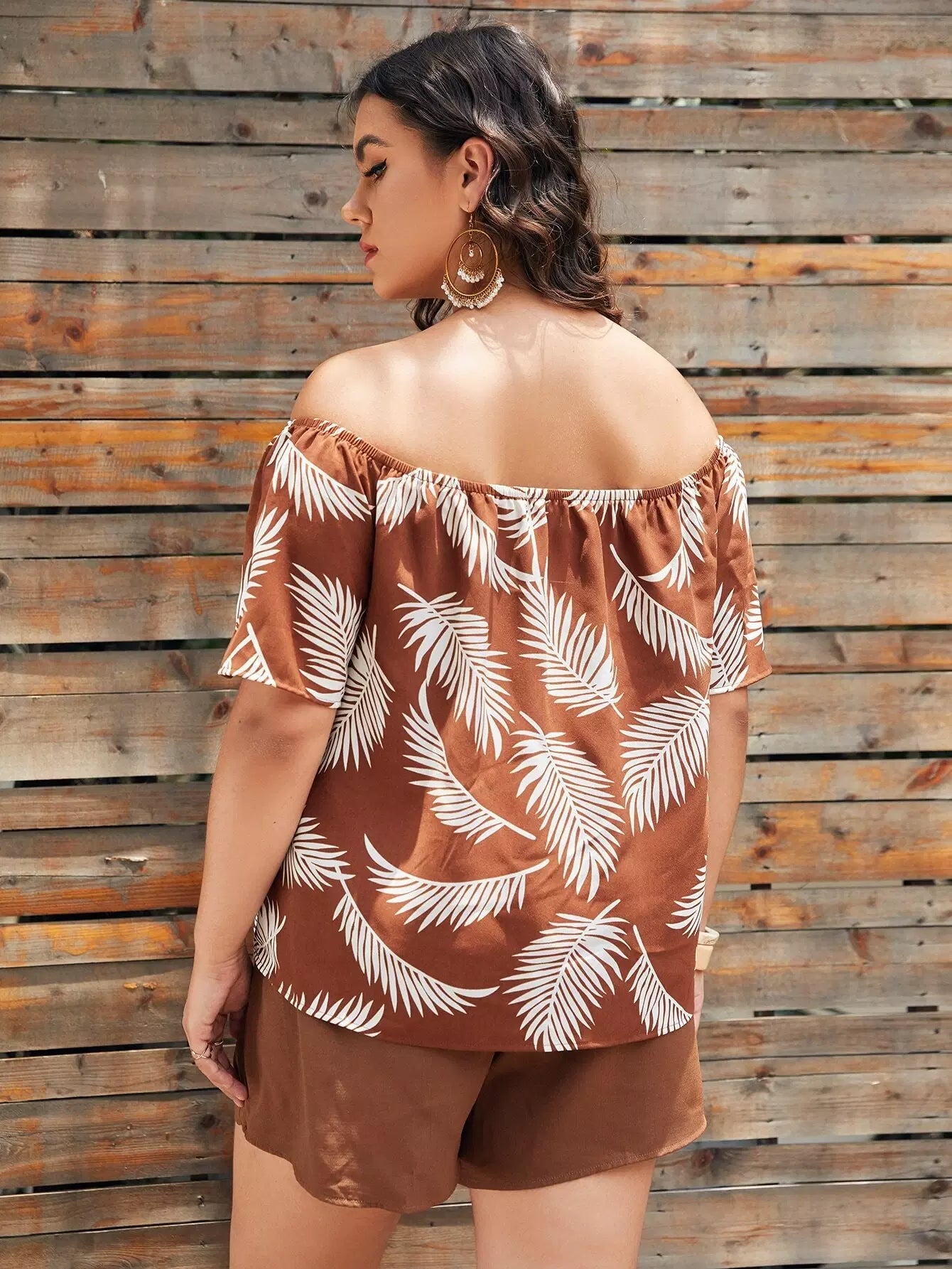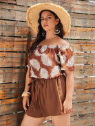 Plus Off Shoulder Tropical Print Top & Shorts Set