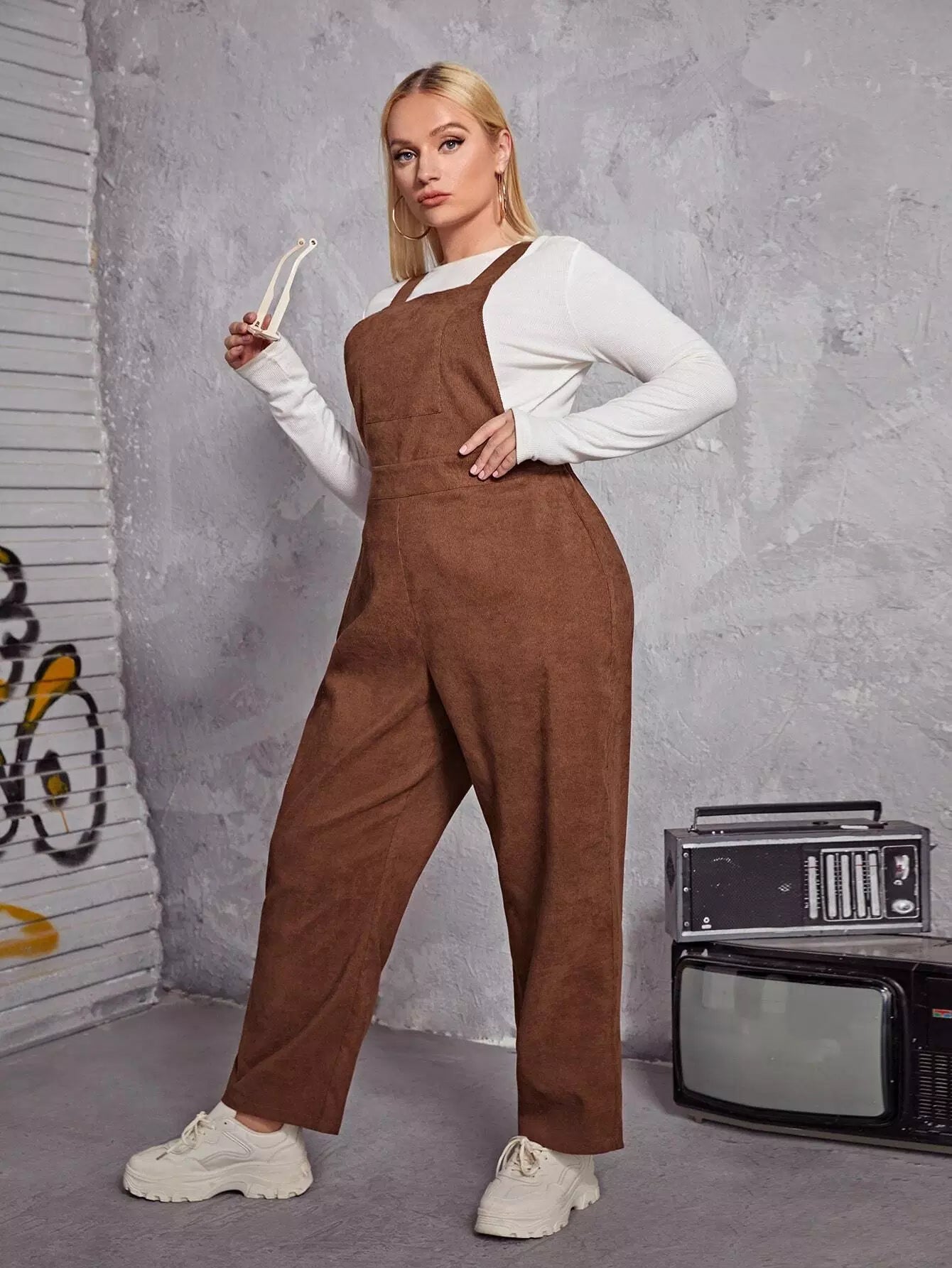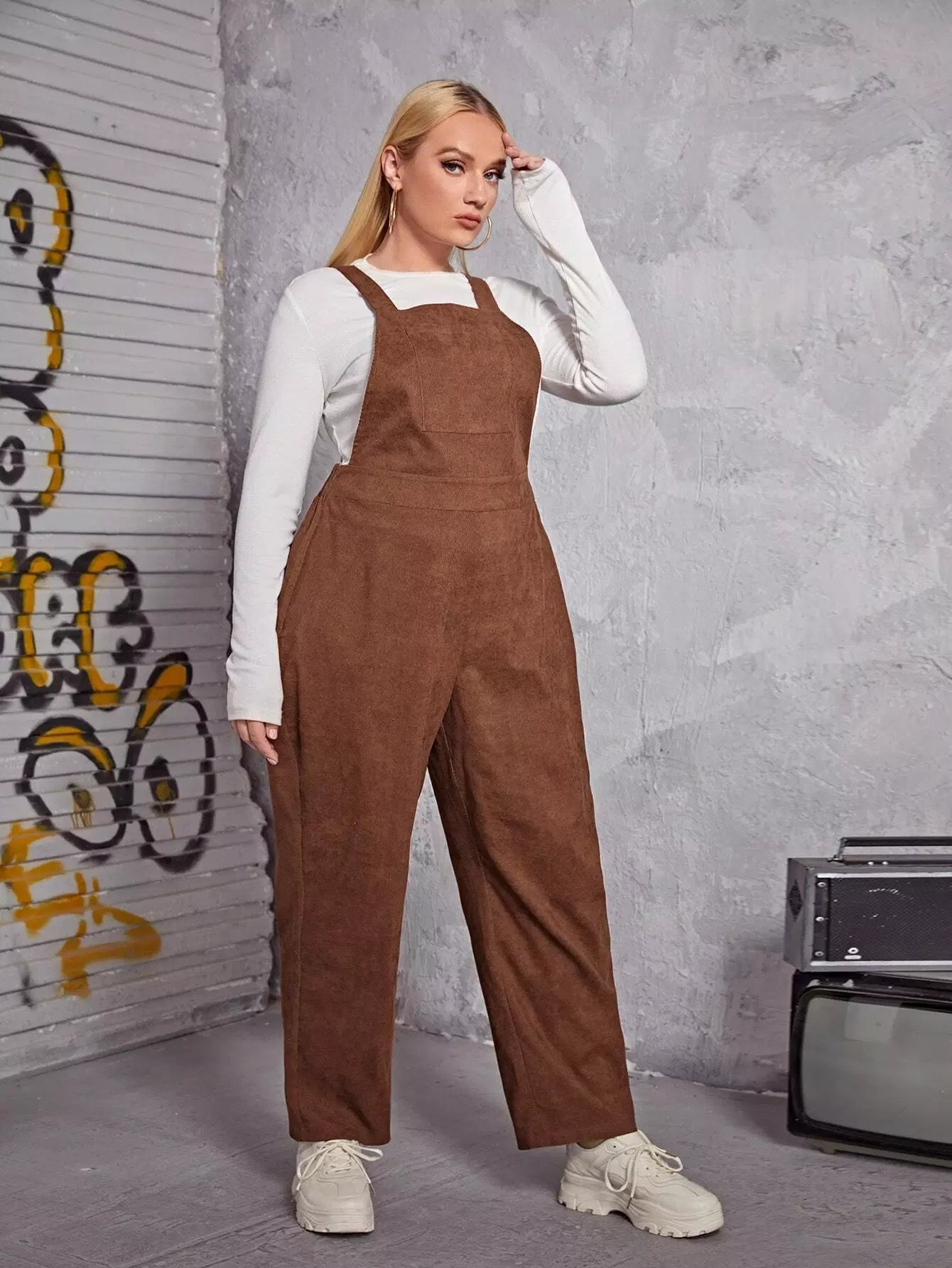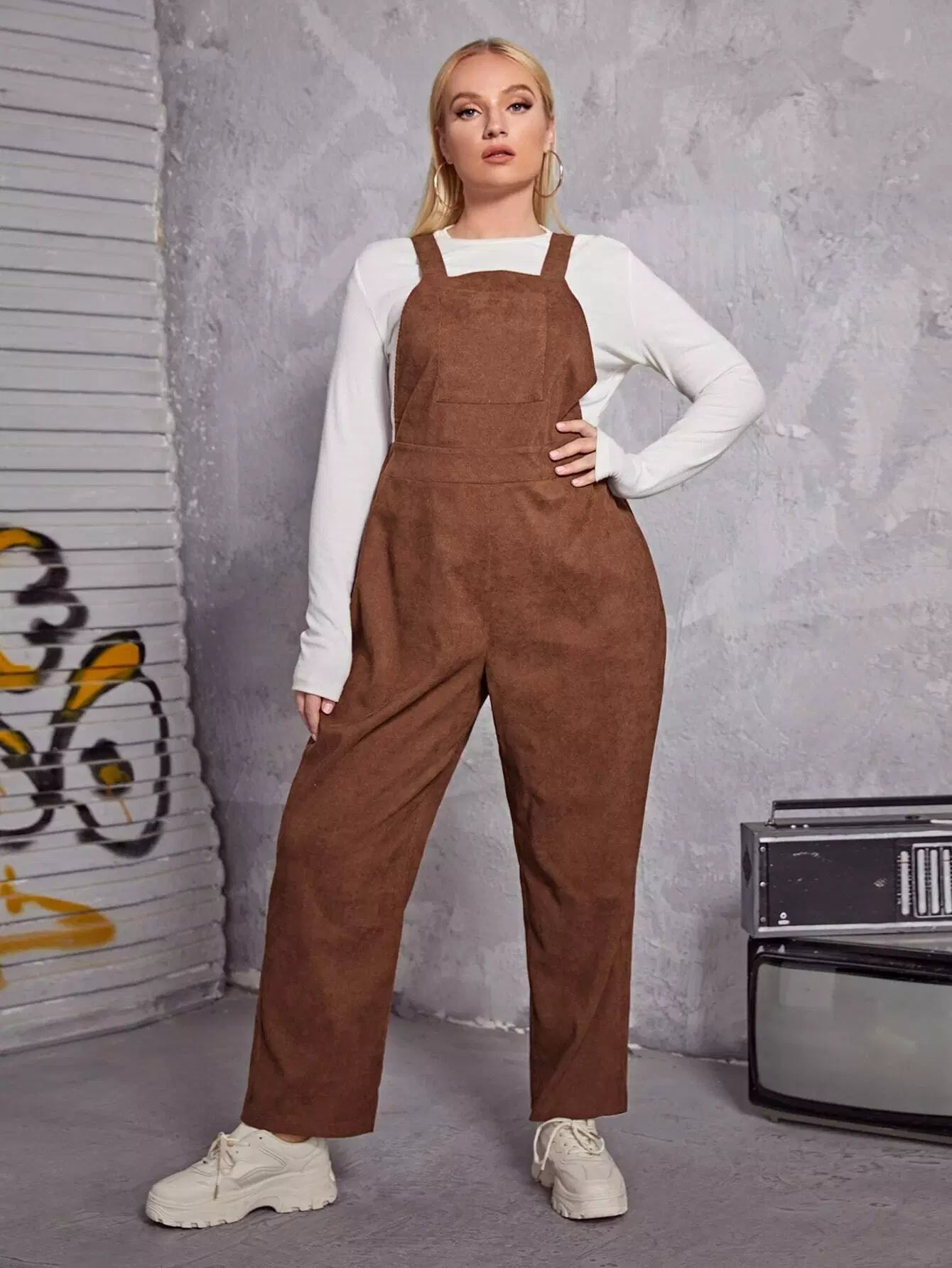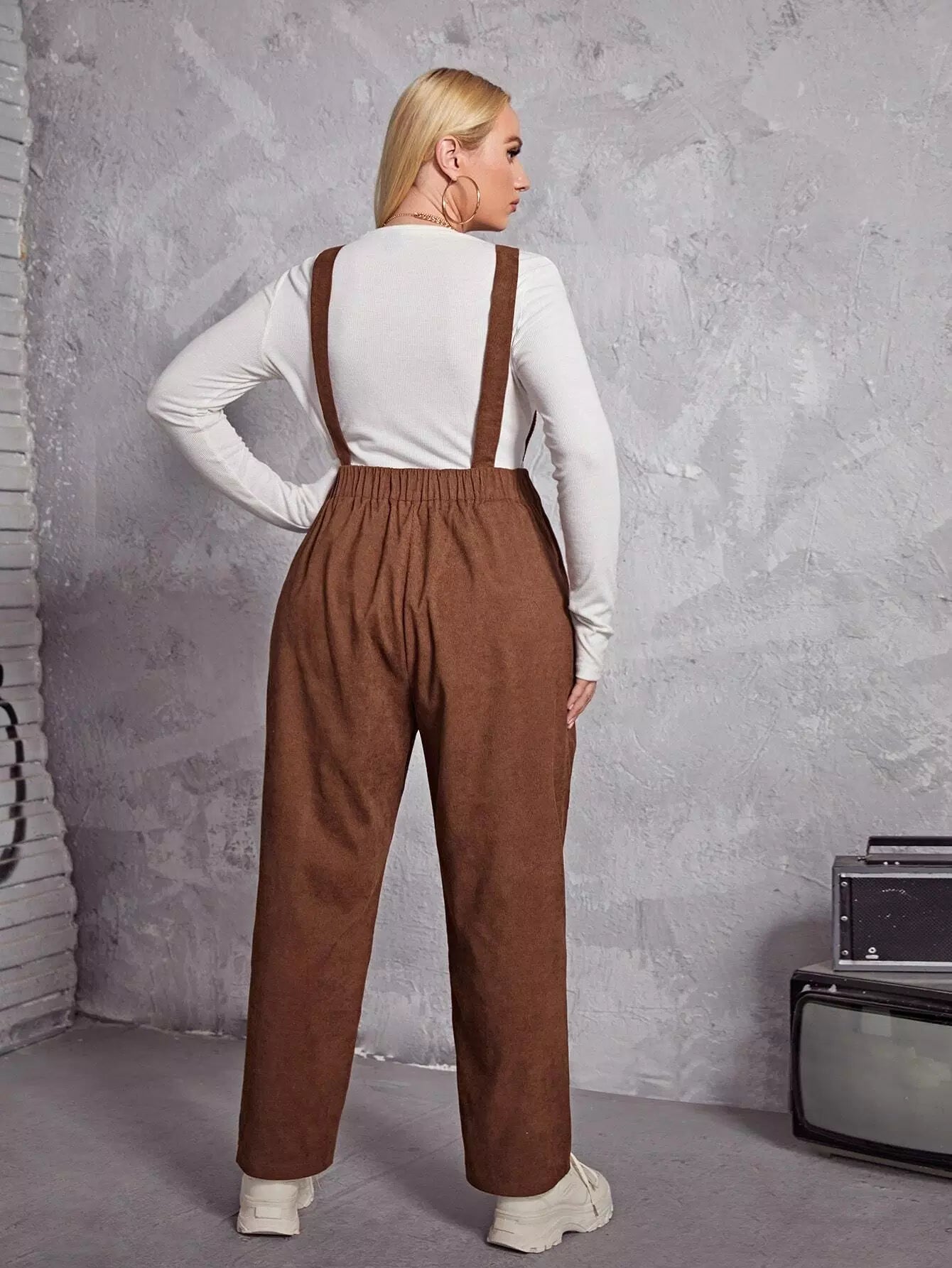 Plus Patched Pocket Corduroy Overalls Without Tee