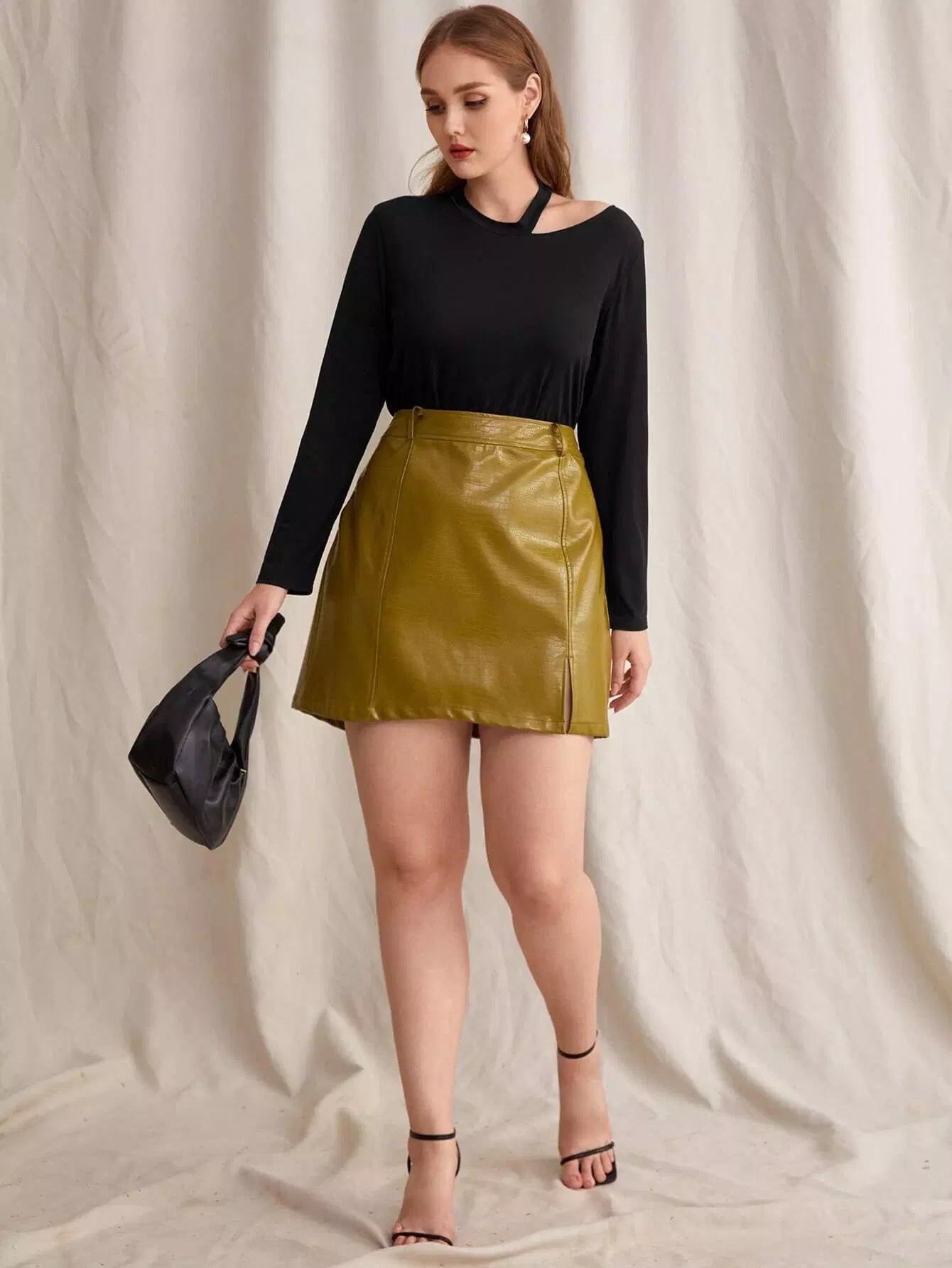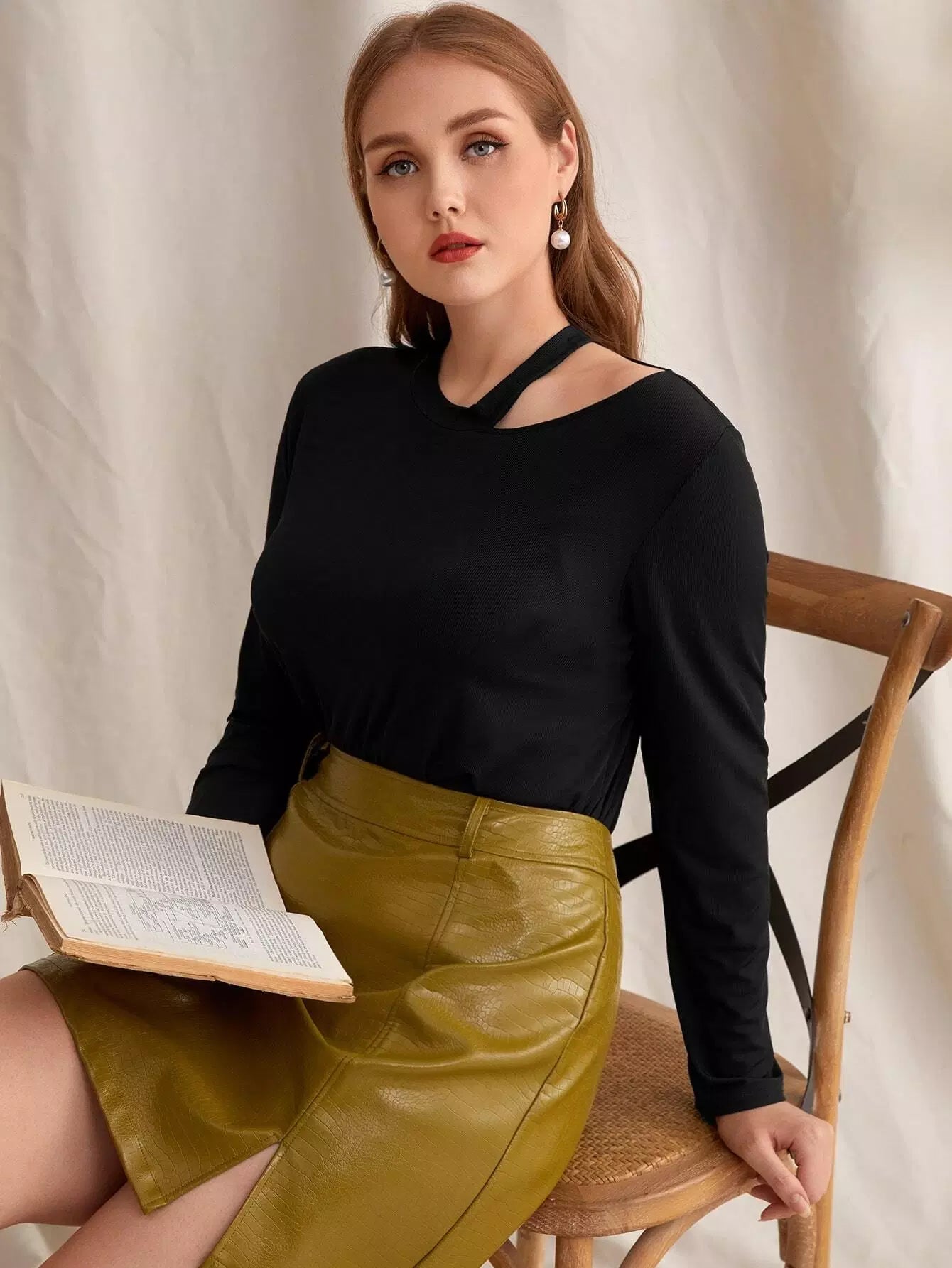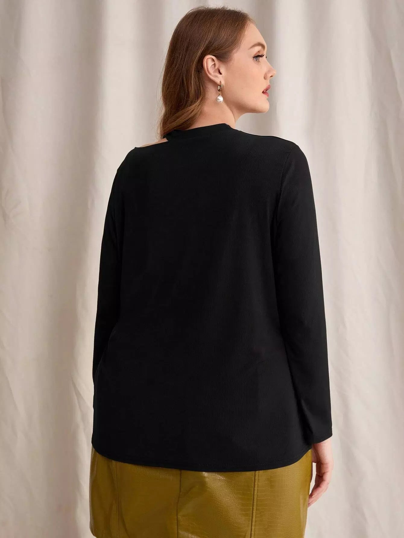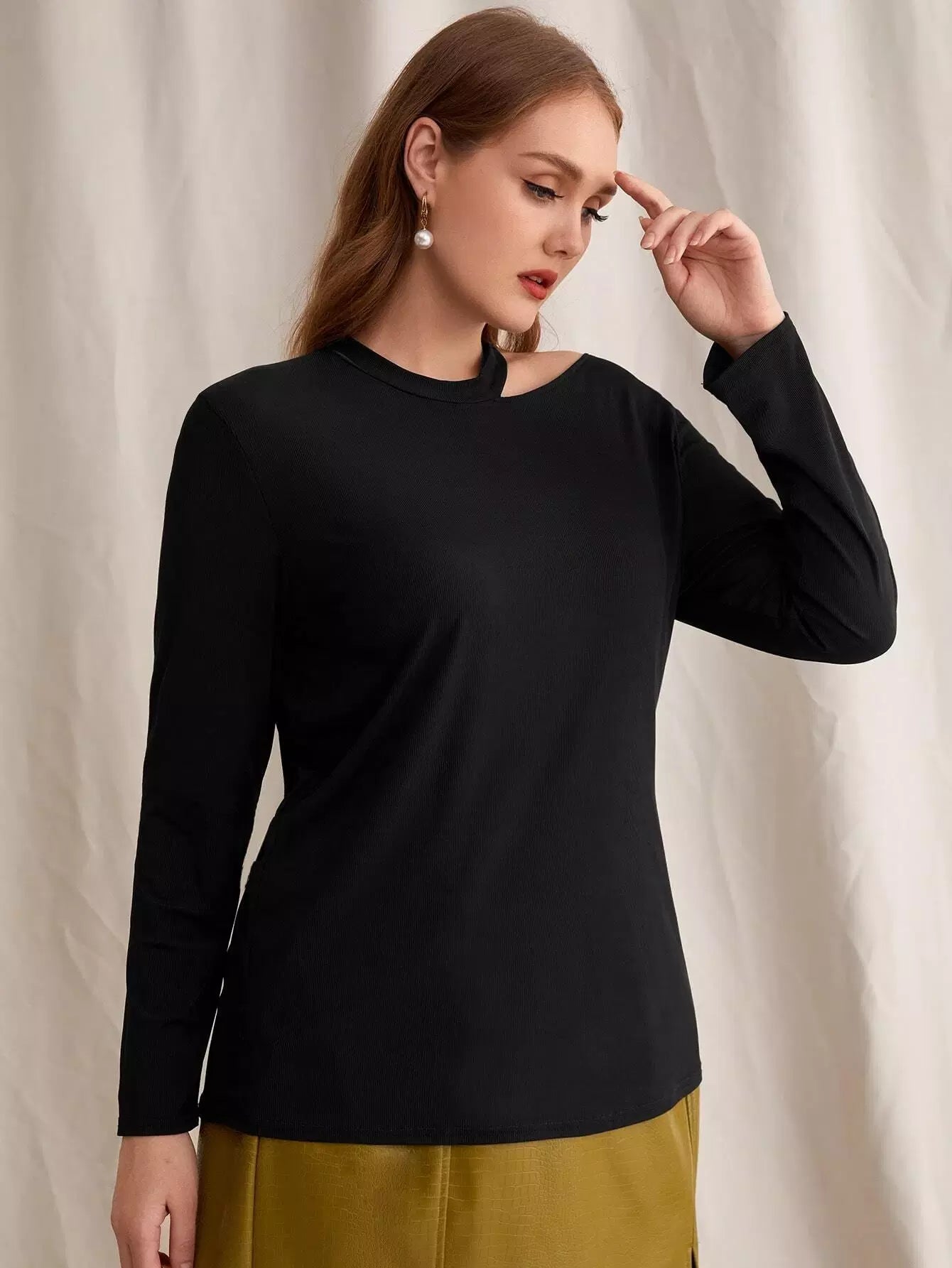 Plus Solid Asymmetrical Neck Tee