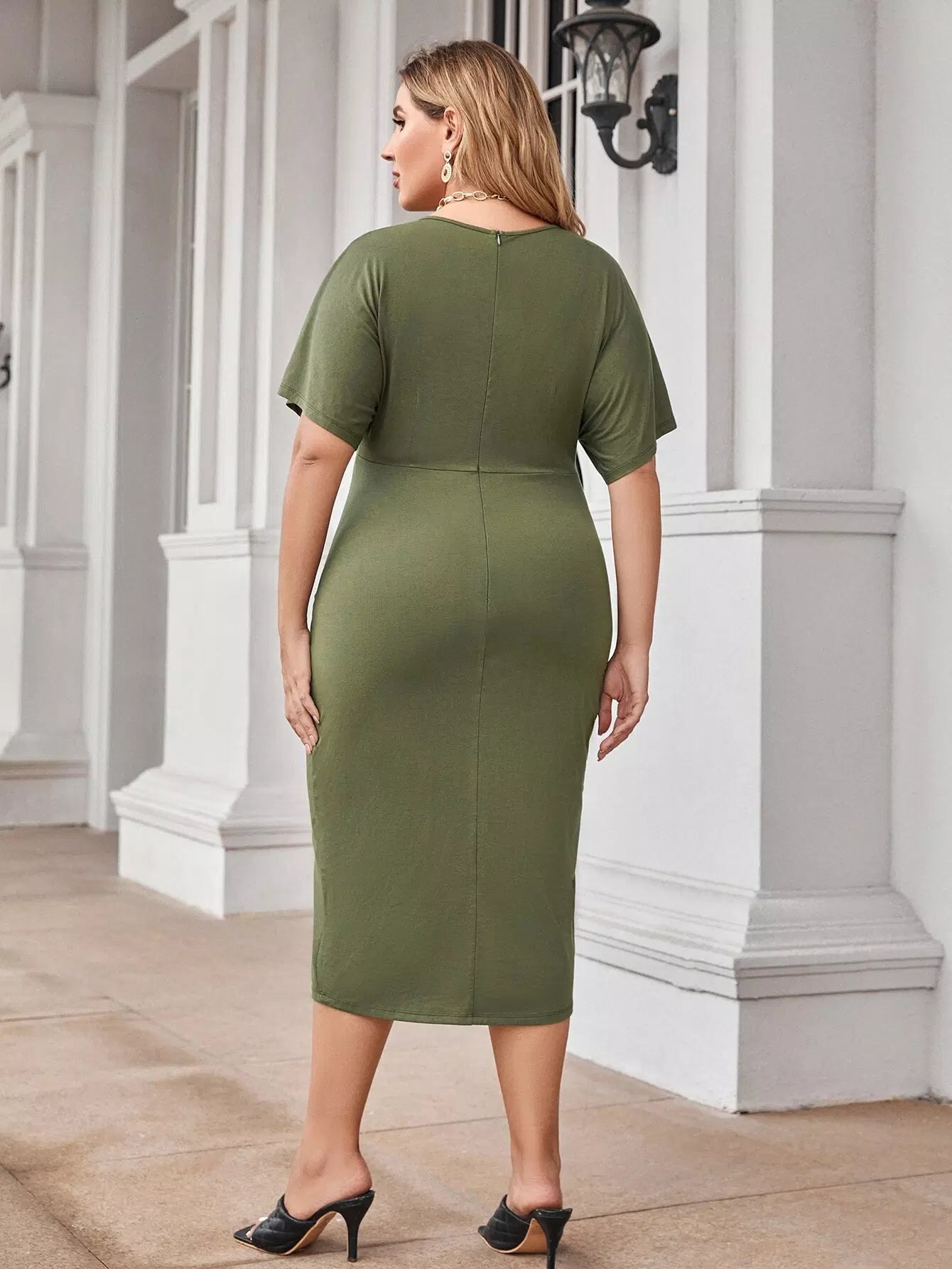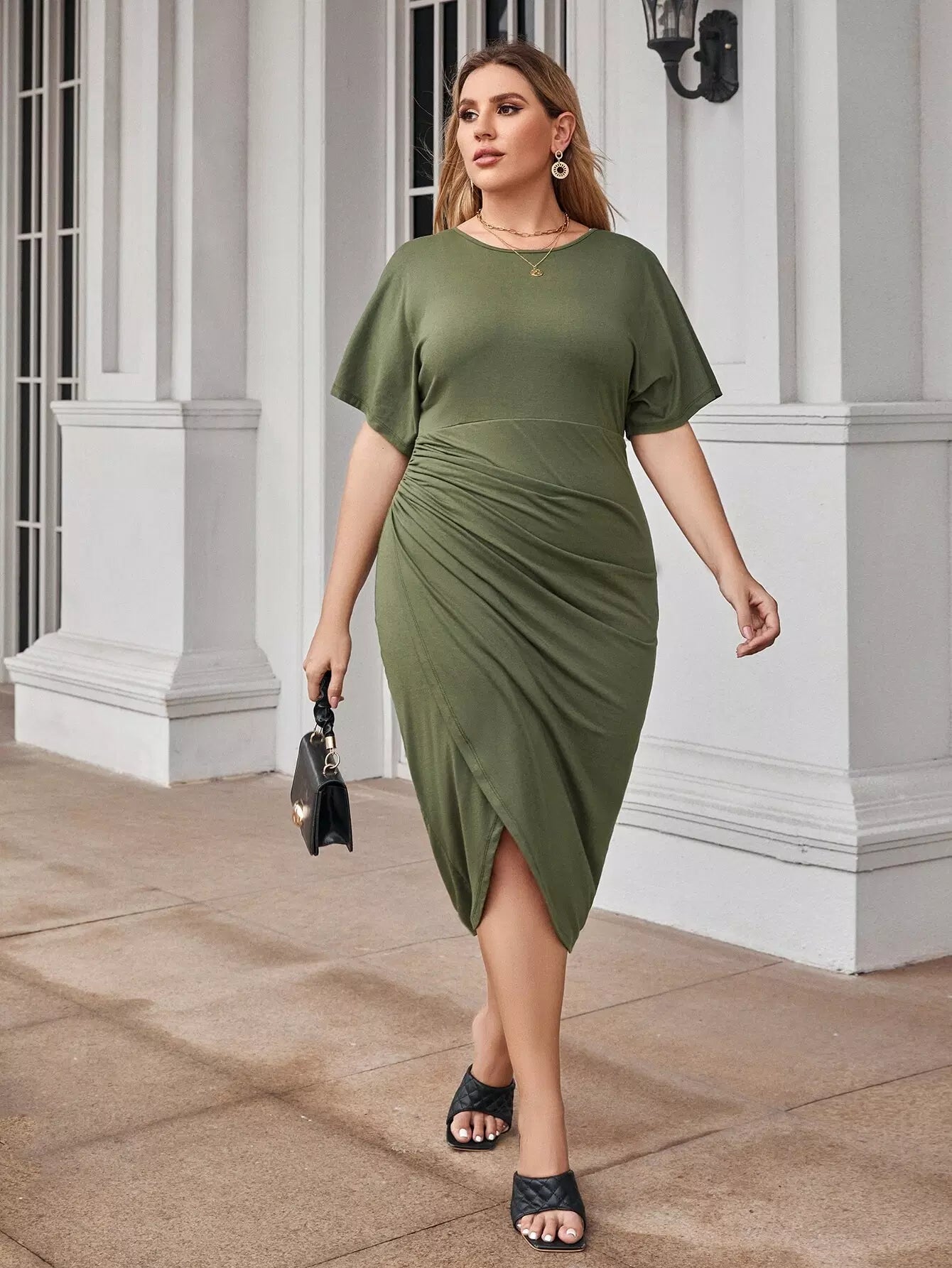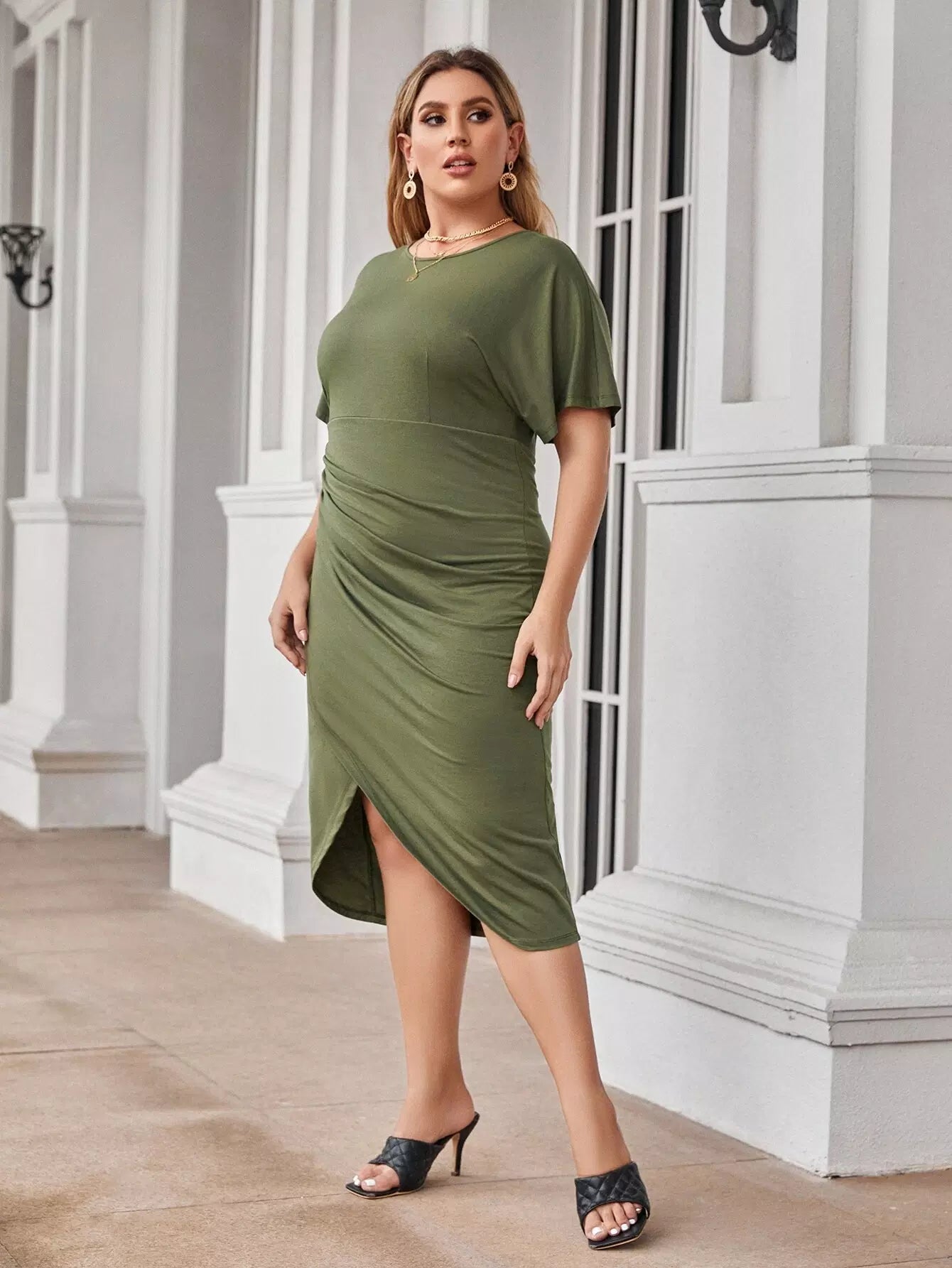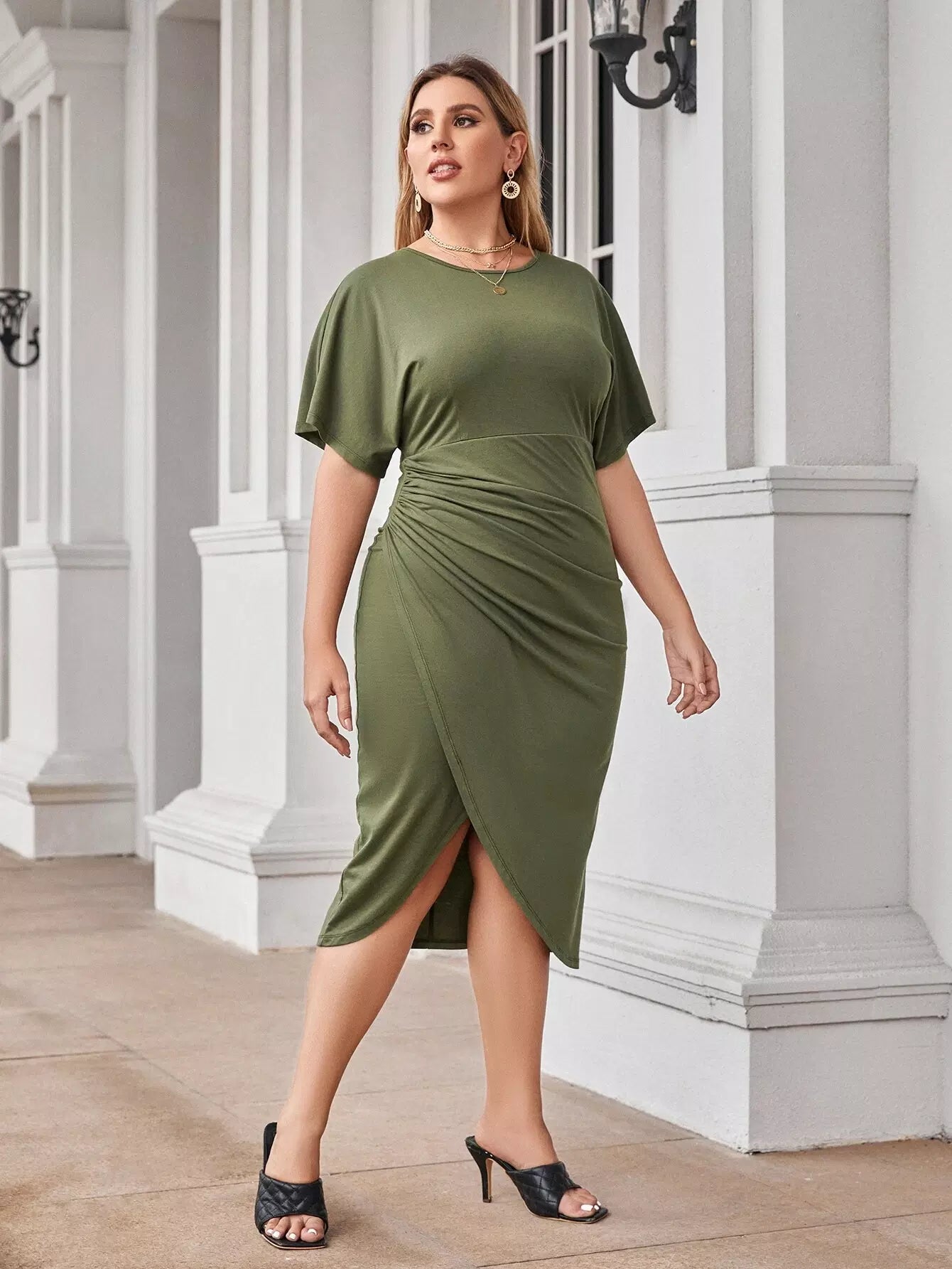 Plus Solid Ruched Wrap Dress