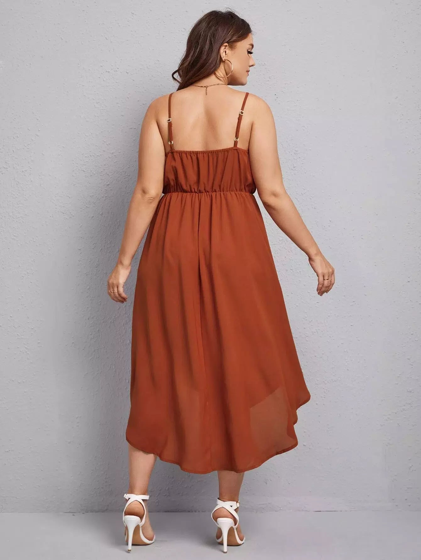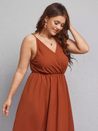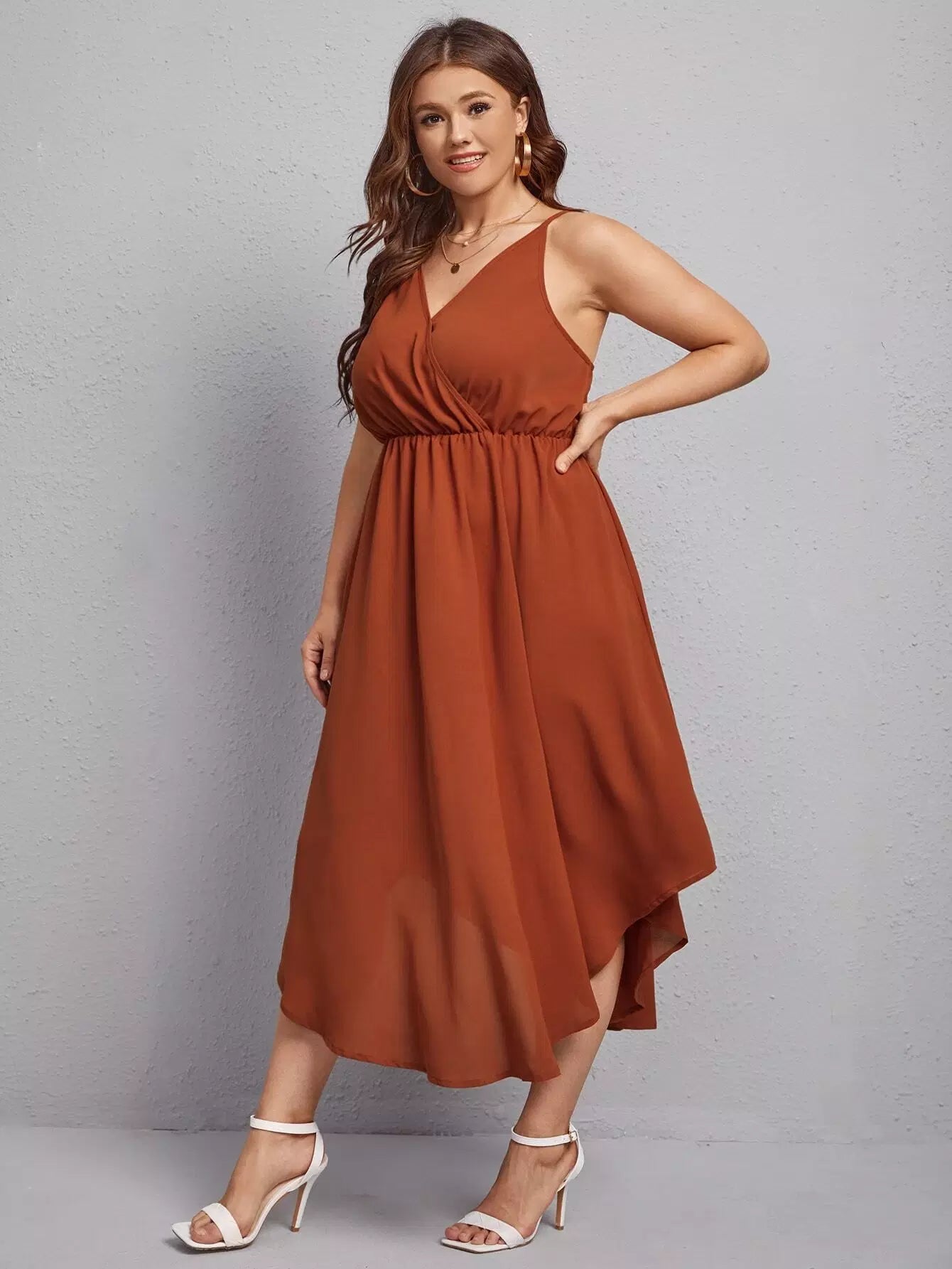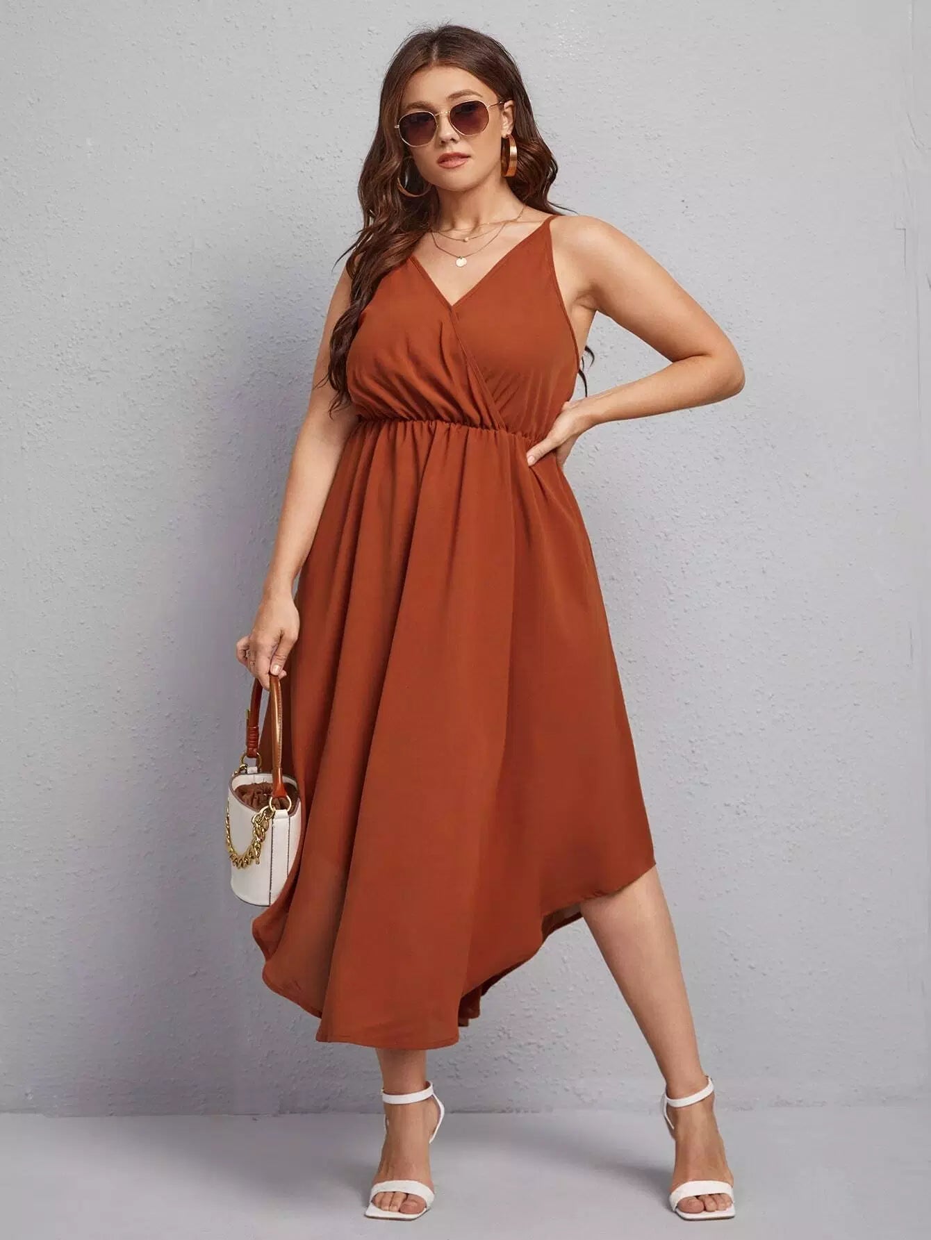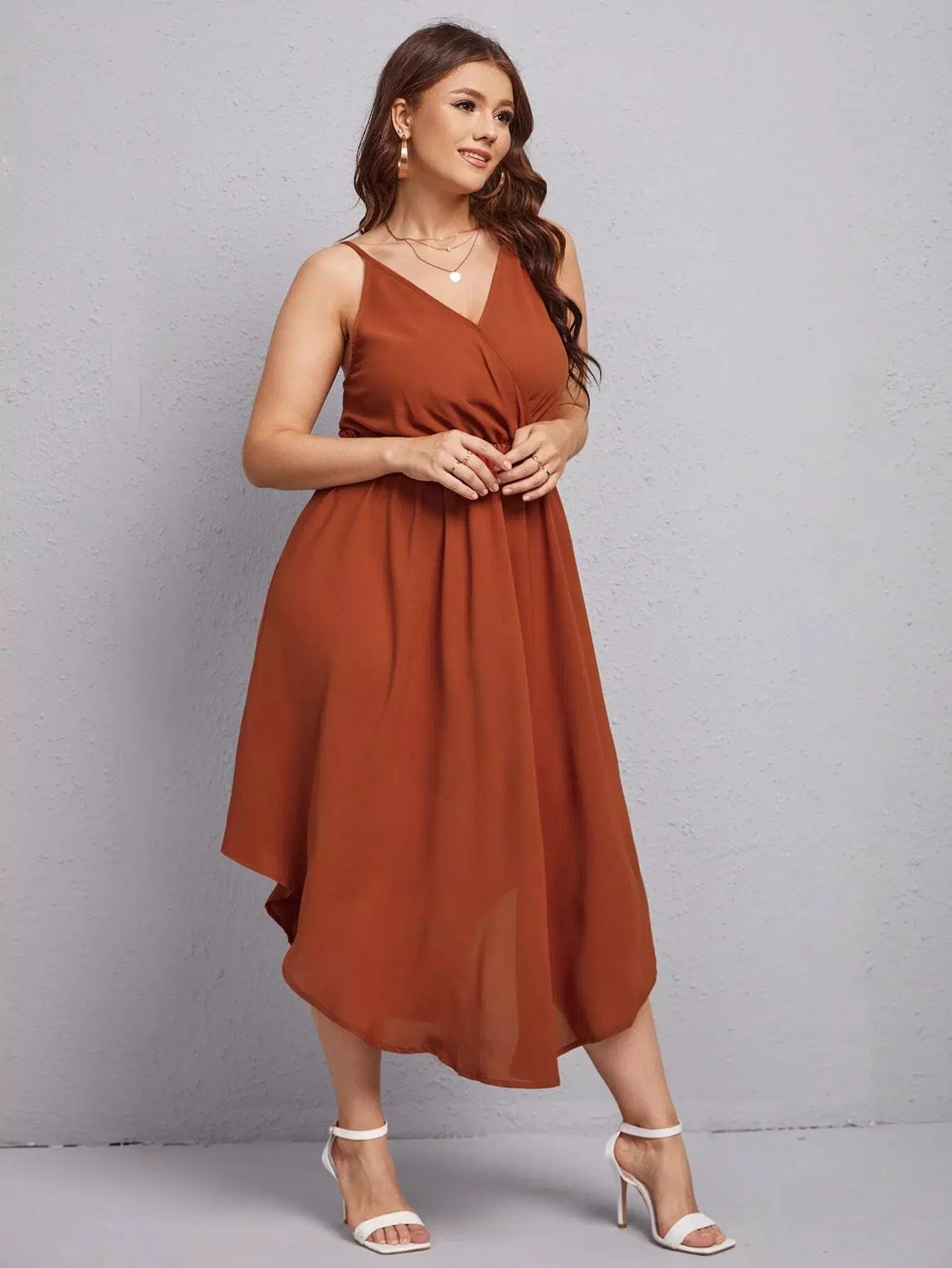 Plus Solid Surplice Front Asymmetrical Hem Dress