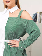 Plus Striped Colorblock Asymmetrical Neck Shirt Without Belt
