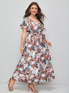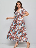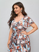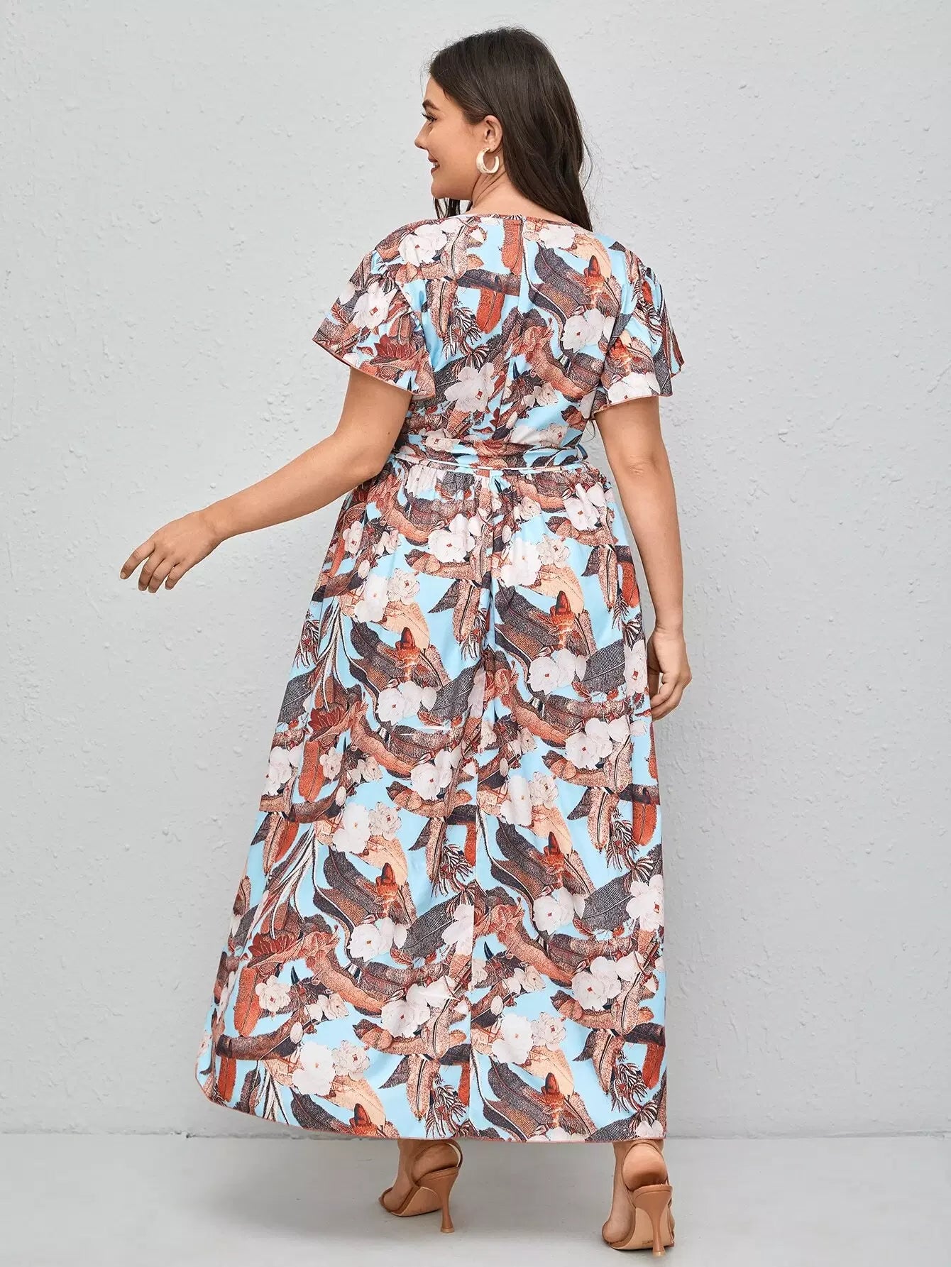 Plus Tropical Print Butterfly Sleeve Dress Without Belt