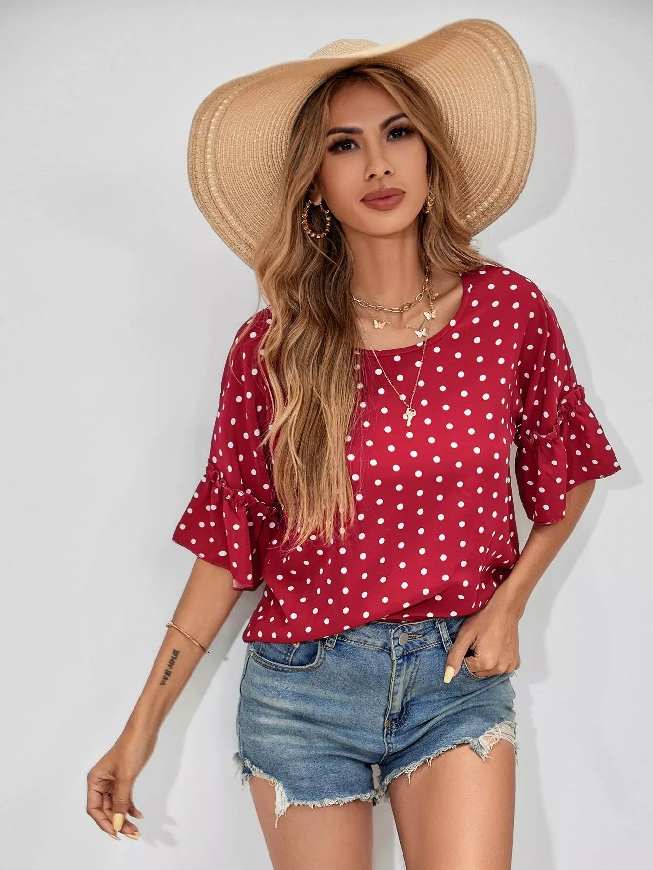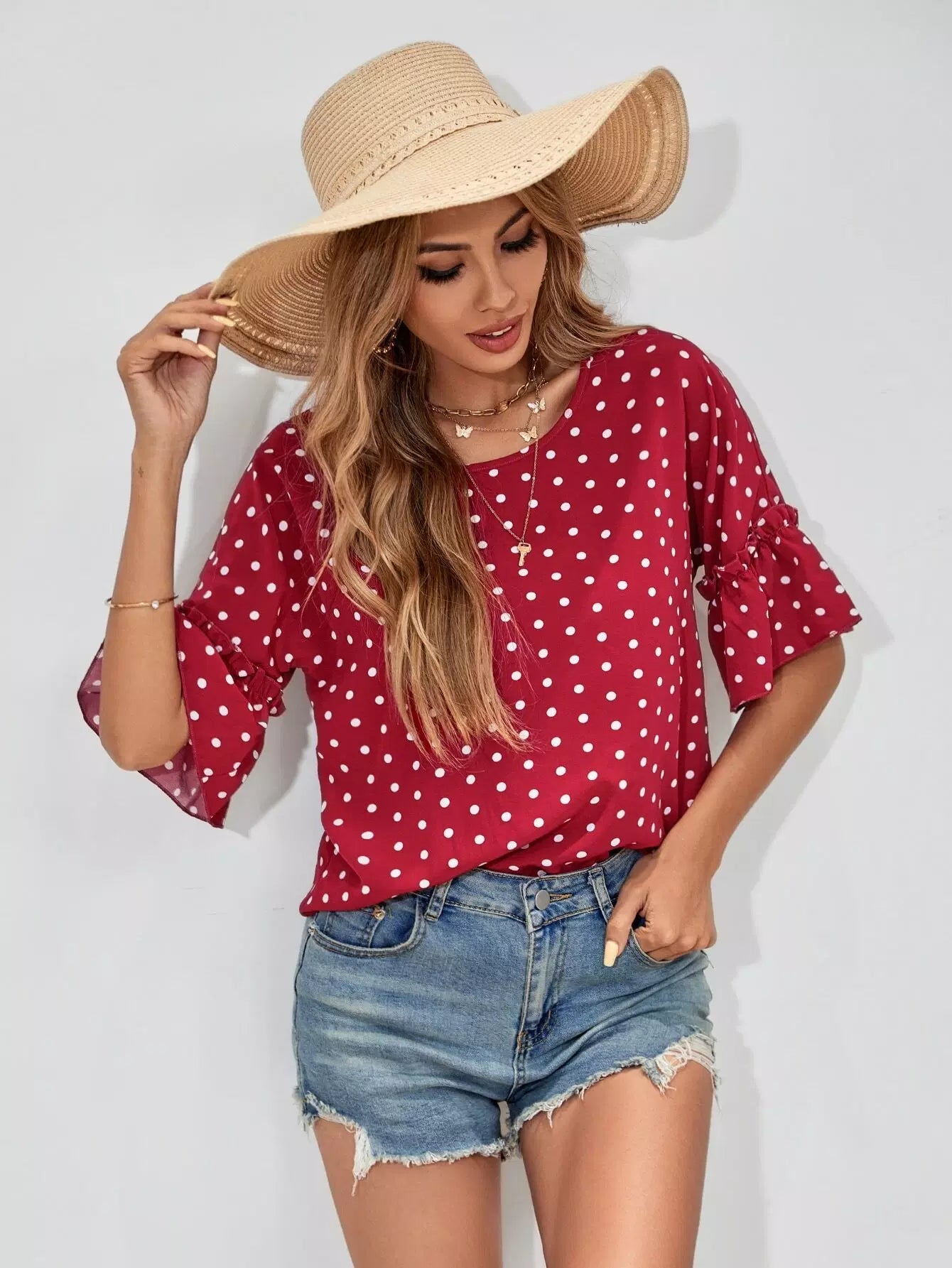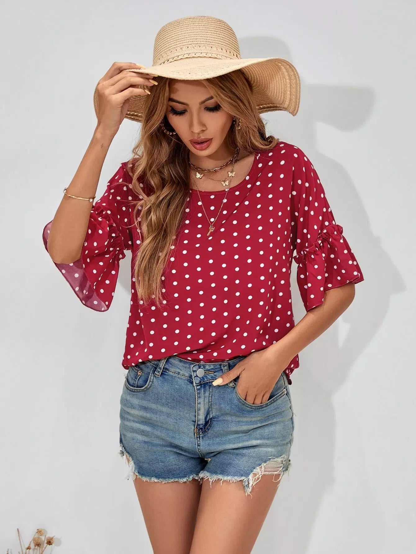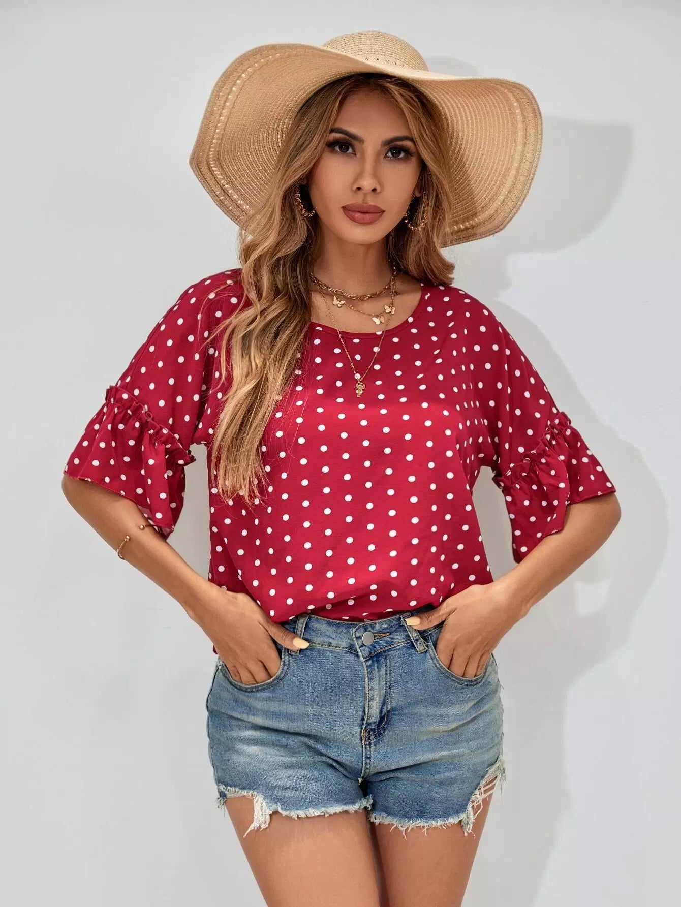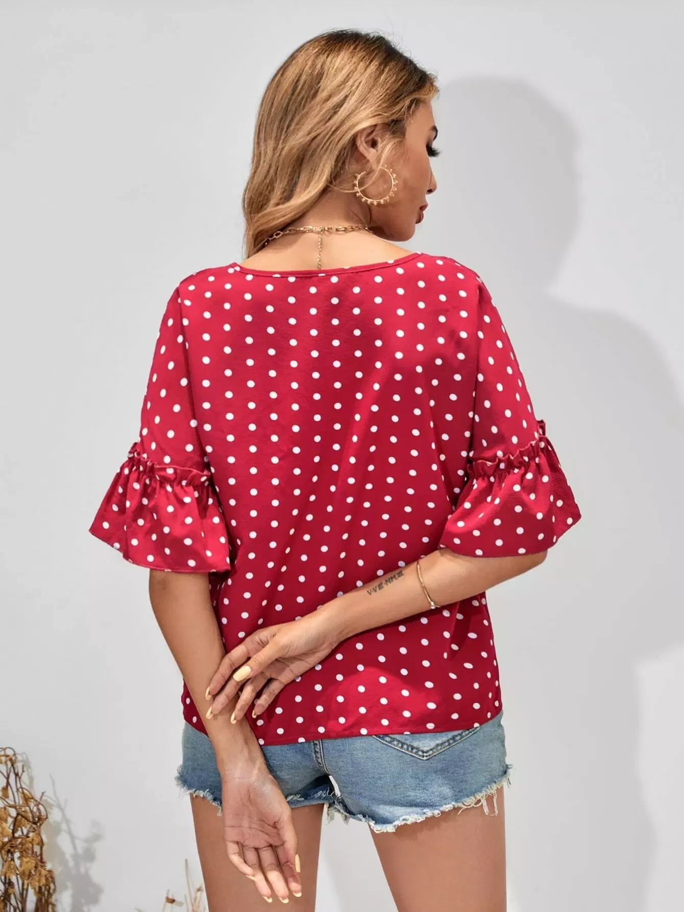 Polka Dot Frill Trim Blouse
