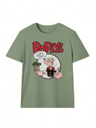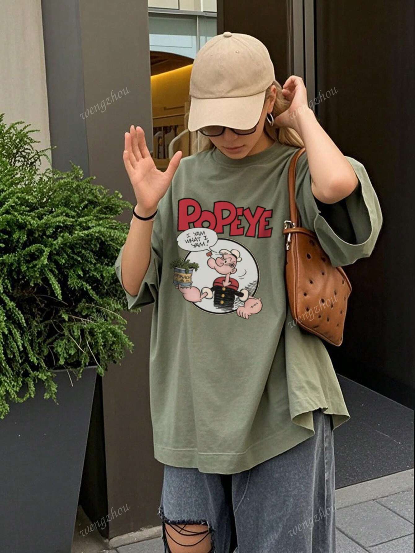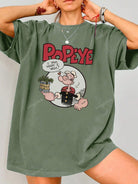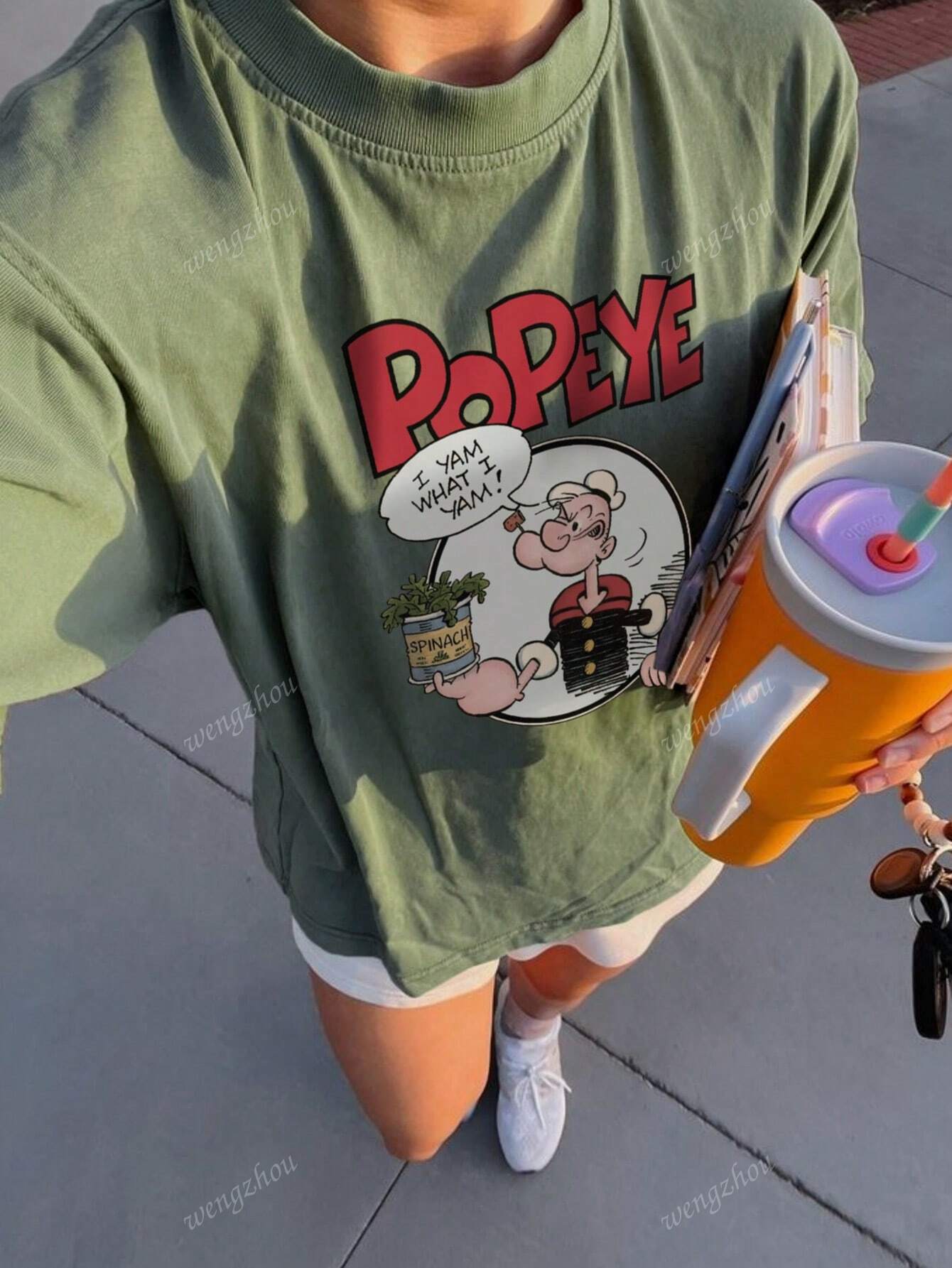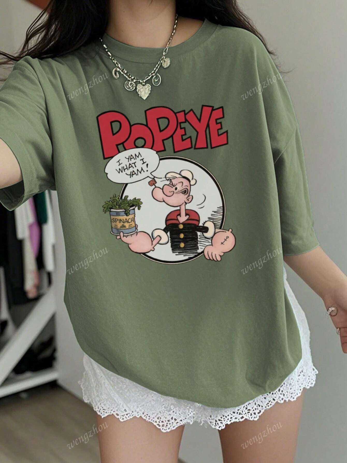 Popeye Women's Summer New Colorful Letter & Popeye Cartoon Character Print Round Neck Short Sleeve Casual