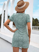 Puff Sleeve Split Hem Ditsy Floral Dress