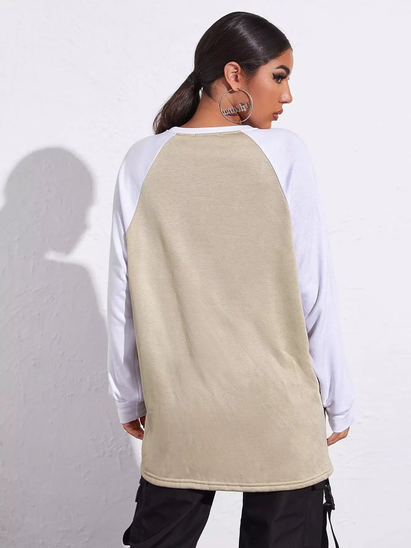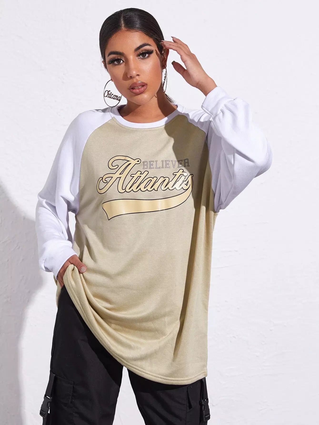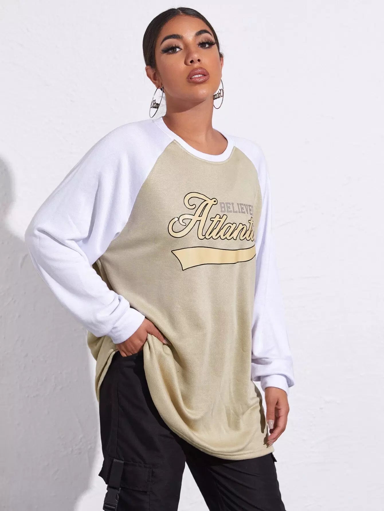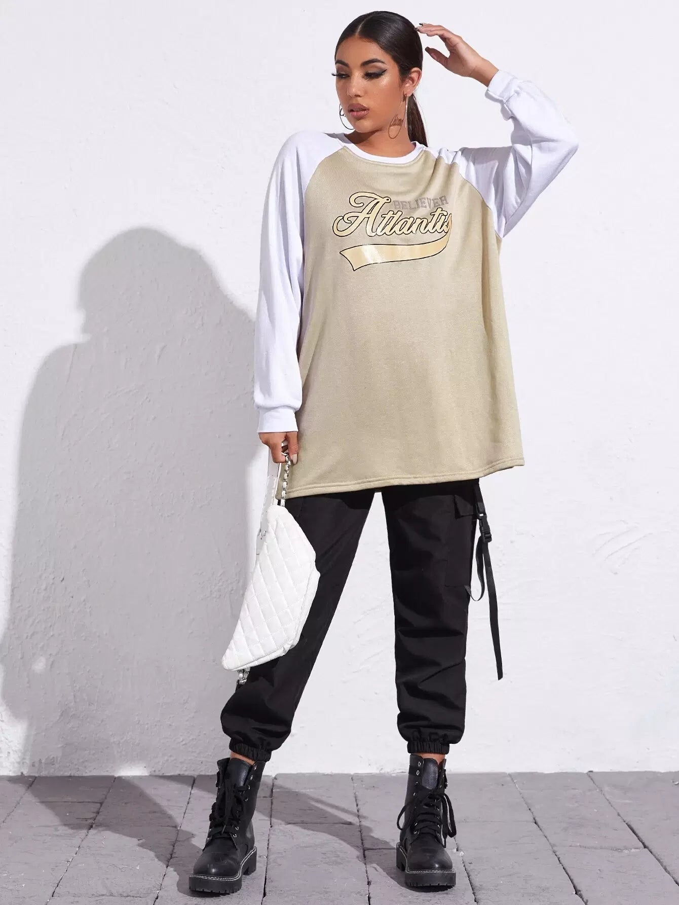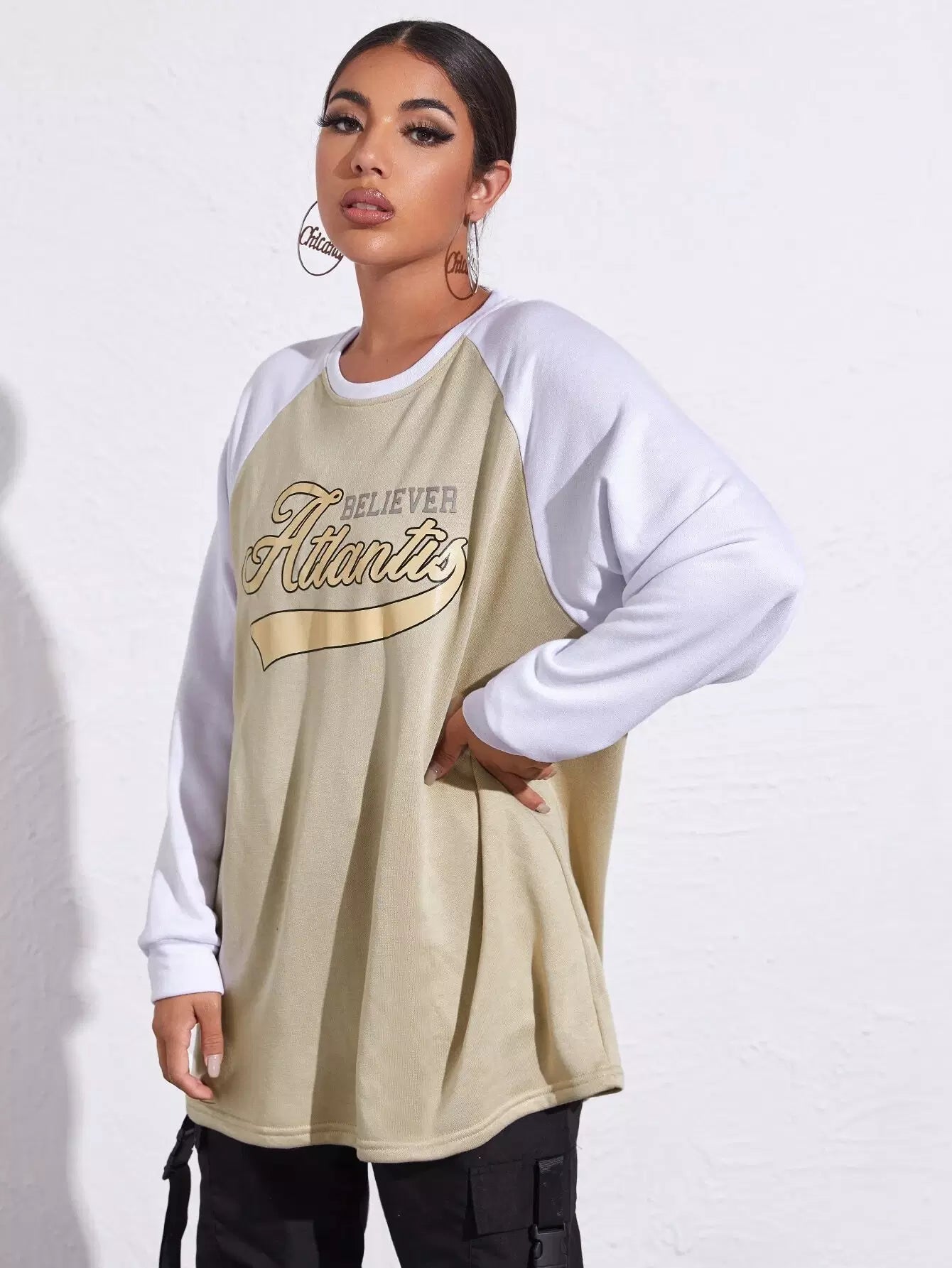 Raglan Sleeve Color Block Letter Graphic Pullover