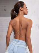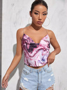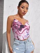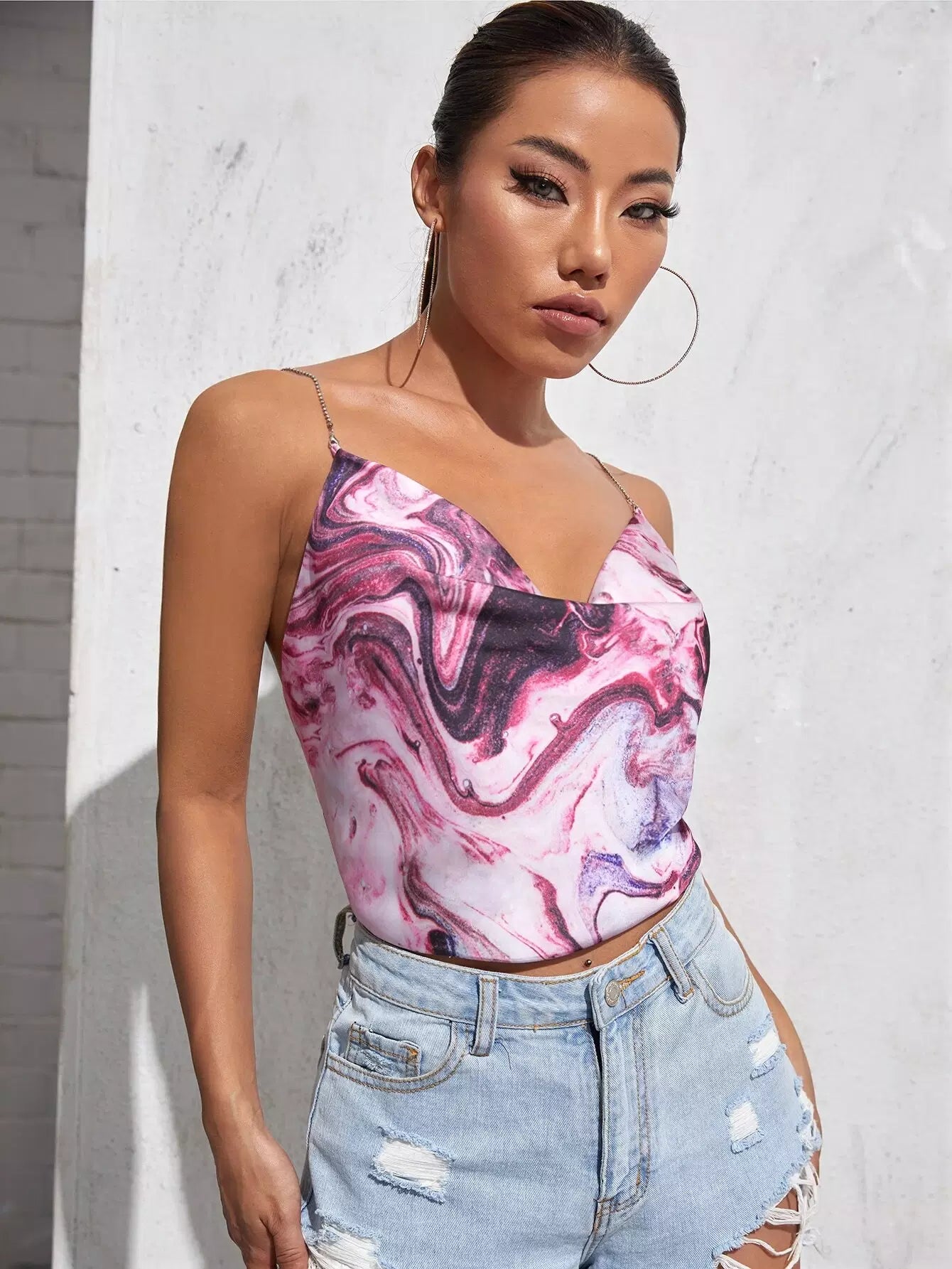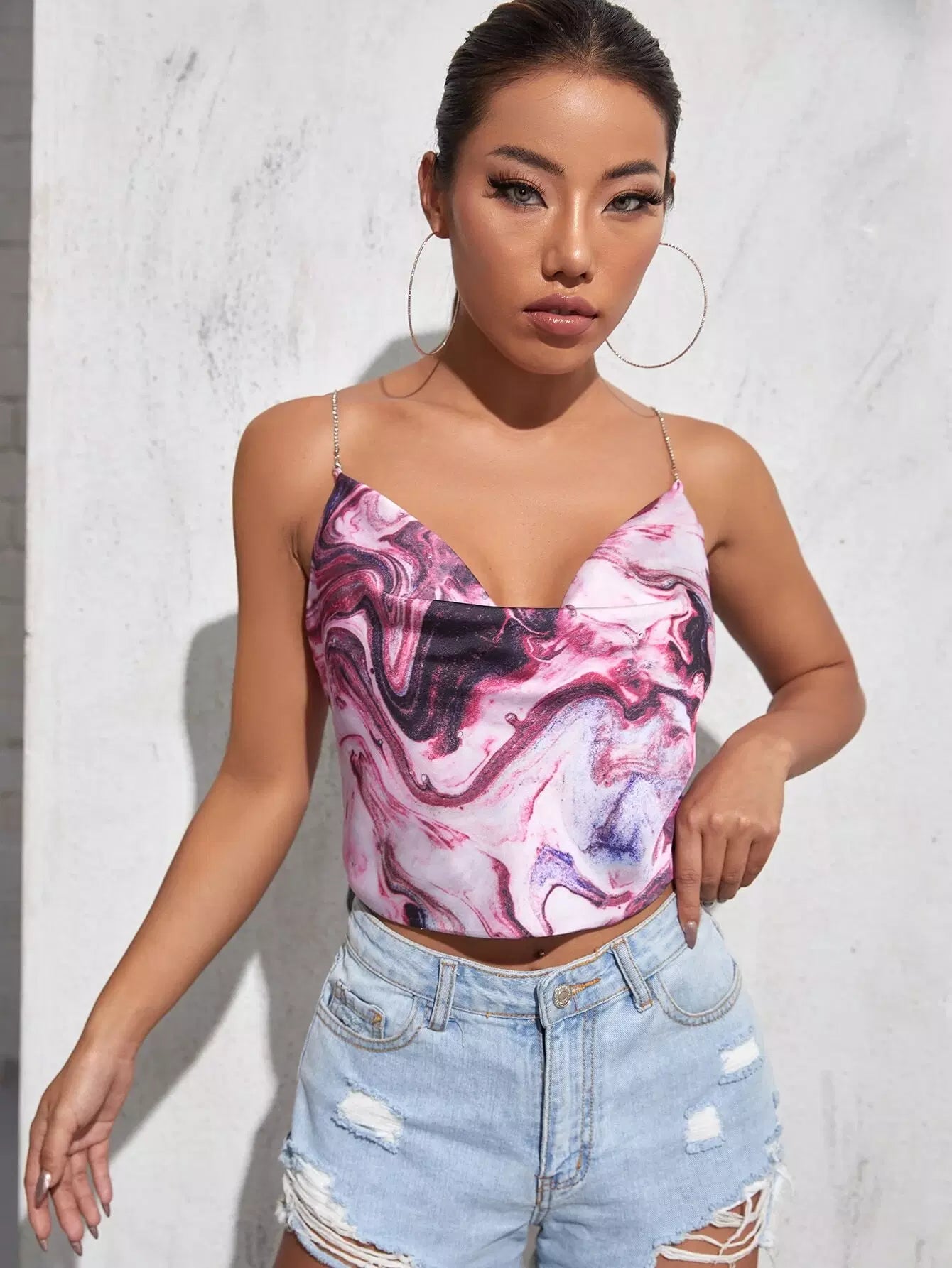 Rhinestone Crisscross Backless Draped Front Marble Print Cami Top