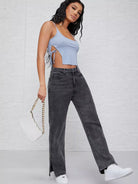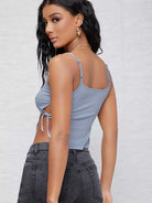 Ribbed Self-Tie Cutout Cropped Cami Top