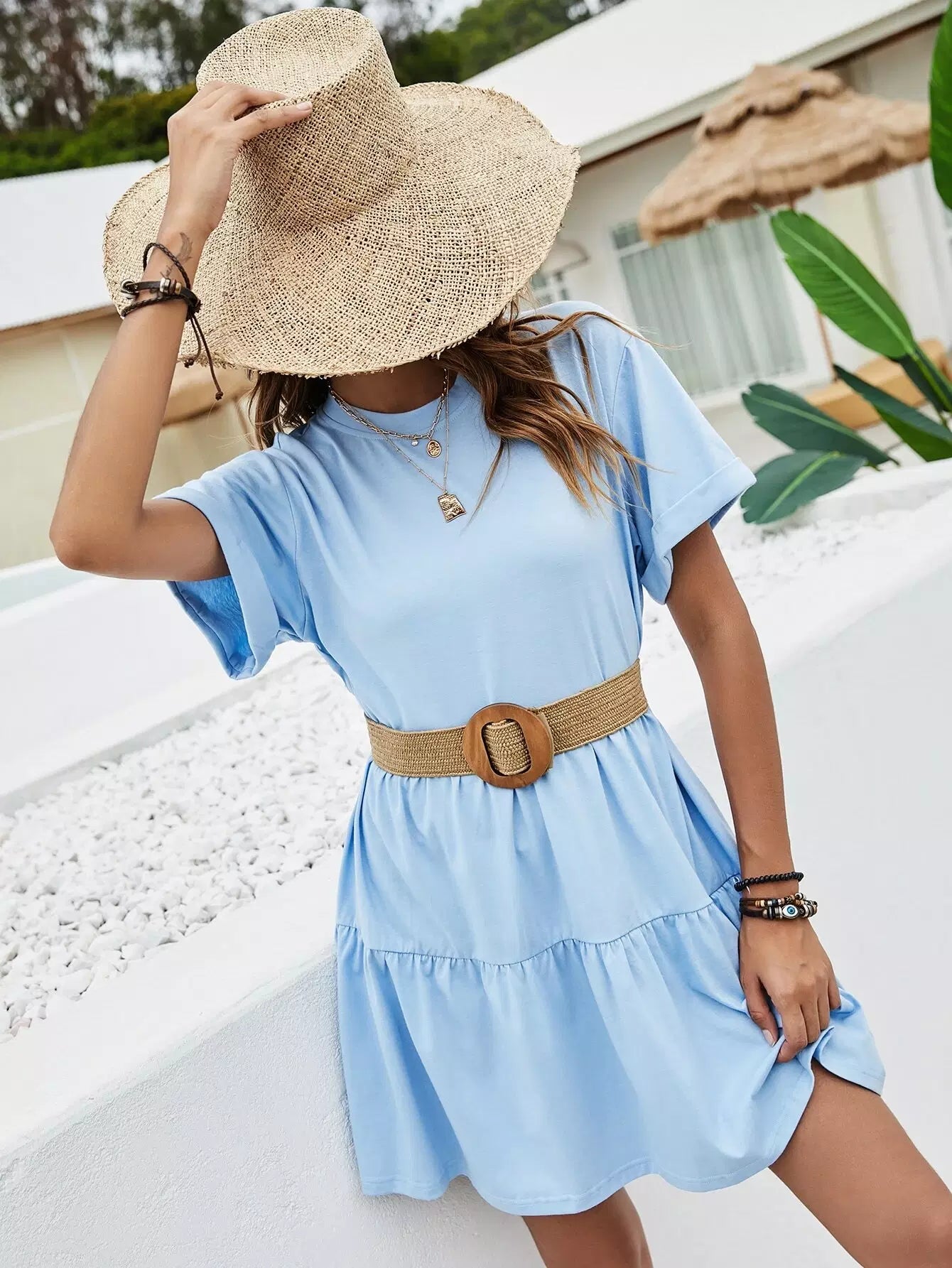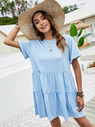 Rolled Cuff Ruffle Hem Babydoll Dress Without Belt