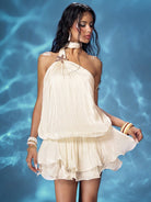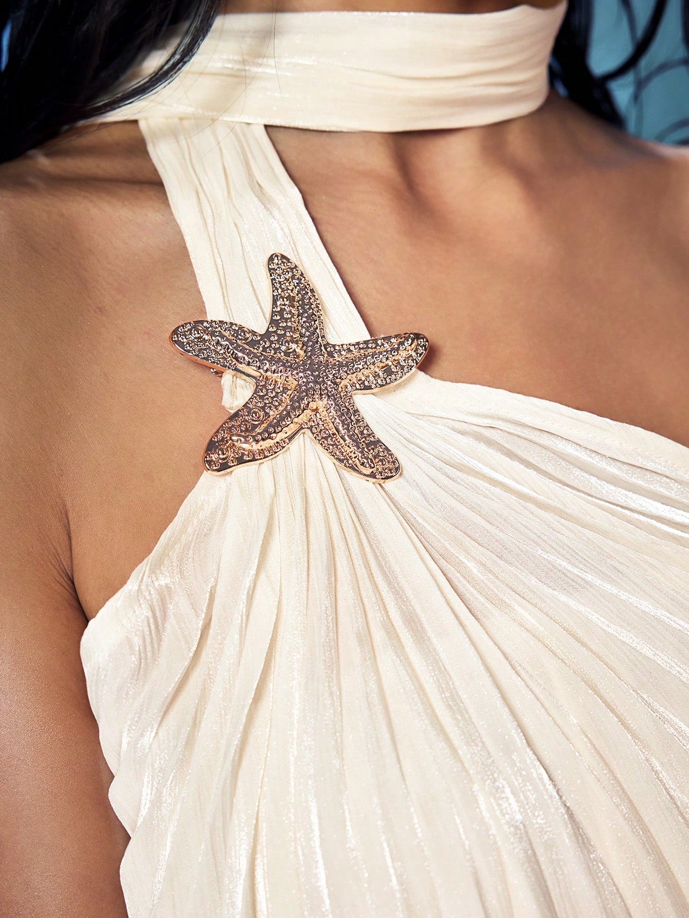 ROMWE Fairycore Women's Sleeveless Halter Neck Ruffle Hem Starfish Decor Dress
