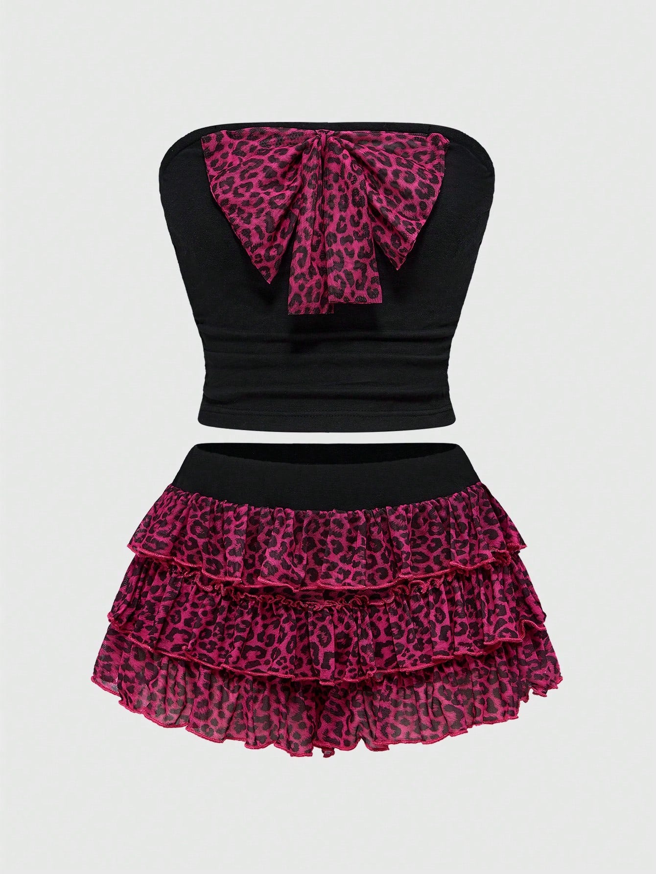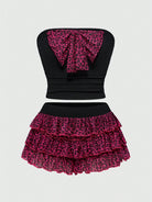 ROMWE Kawaii Women's Shibuya Sexy Leopard Print 3D Bow Knit 2 Pieces Set
