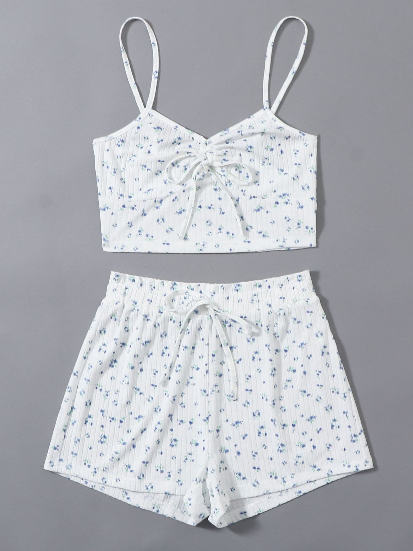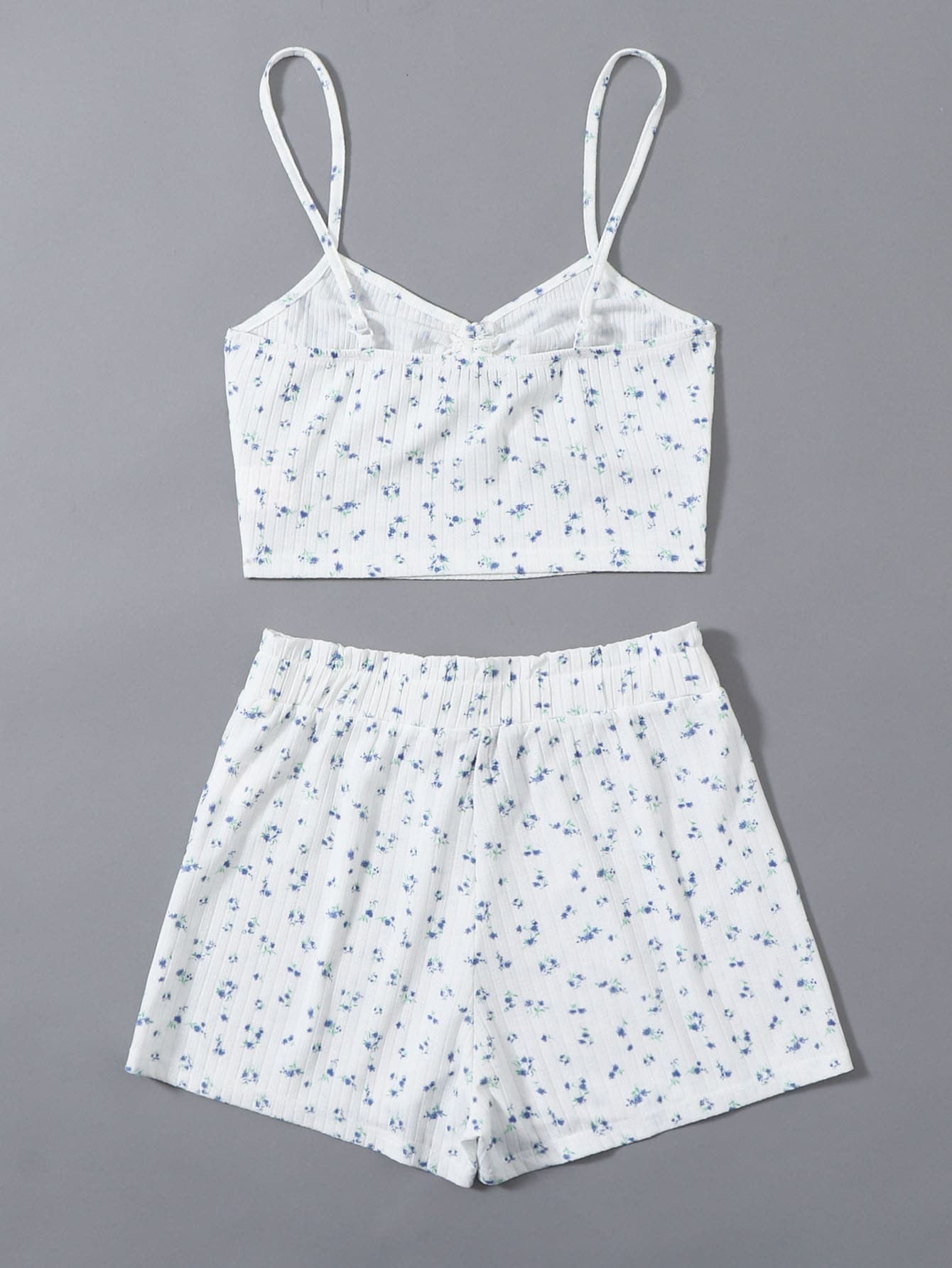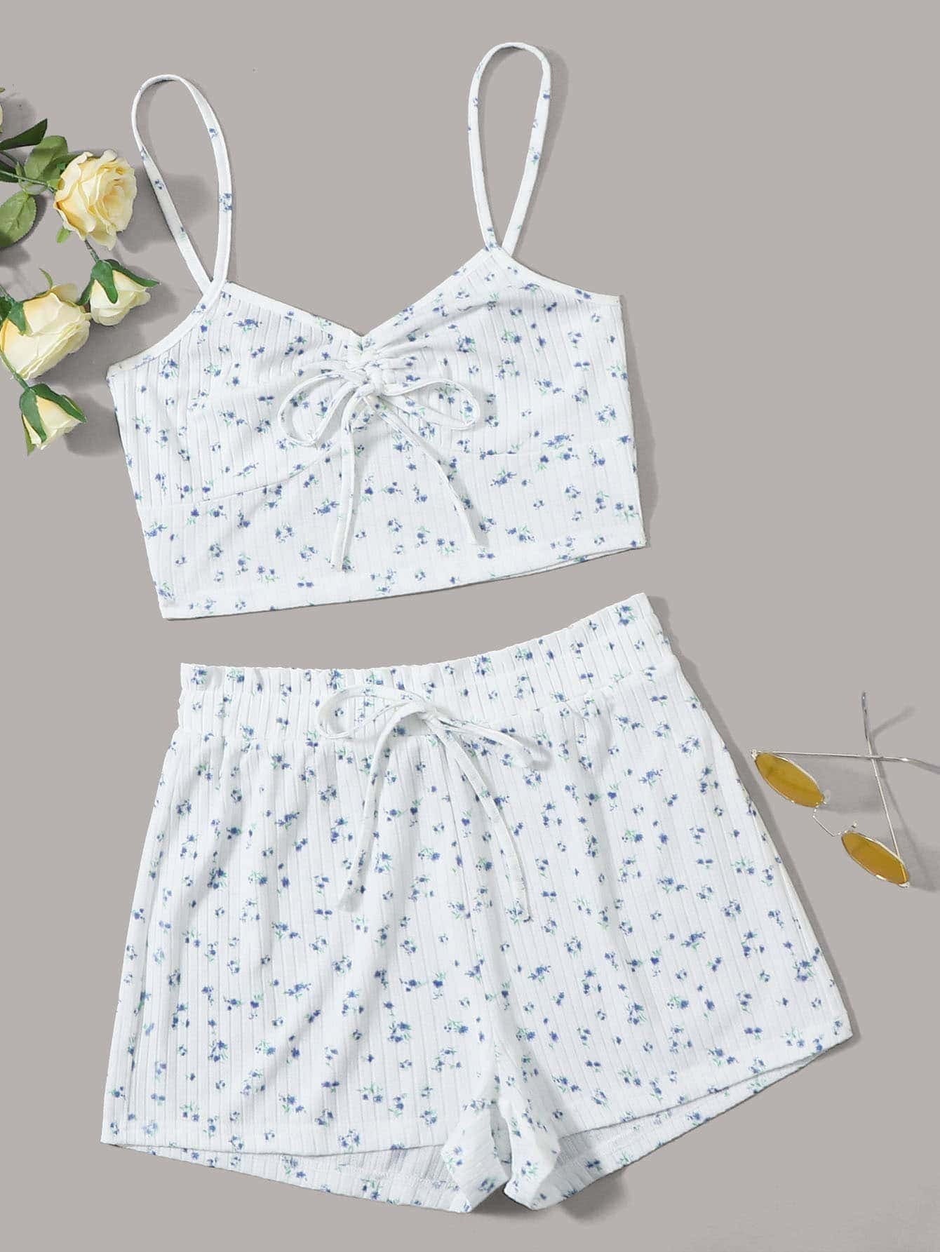 Ruched Knot Front Ditsy Floral Cami Top & Shorts PJ Set
