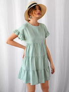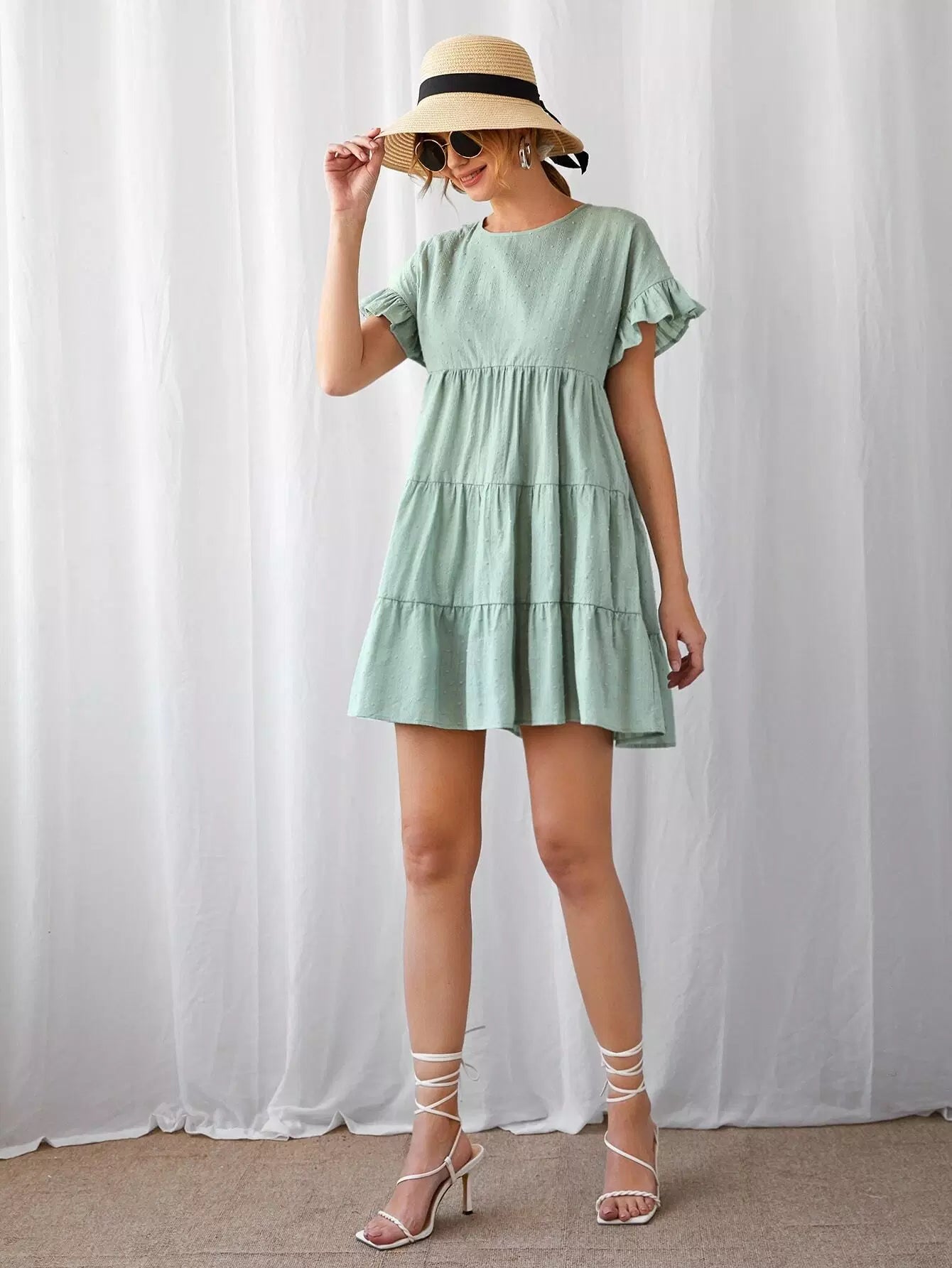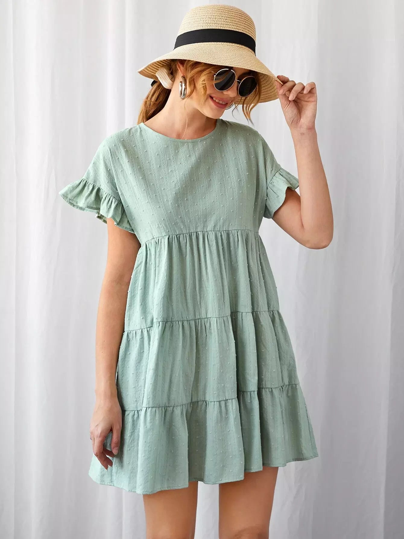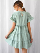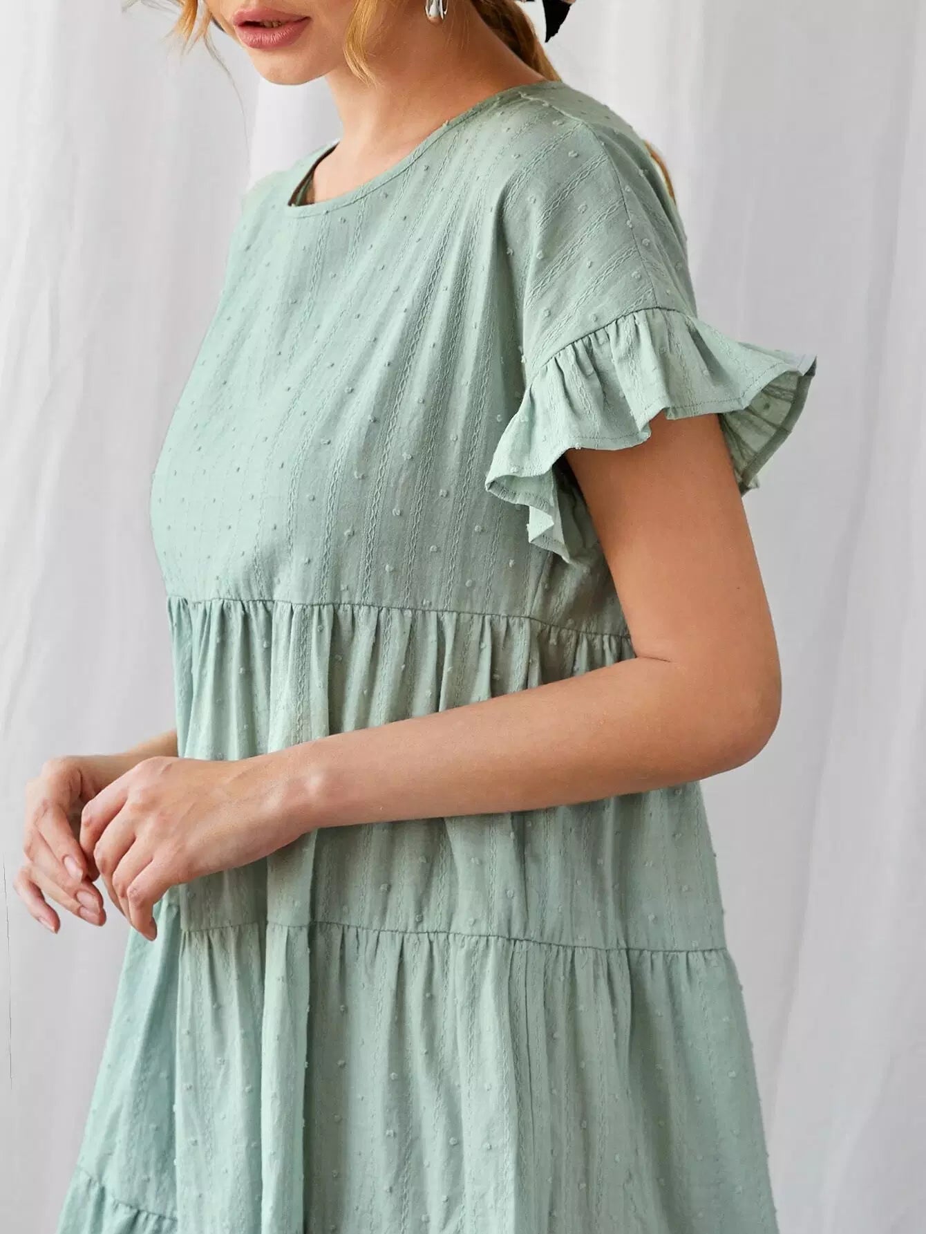 Ruffle Cuff Tiered Hem Swiss Dot Dress