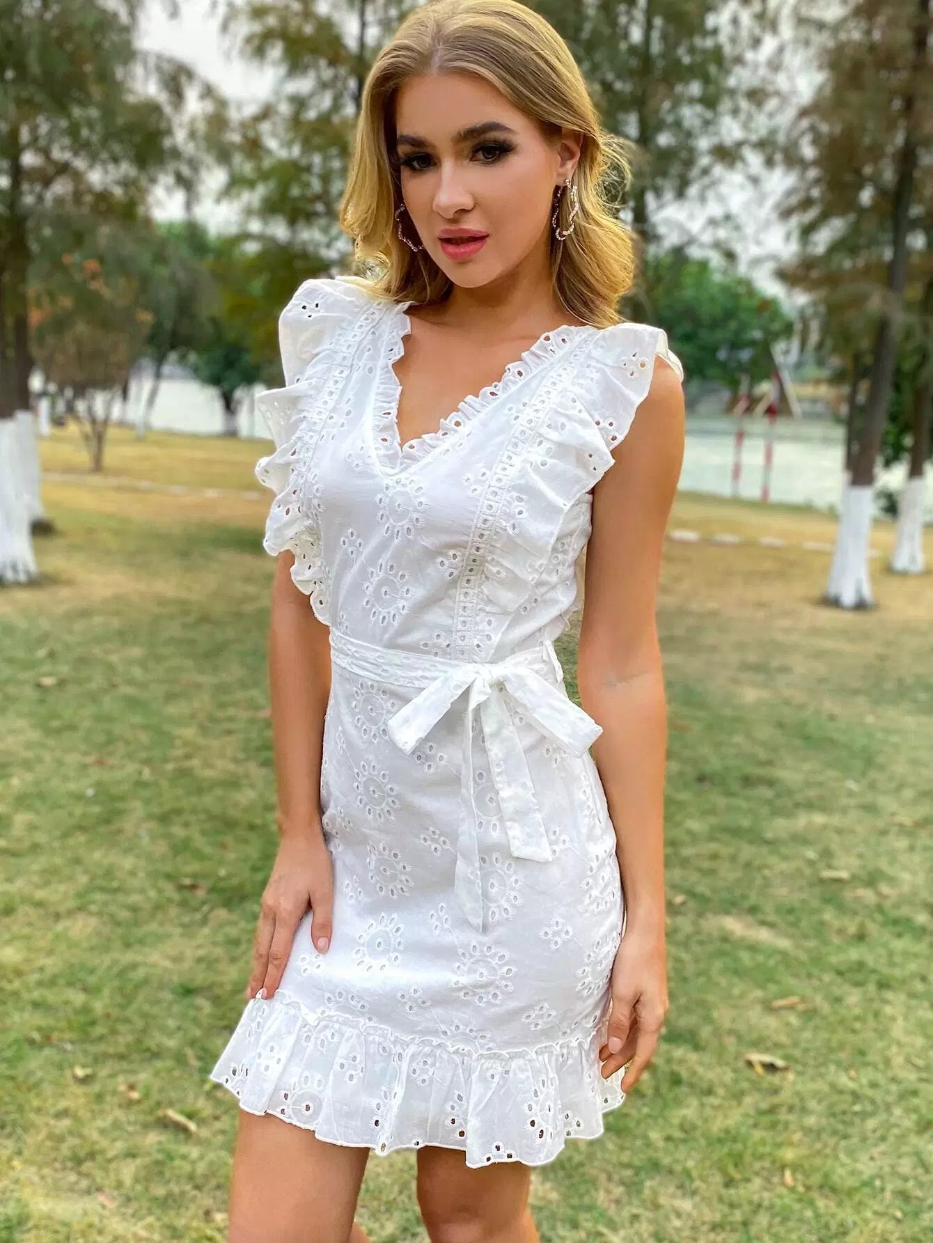 Ruffle Trim Schiffy Dress Without Belt