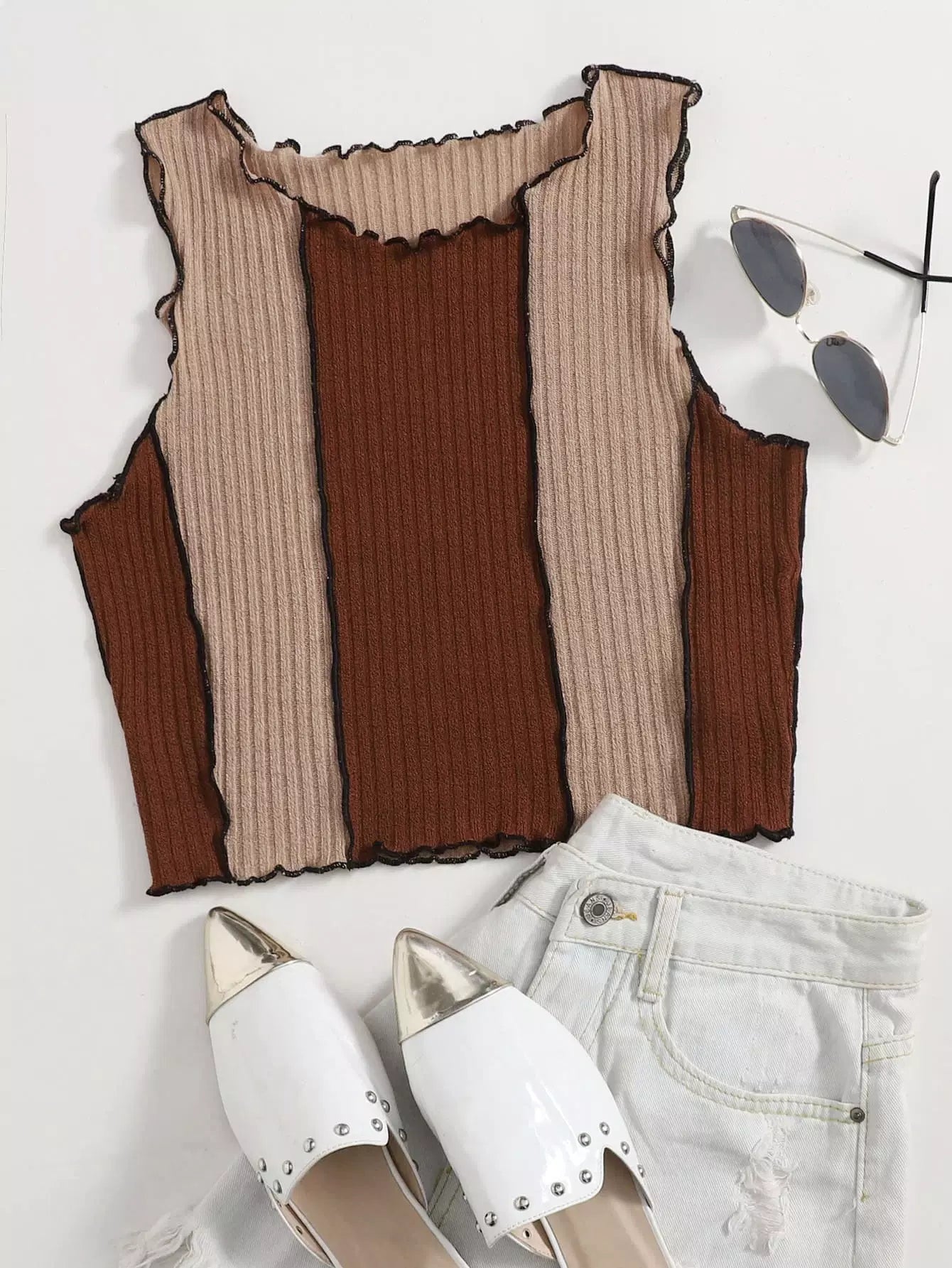 Seam Front Colorblock Lettuce Trim Tank Top
