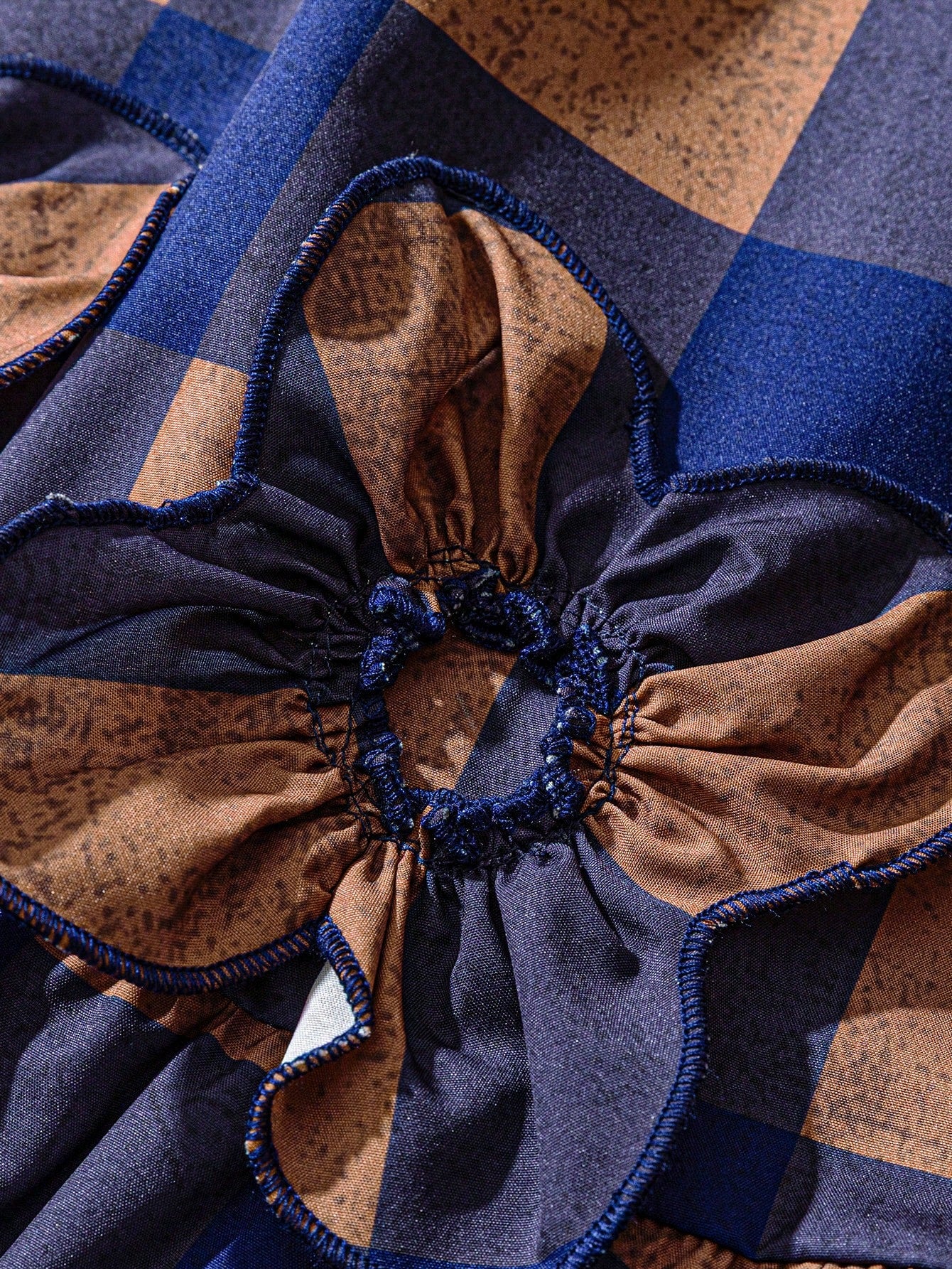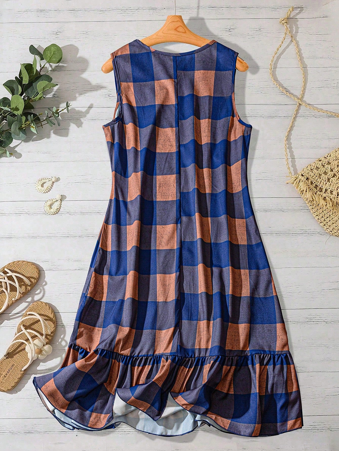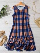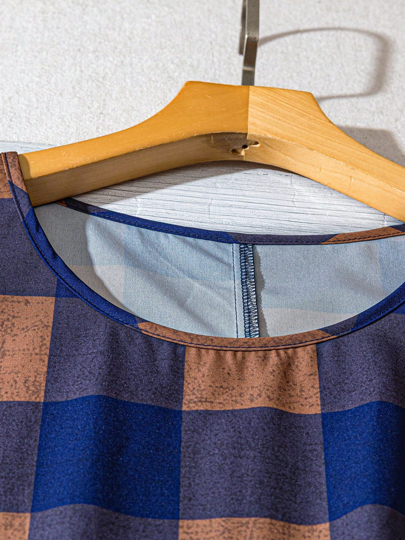 SHEIN LUNE Plus Size Casual Check Print Floral Decor Dress