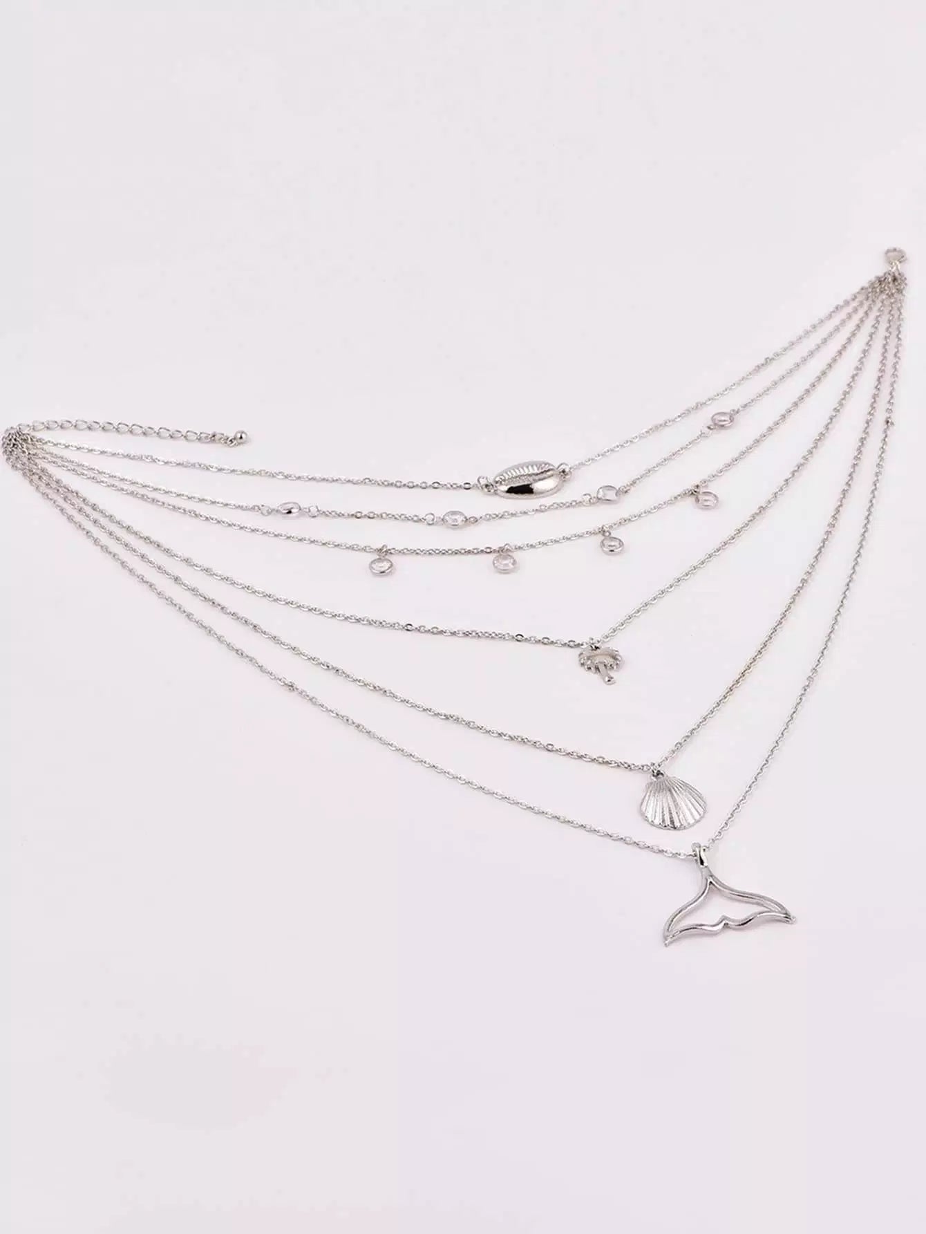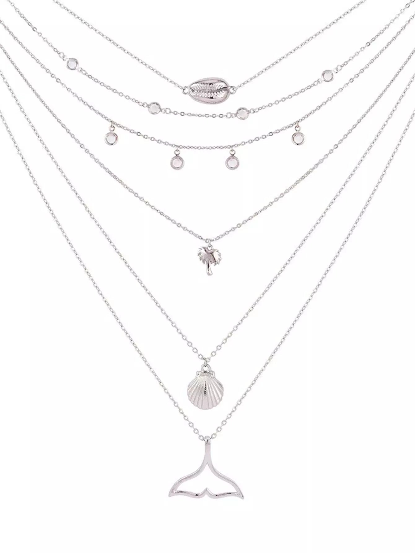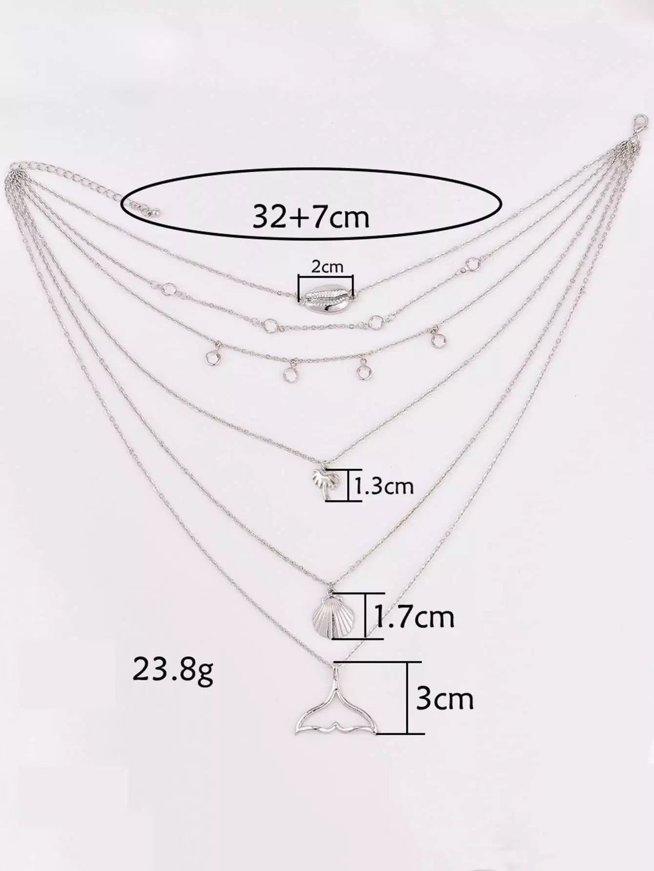 Shell & Fishtail Pendant Layered Chain Necklace