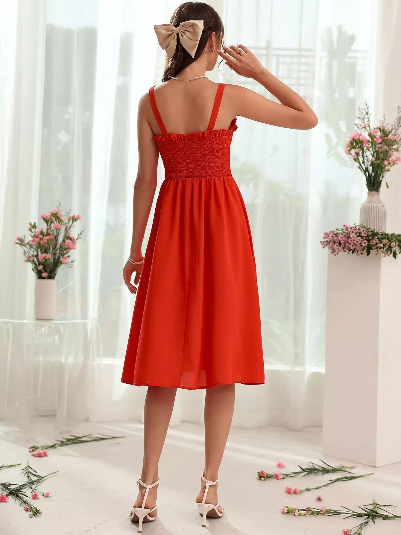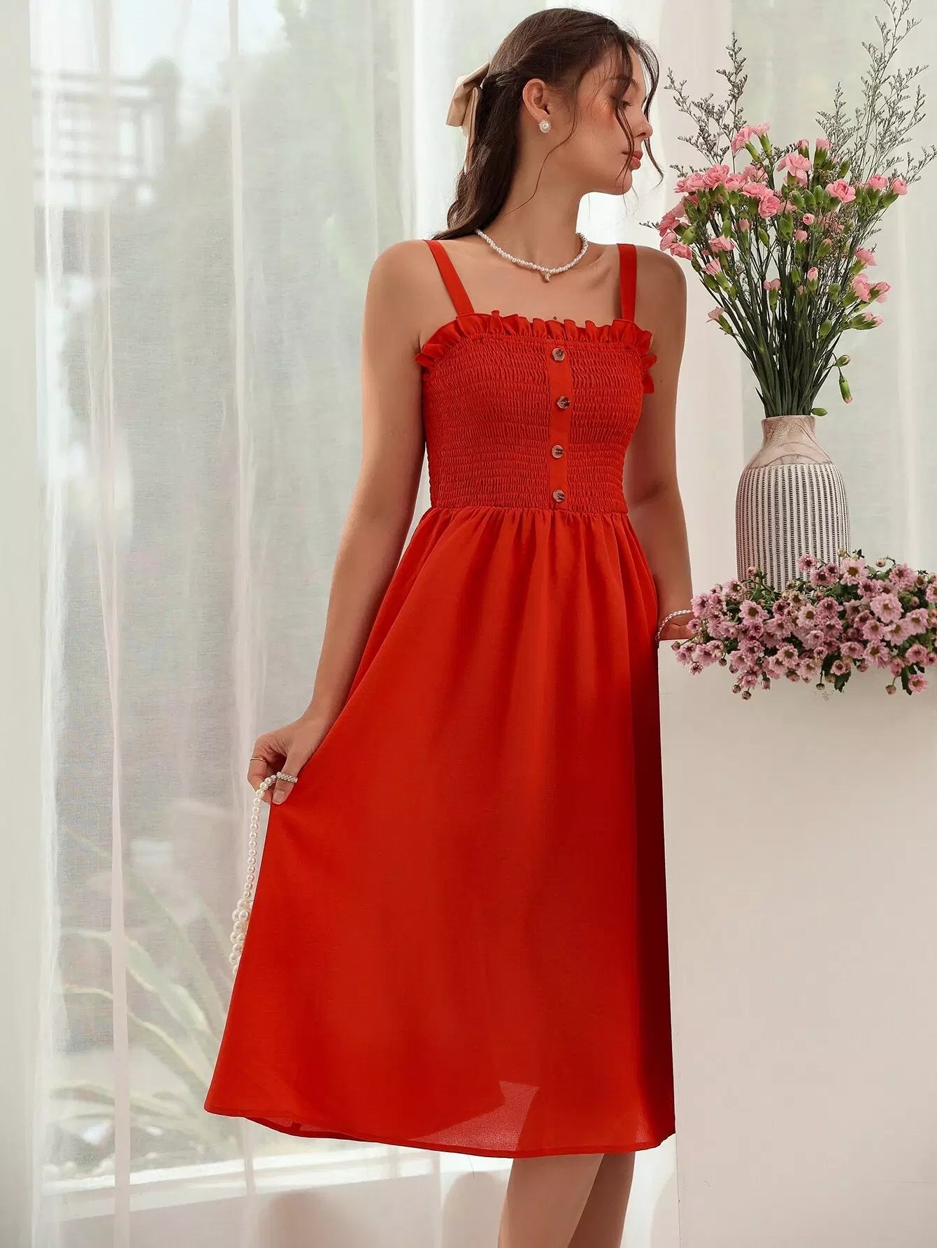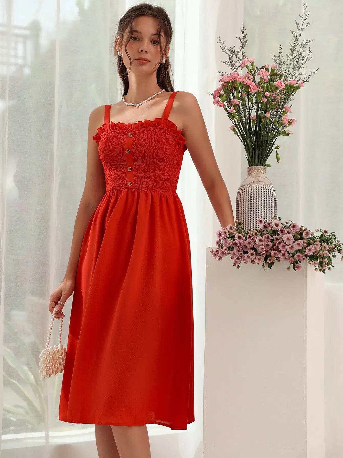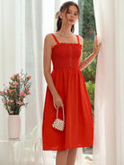 Shirred Bodice Frill Trim Cami Dress