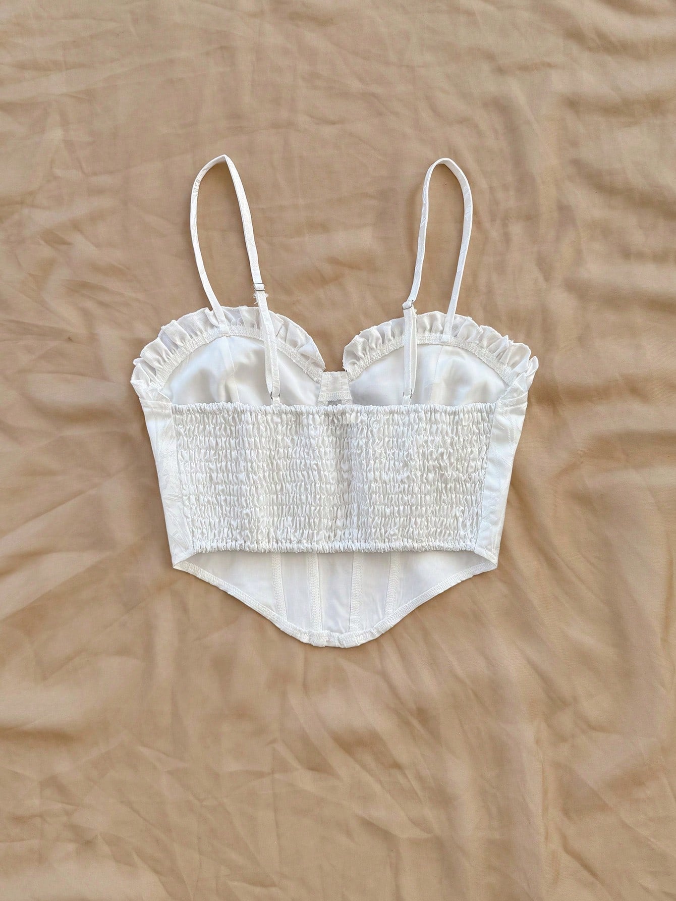Soleia Elegant White Jacquard Spaghetti Strap Top