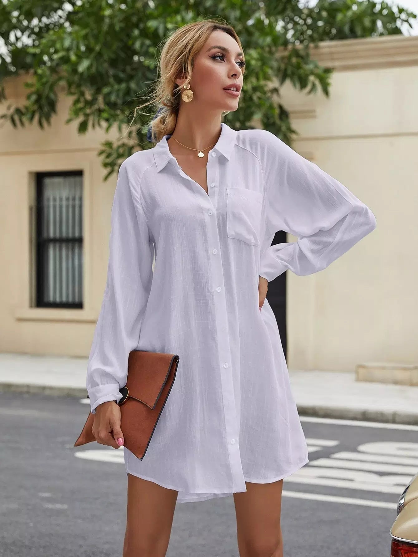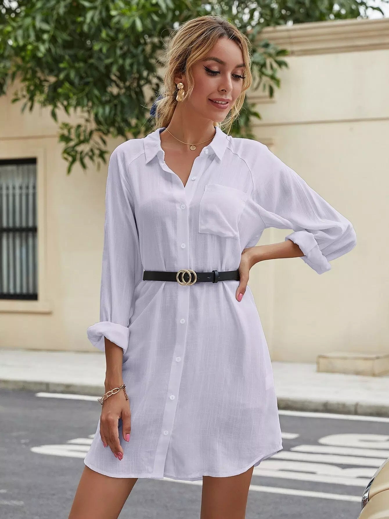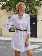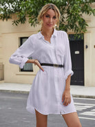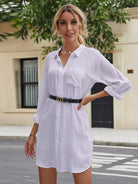 Solid Button Through Shirt Dress Without Belt