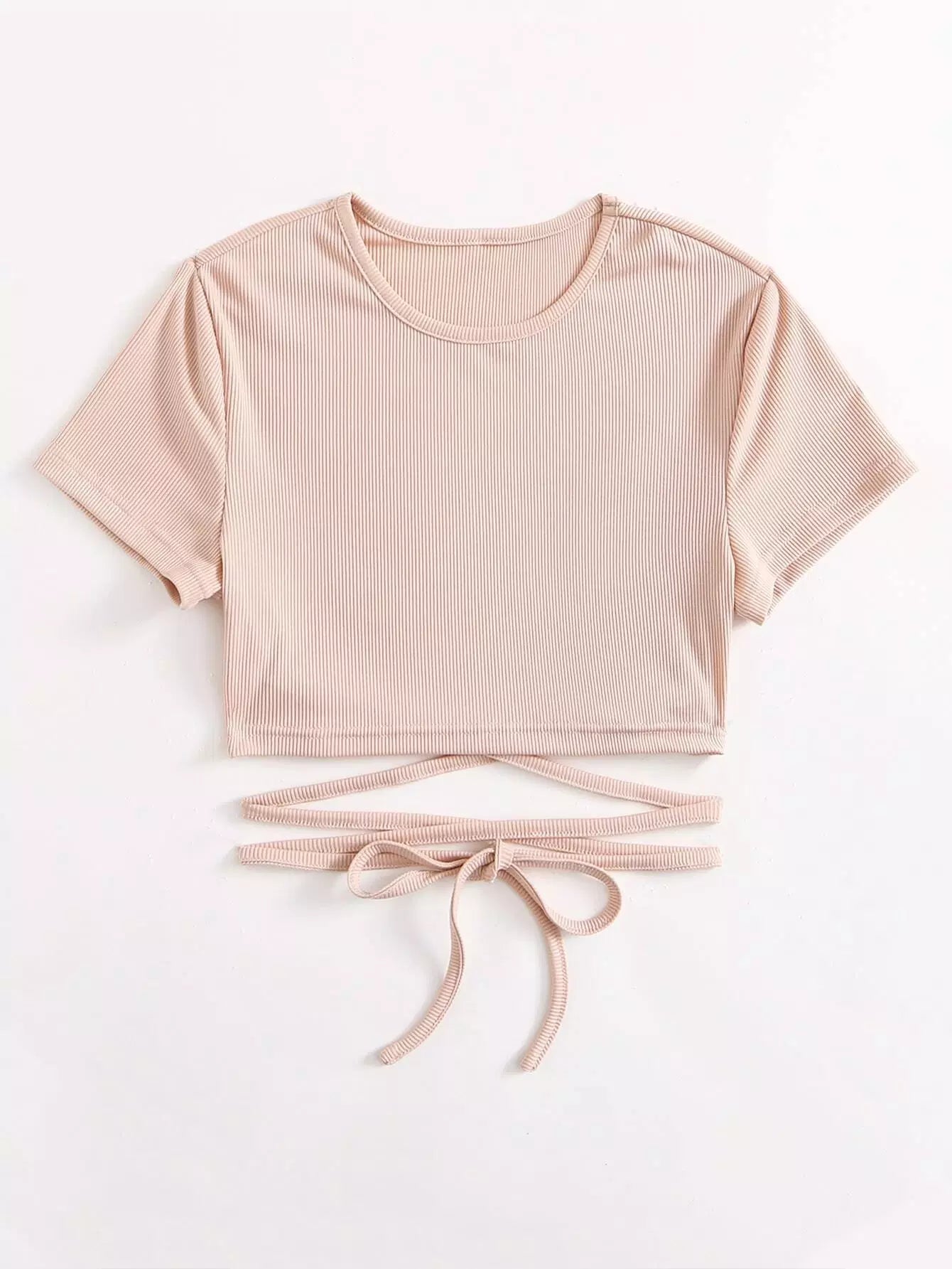 Solid Ribbed Criss Cross Crop Tee