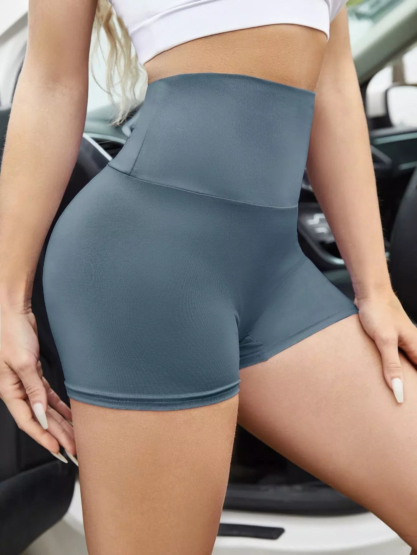 Solid Ruched Back Sports Shorts