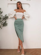 Solid Ruched Side Asymmetrical Skirt