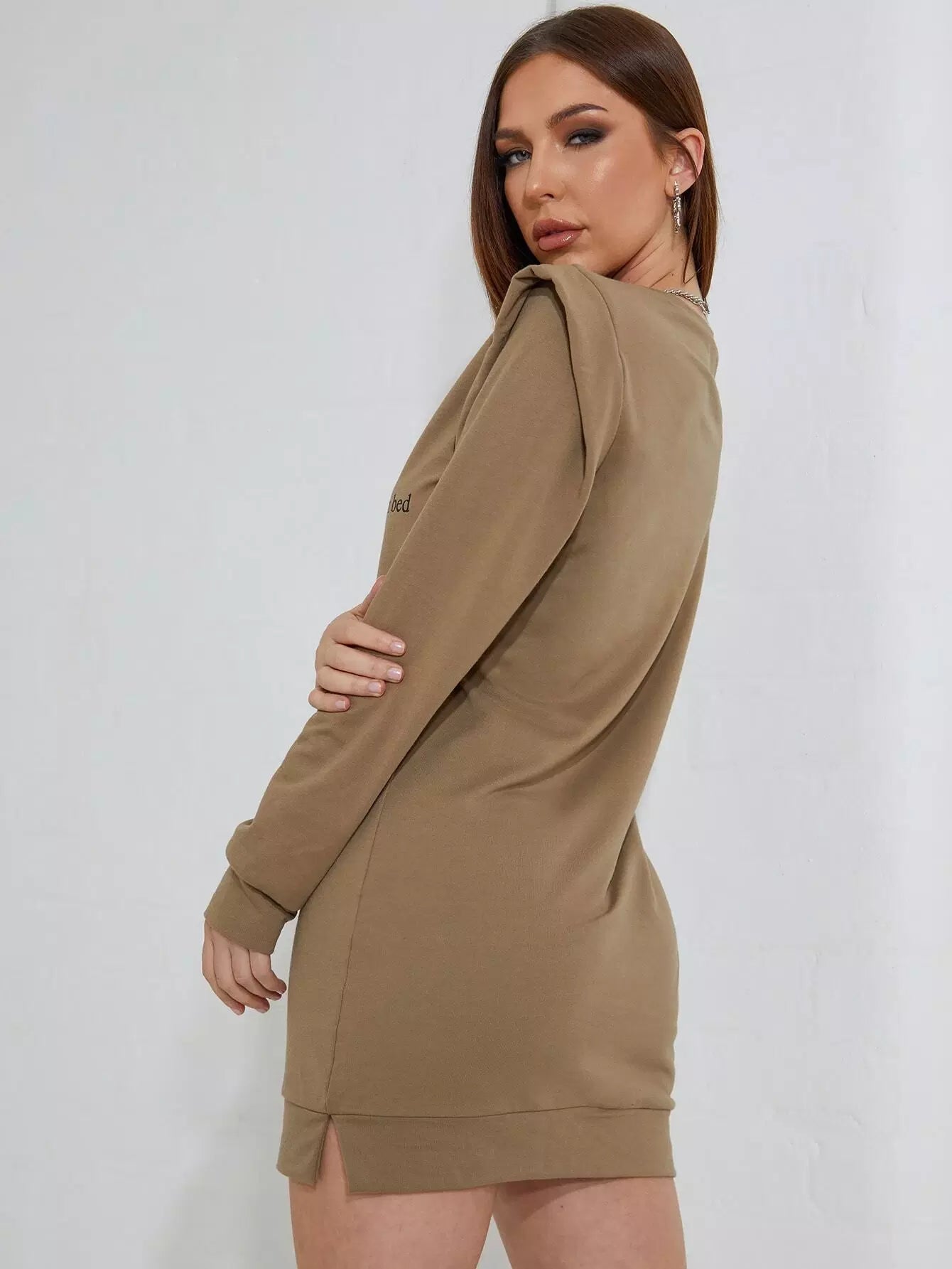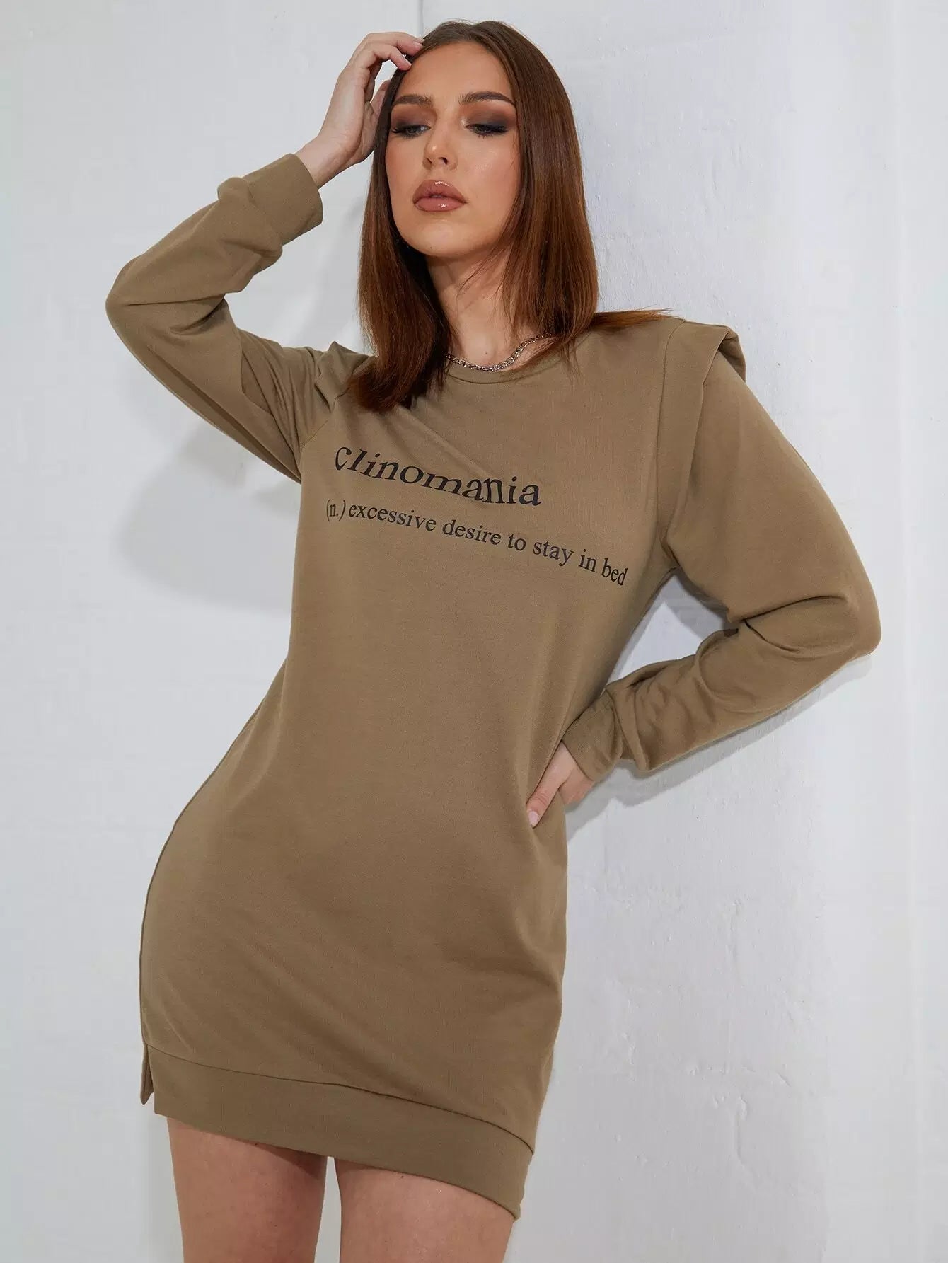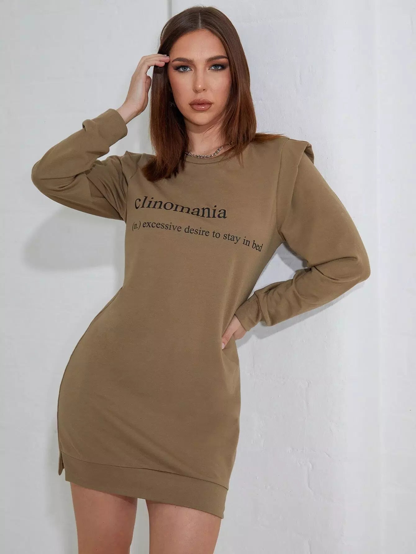 Women - Split Hem Slogan Graphic Sweatshirt Dress