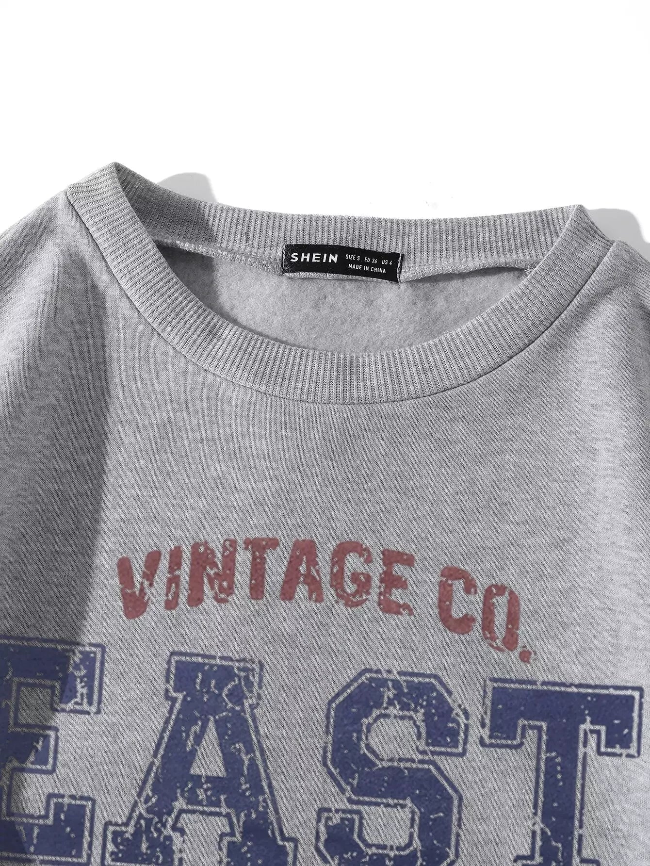Star & Letter Graphic Drop Shoulder Thermal Pullover