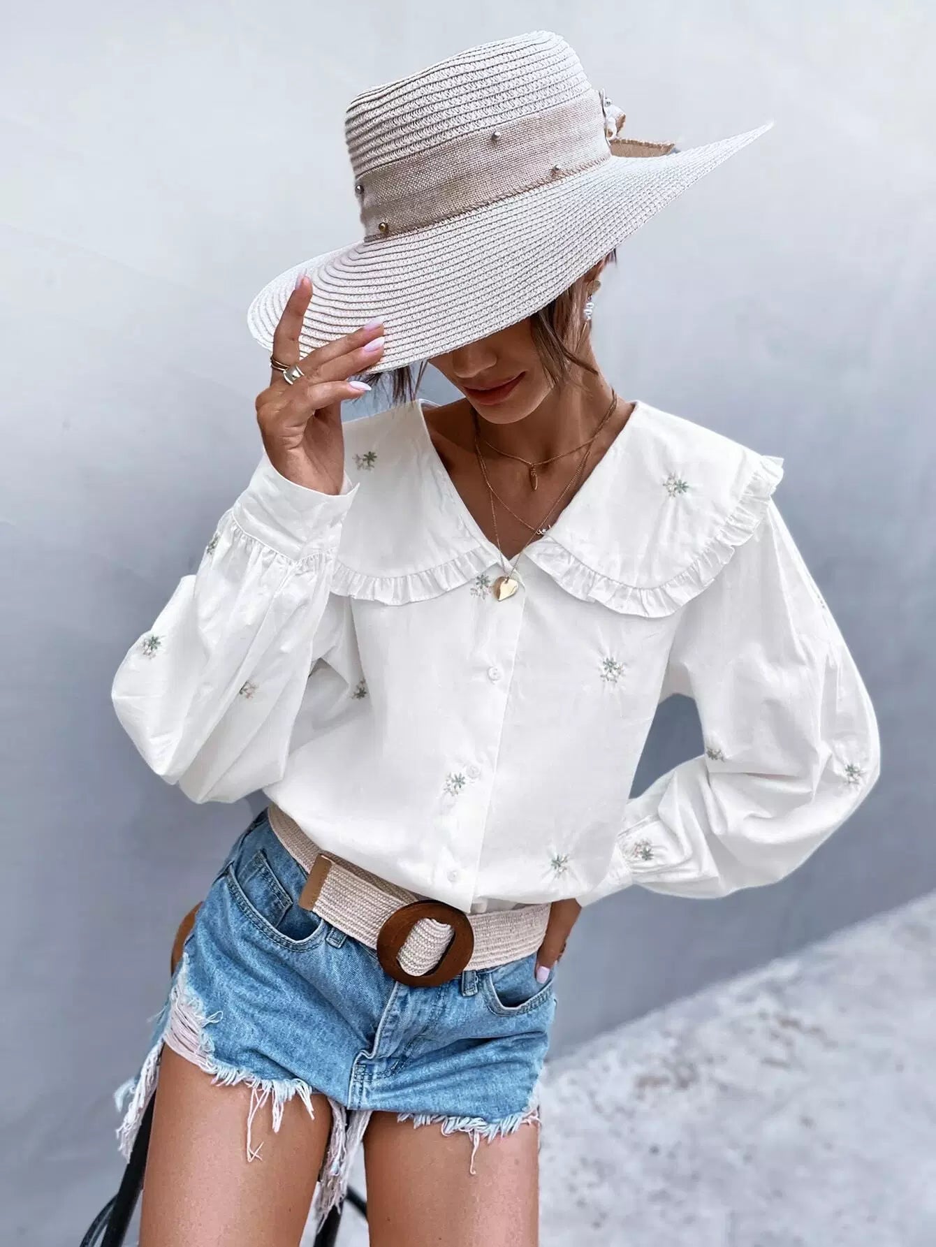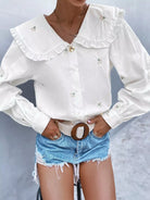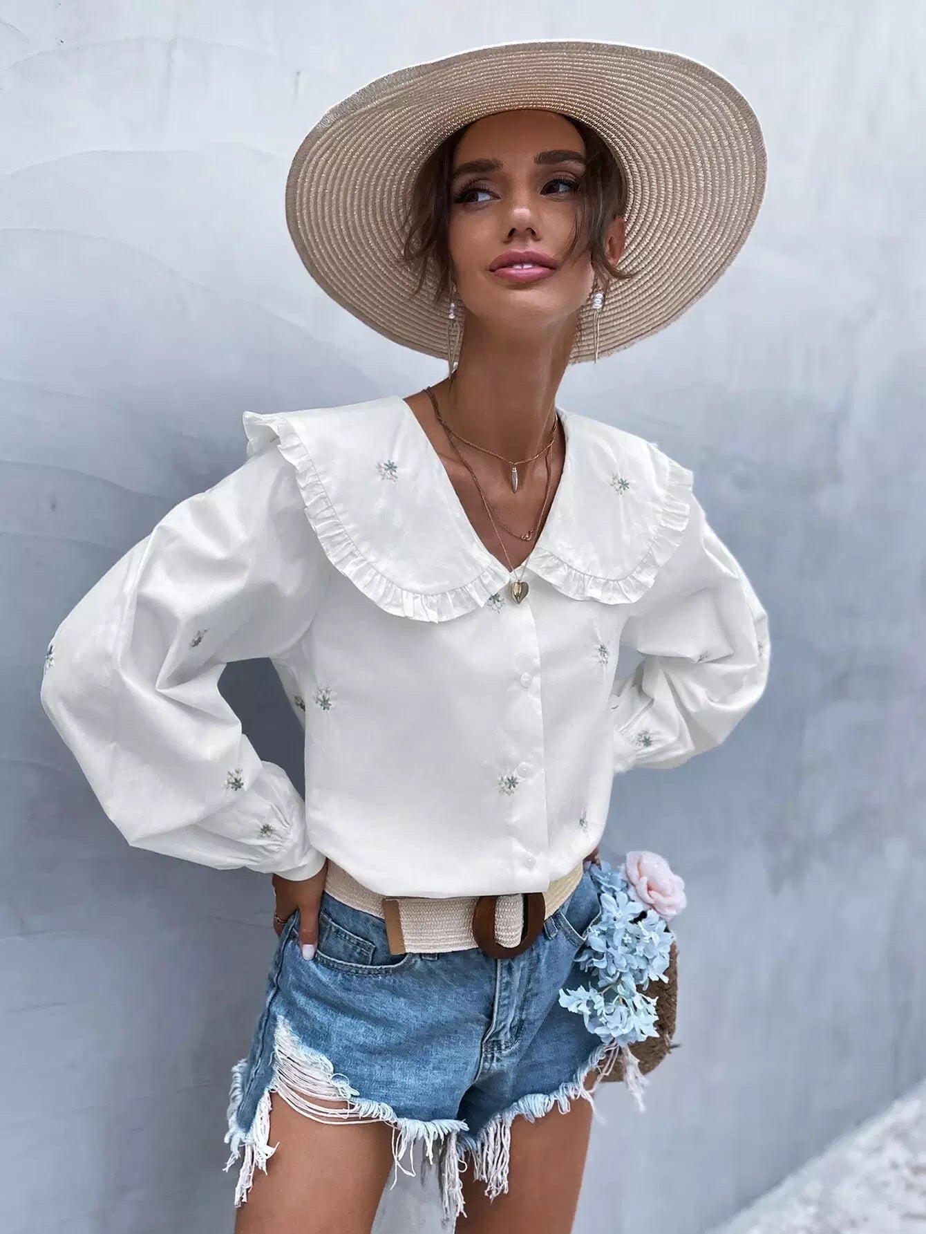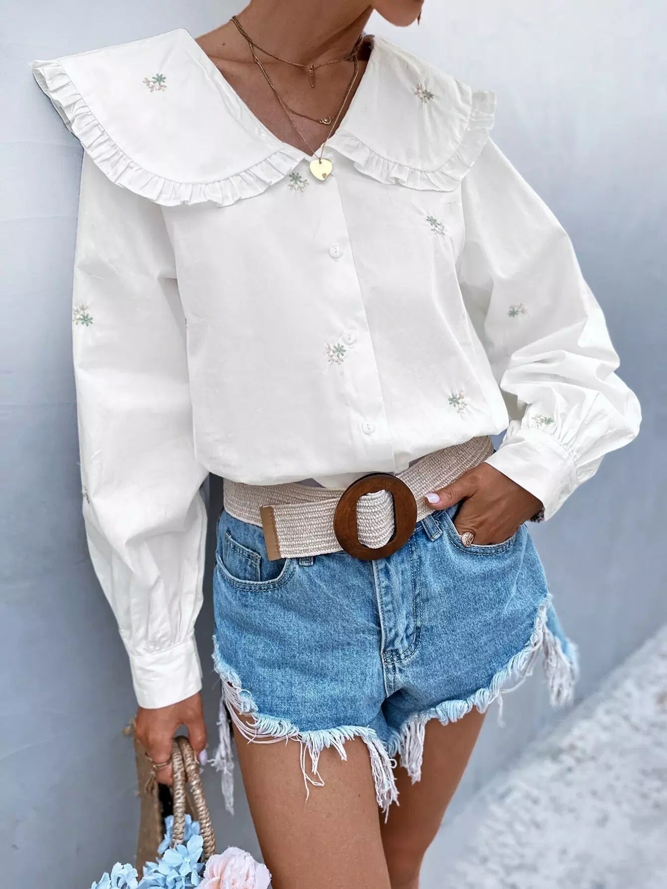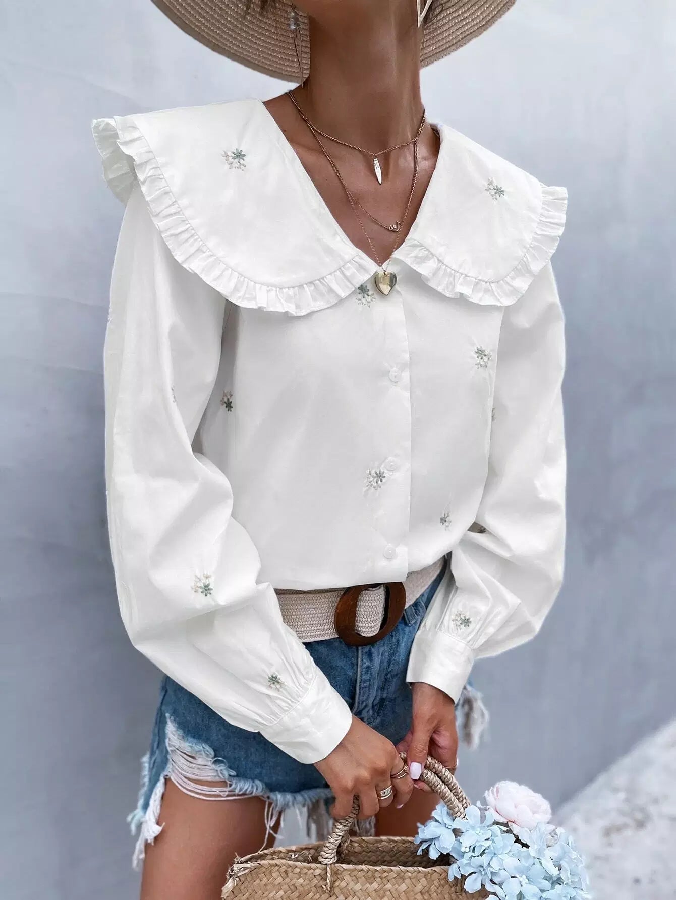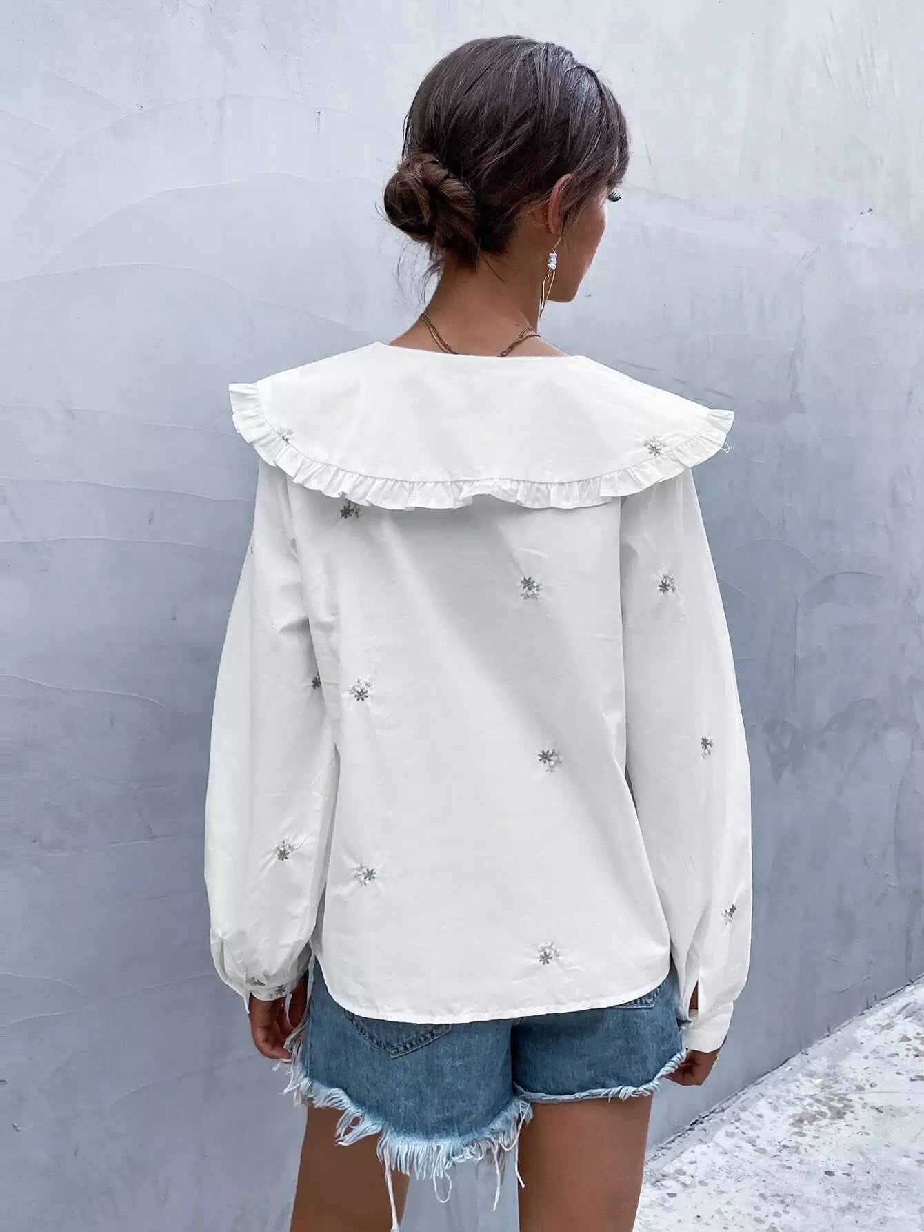 Statement Collar Floral Embroidery Blouse